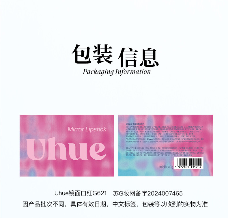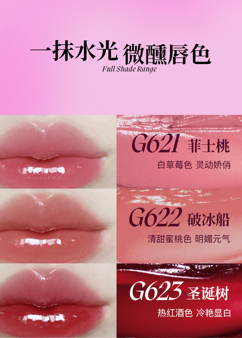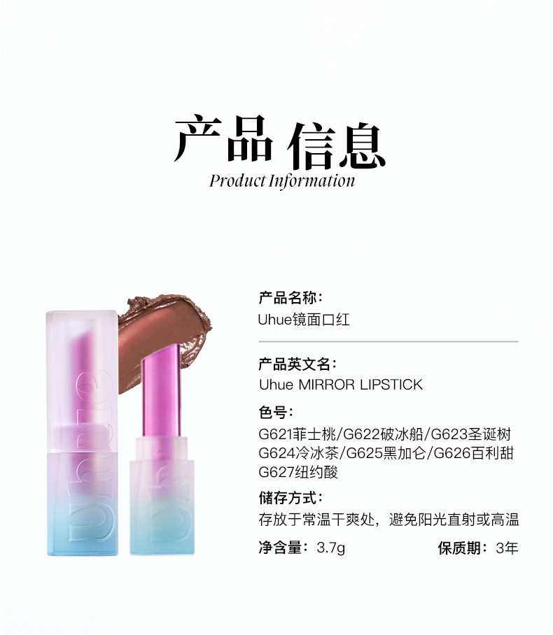 Uhue tipsy multi-purpose lipstick mirror water light solid lip gloss glass lip glaze g624 nude color suitable for students without makeup