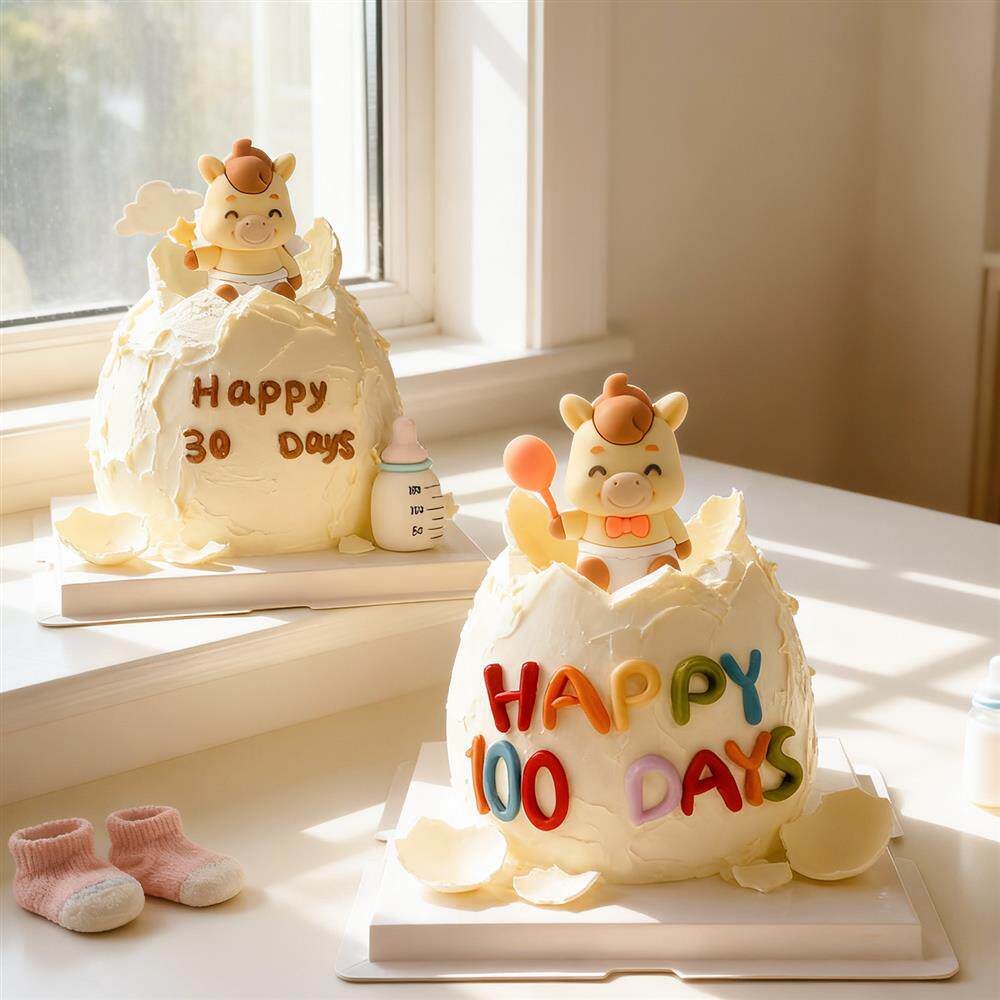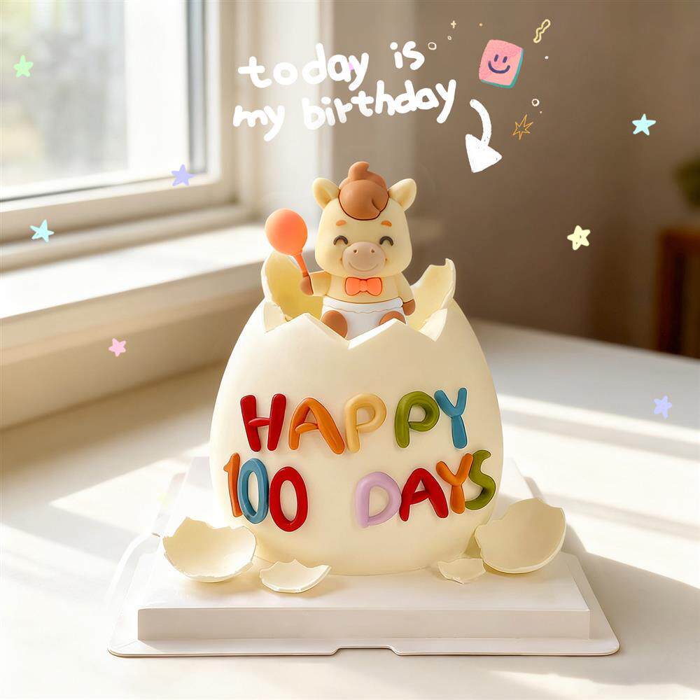 Internet-Famous Baking Birthday Cake Decorations, New Year Baby Horse Full Moon Hundred Days Rainbow Star Balloon Dessert Toppers