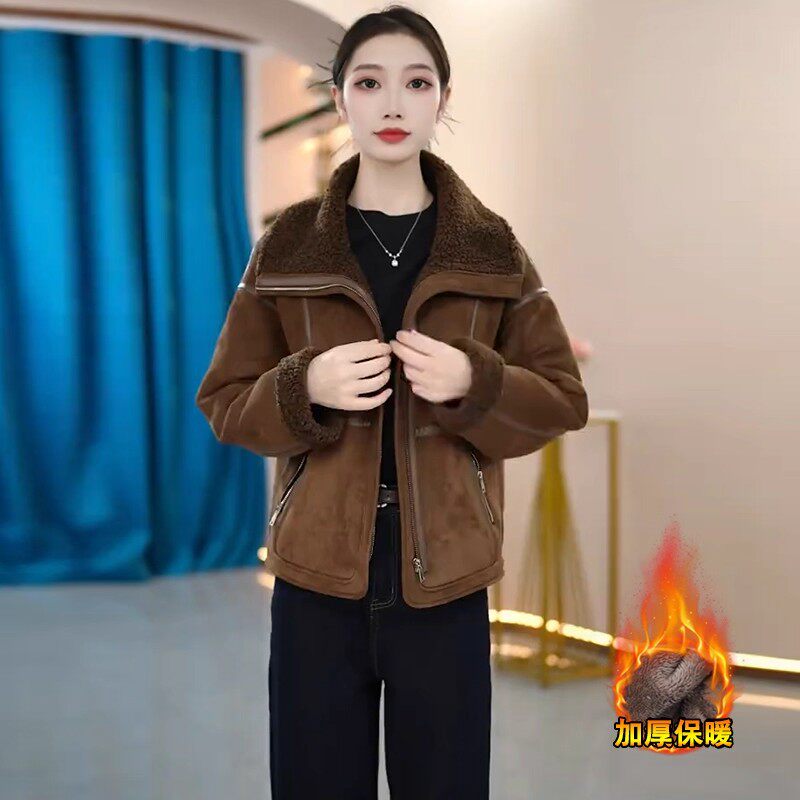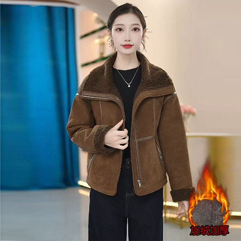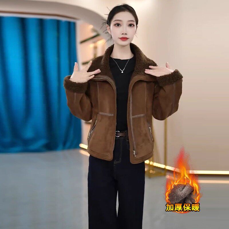 Jasmine Haute Couture Jacket Women's Winter Lamb Suede Cotton Clothes 2025 New Plush Fur All-in-One Top