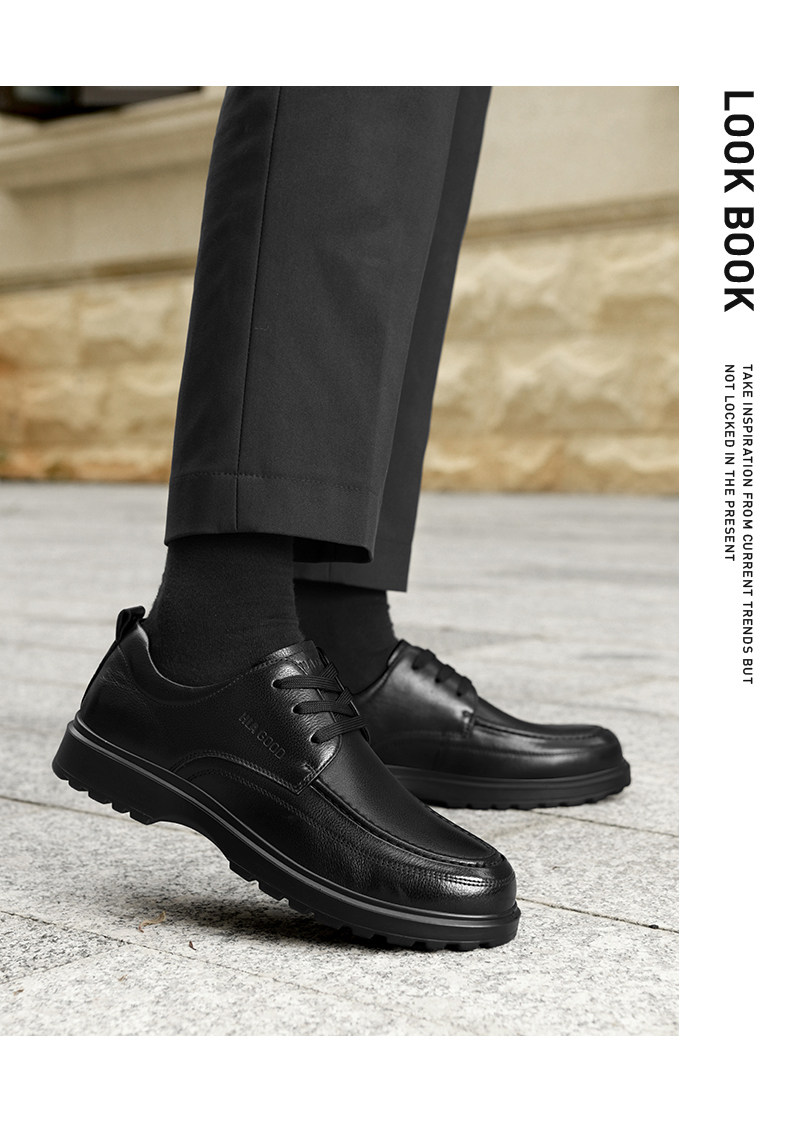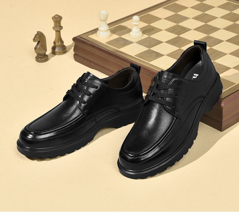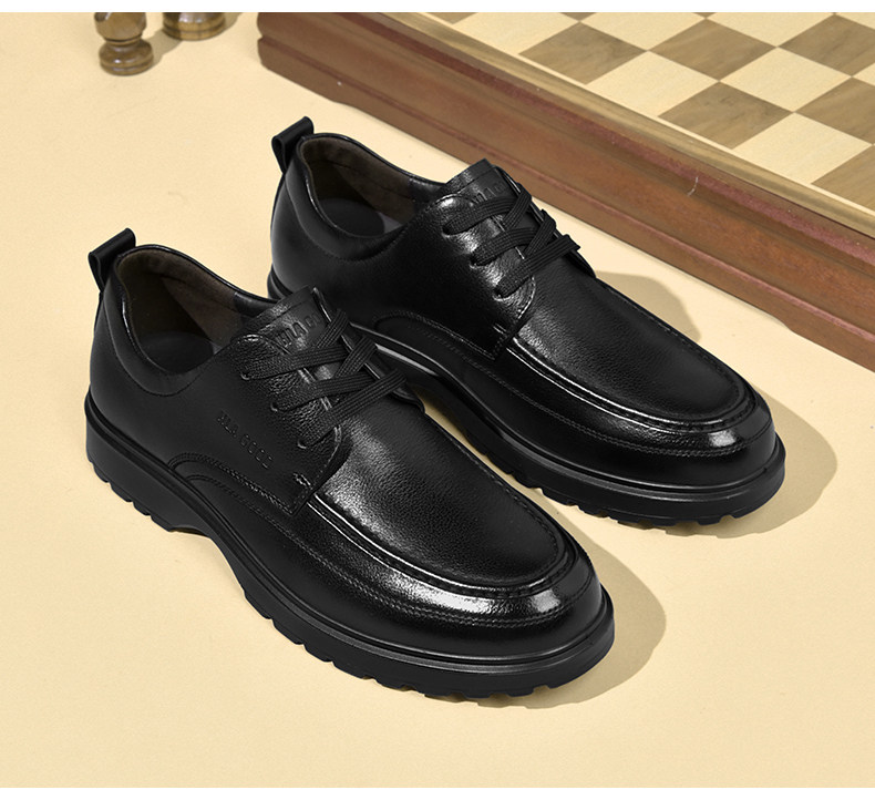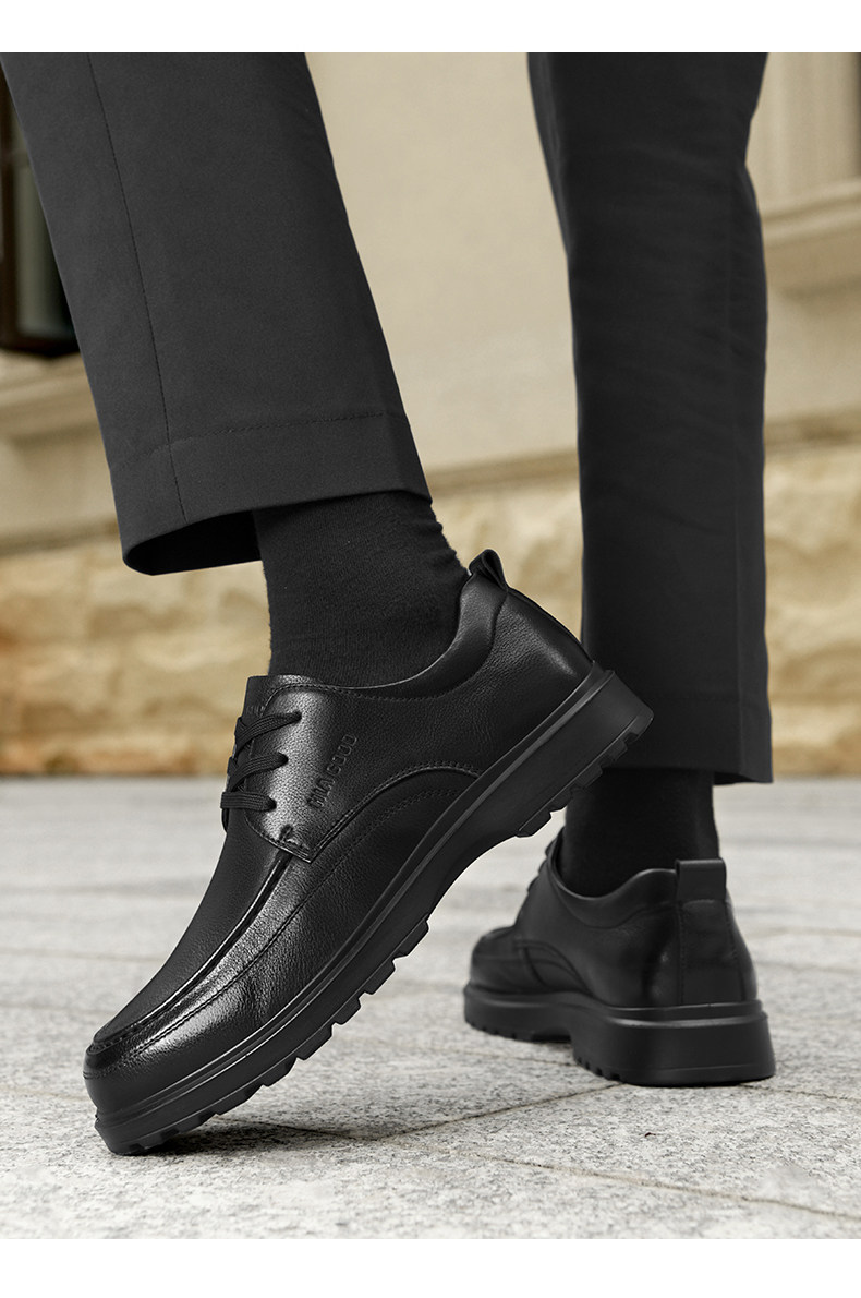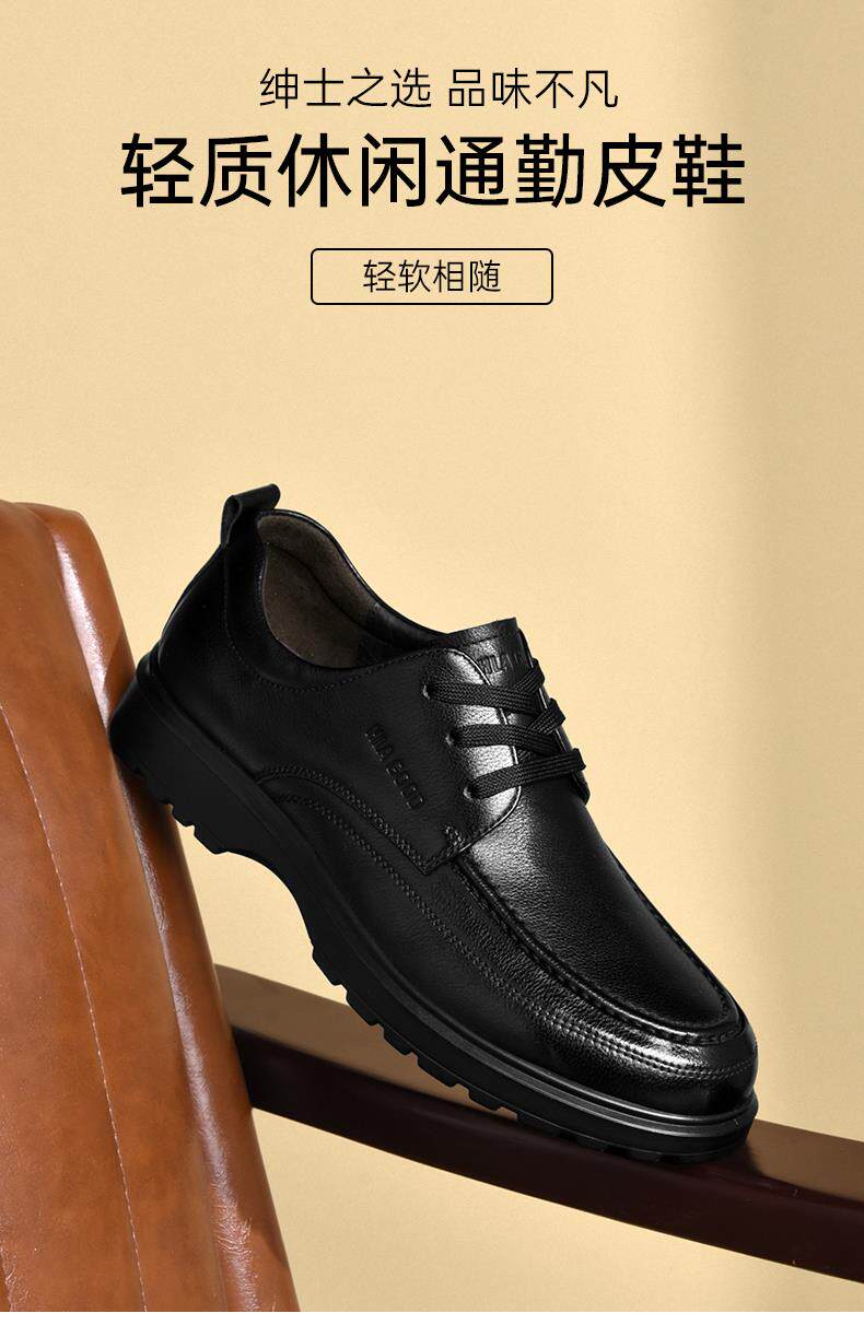 Hailan Home Men's Shoes Genuine Leather Business Casual Leather Shoes Soft Sole Soft Surface Dad Shoes Men's Black Breathable Derby Shoes