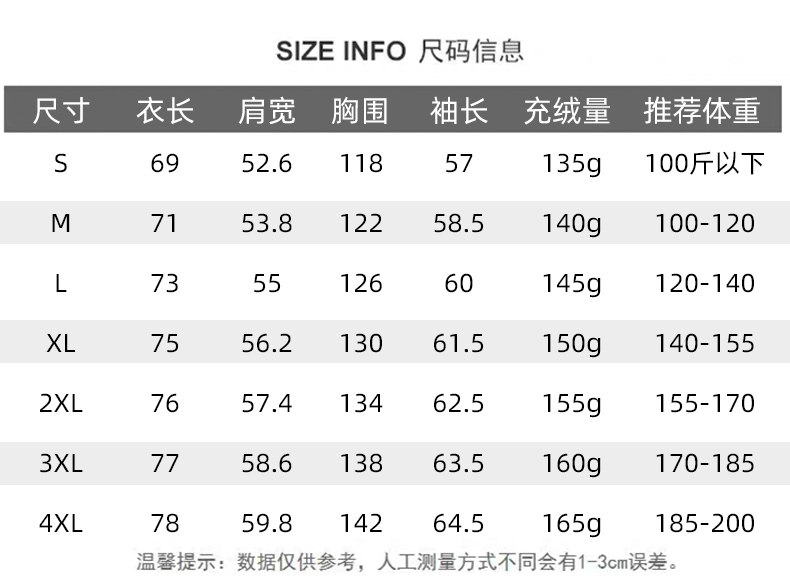 Fleece filling amount (g) 135-165g