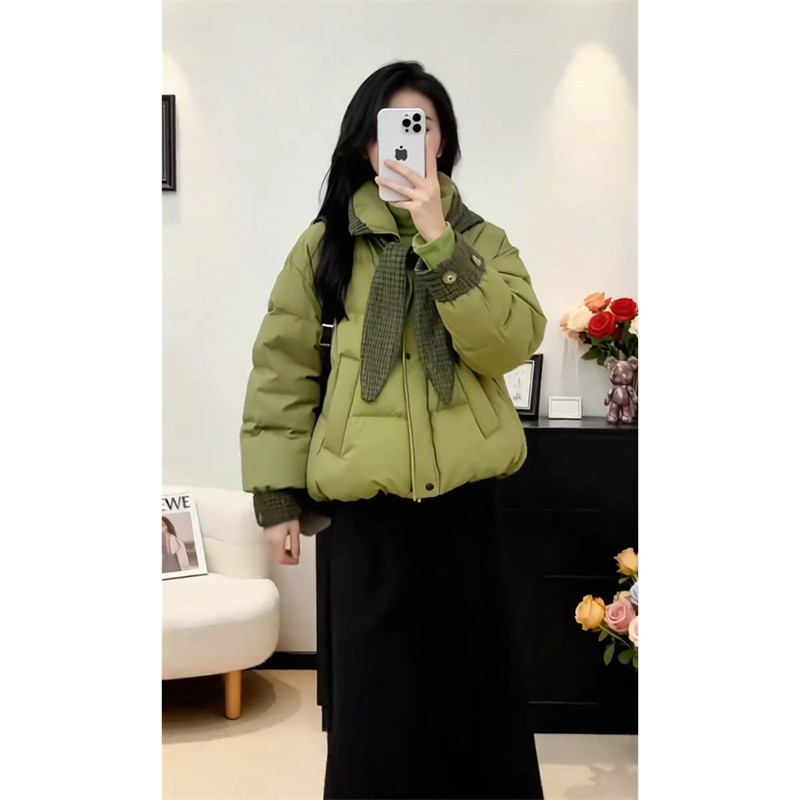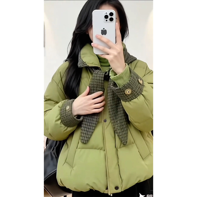 Sweet style loose plaid hooded coat for women this year's popular new winter style niche temperament age-reducing warm cotton coat