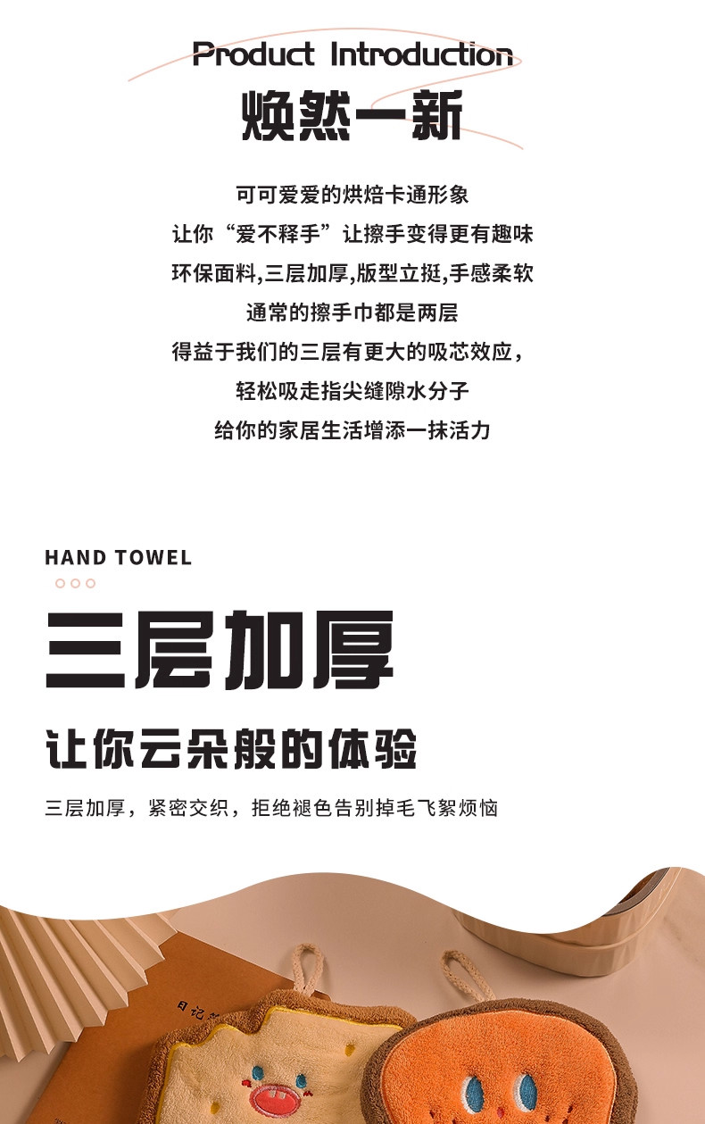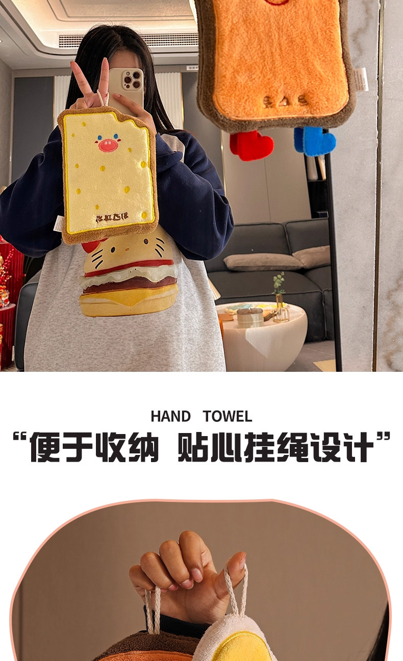 Cute Hanging Hand Towel, Absorbent and Thickened, Cartoon Hand Towel for Bathroom, Small Square Towel for Washing Hands, Kitchen Cleaning Cloth