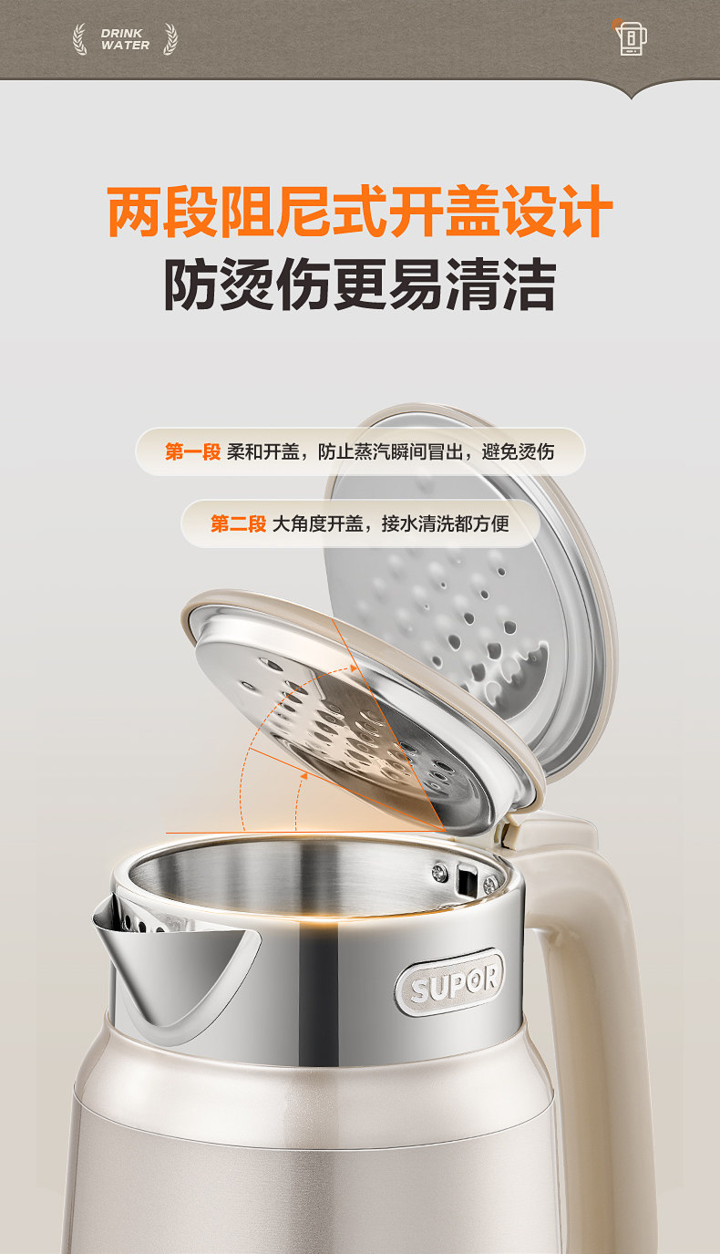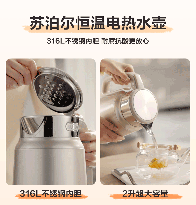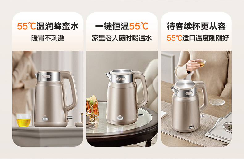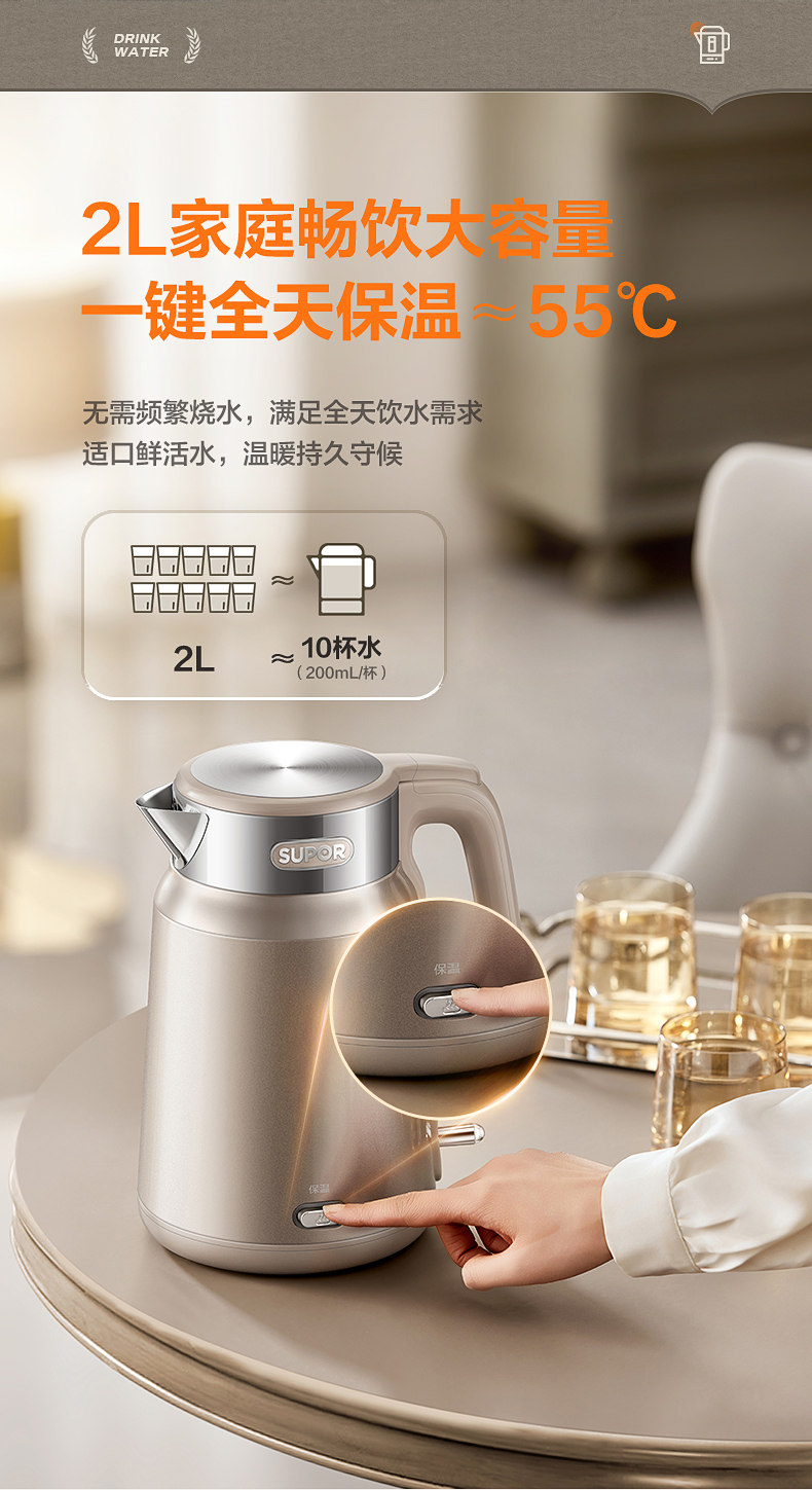 Supor Electric Kettle for Home Use, Large Capacity, 2025 New Model, Integrated Insulation, Fully Automatic, Constant Temperature, 316L