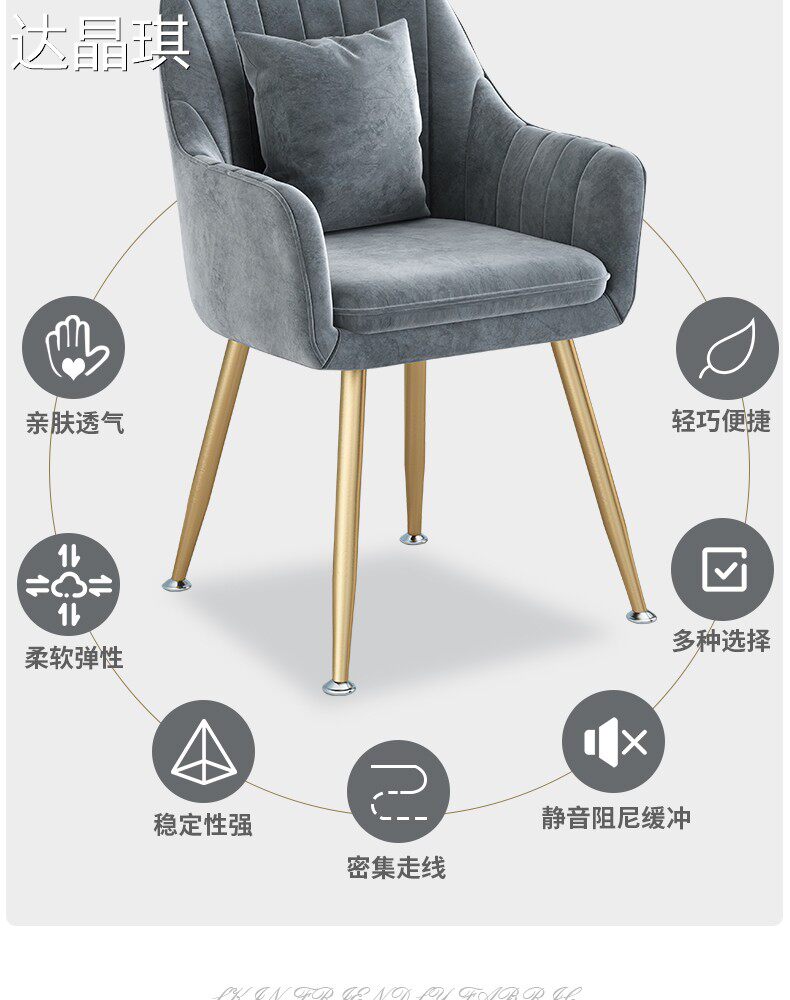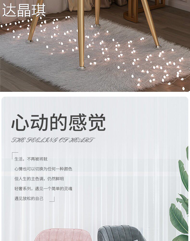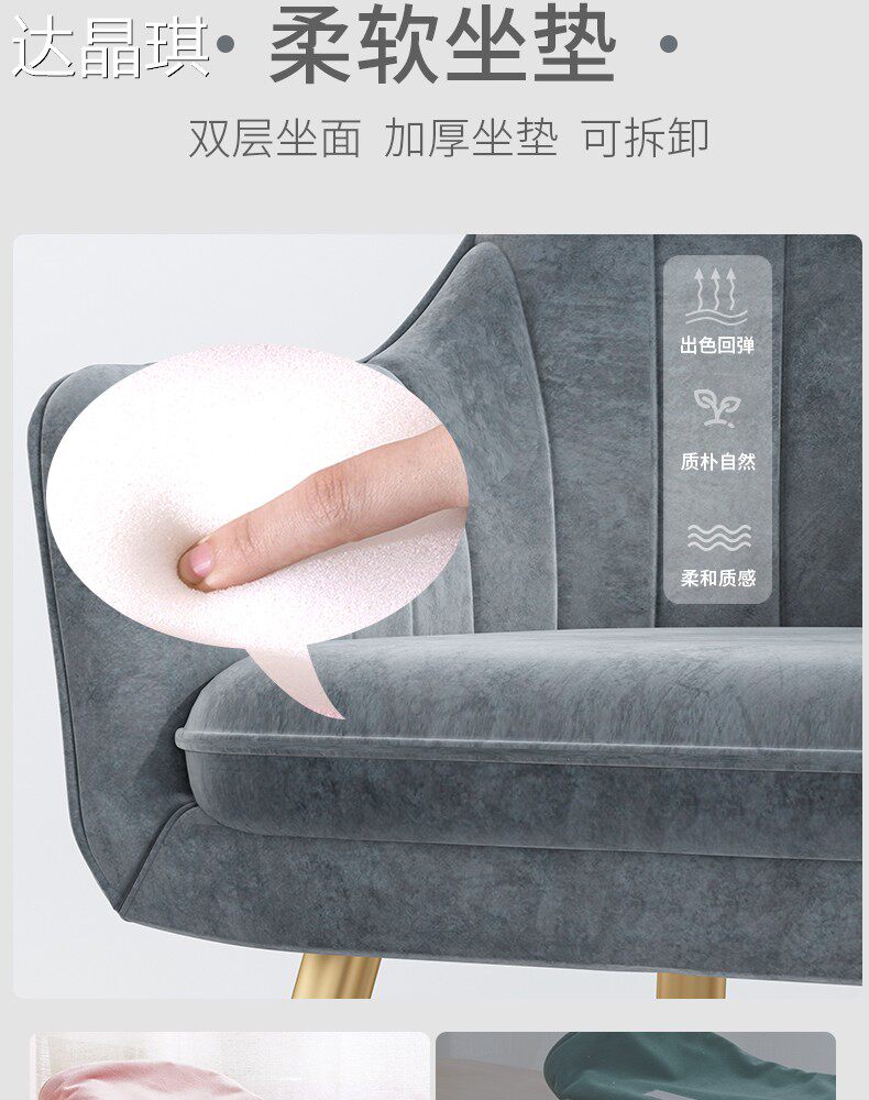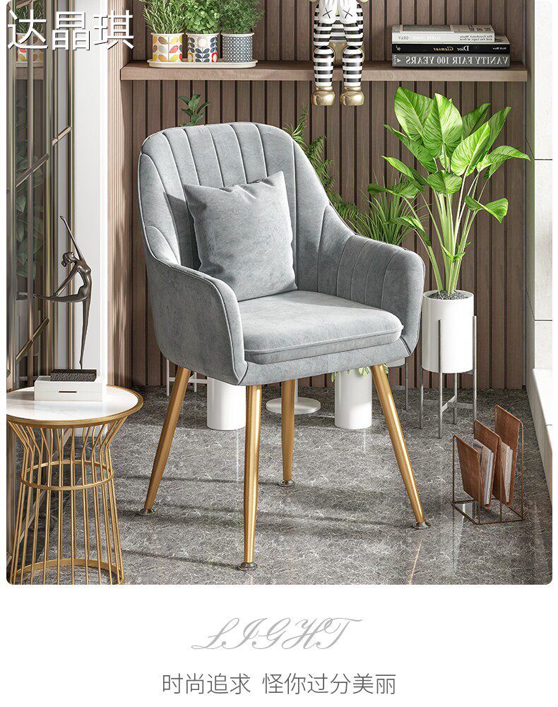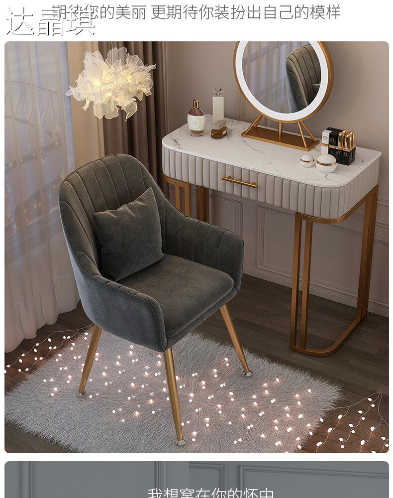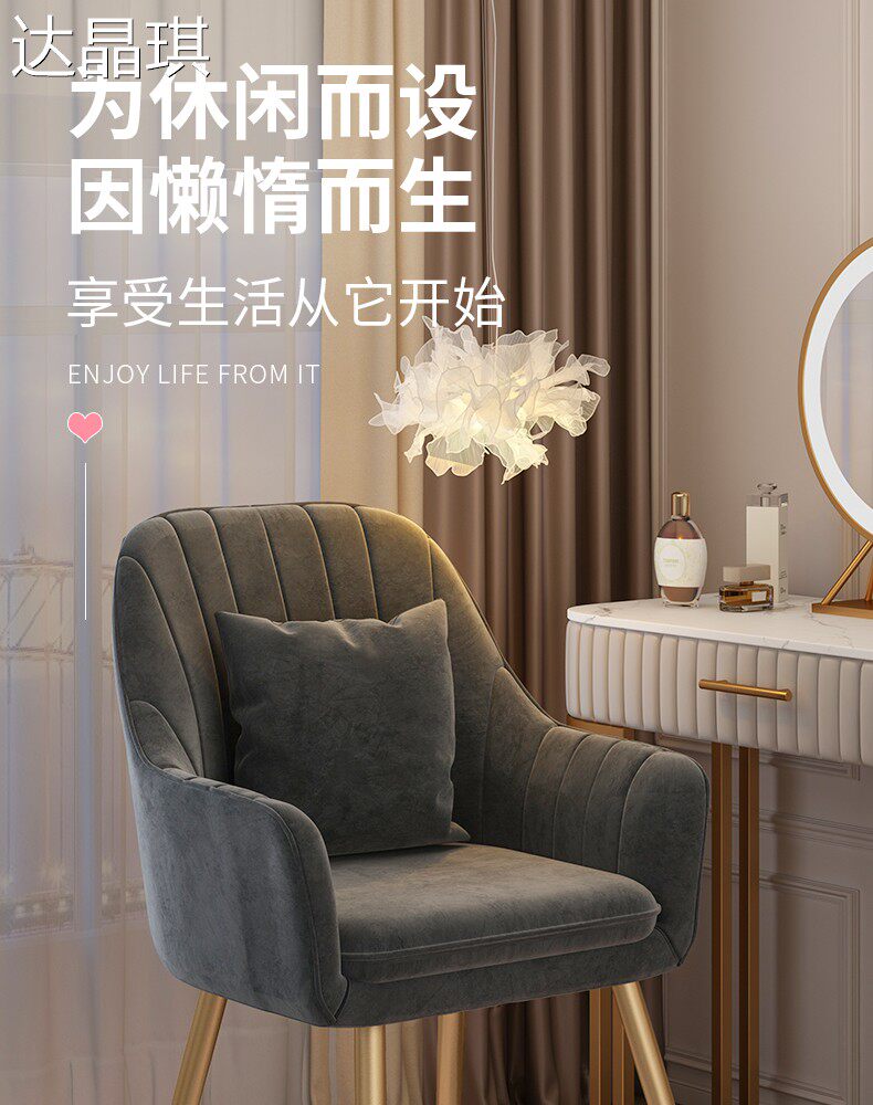 Nordic Light Luxury Chair with Backrest for Bedroom, Girls' Home Use, Trendy Makeup Stool, Dressing Table, Manicure, Minimalist Ins-Style Bed Cover, Pull-Out Bed