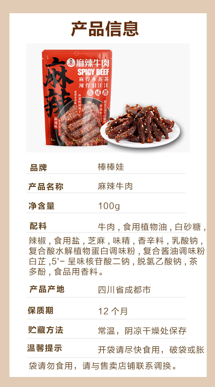 Product name Bangbangwa 100g spicy beef authentic Sichuan flavor Chengdu specialty beef jerky and dried meat snacks