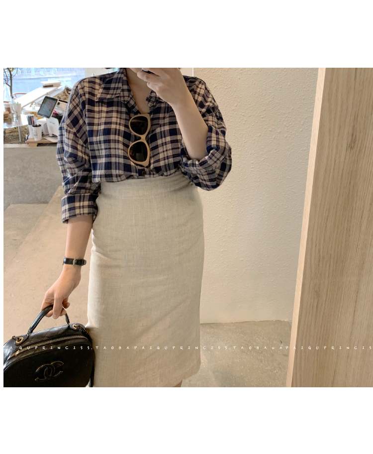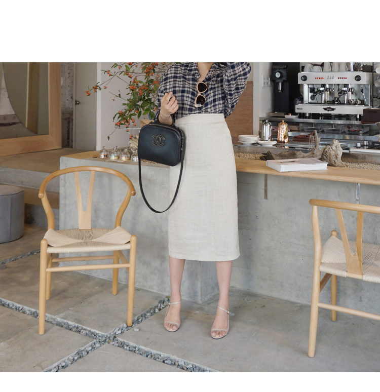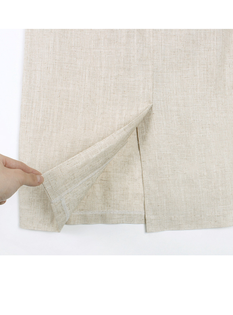Linen Bamboo Cotton Blend Color H-Line Pencil Skirt, Slim Fit, Straight Cut, Mid-Length, High-Waisted, Summer, Back Slit, Petite Size