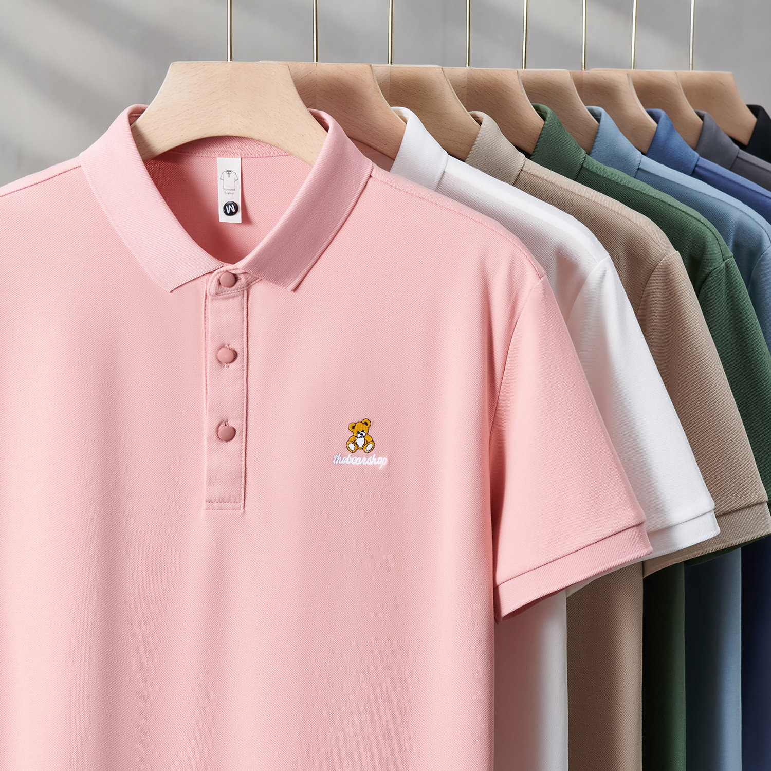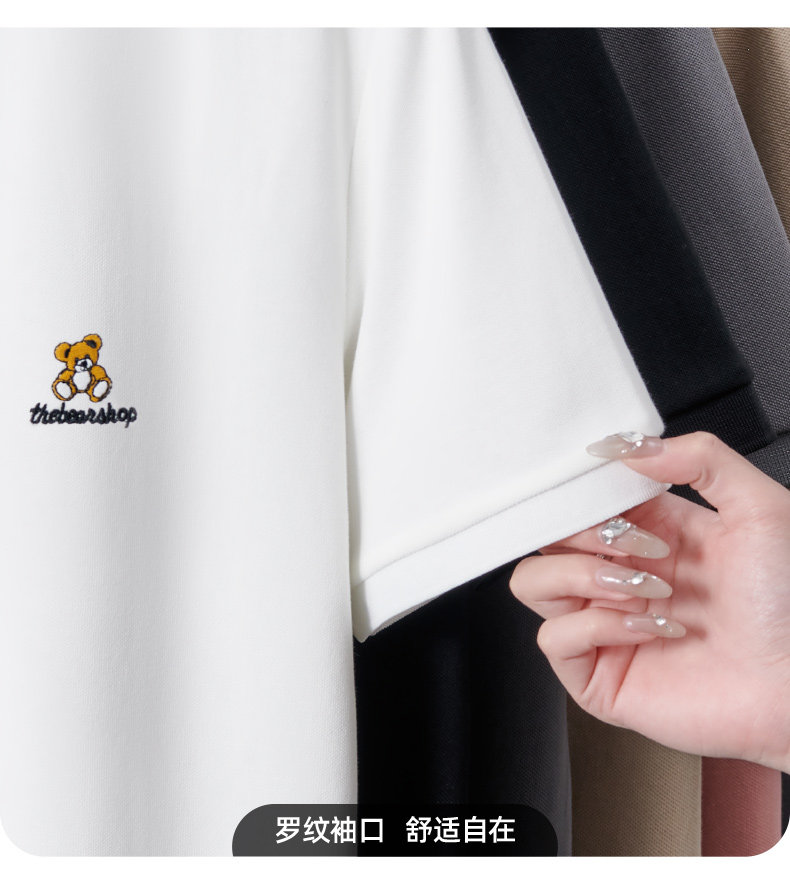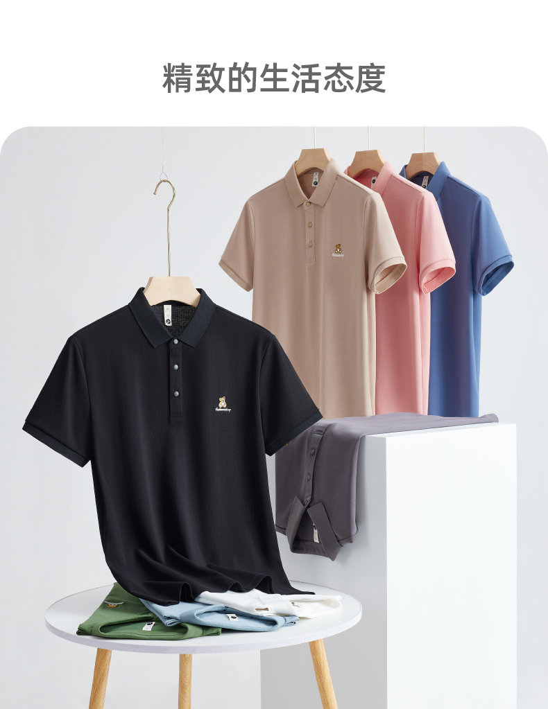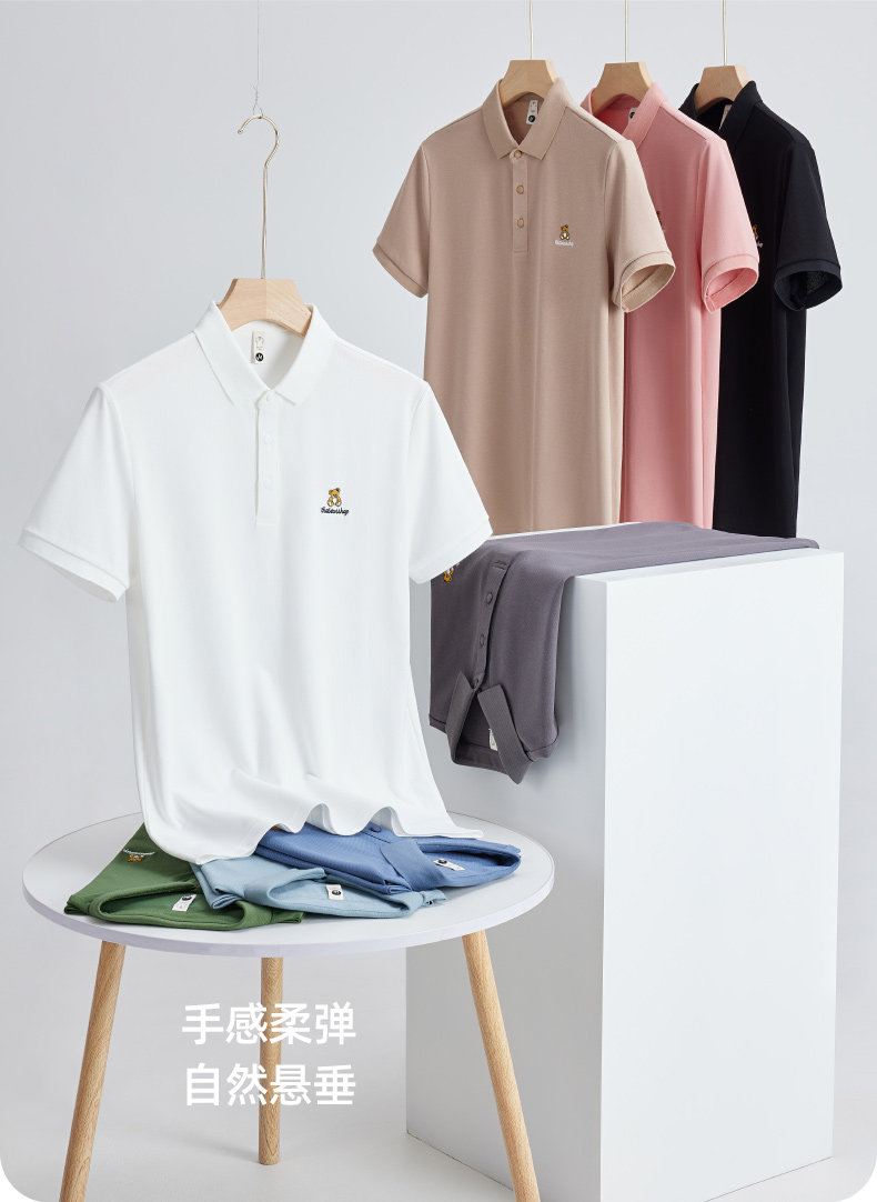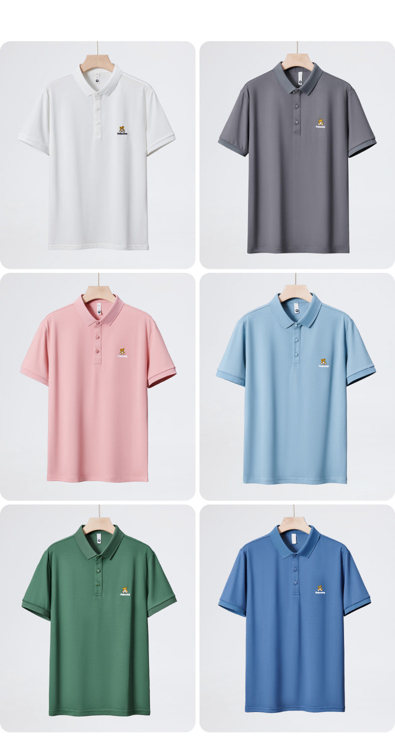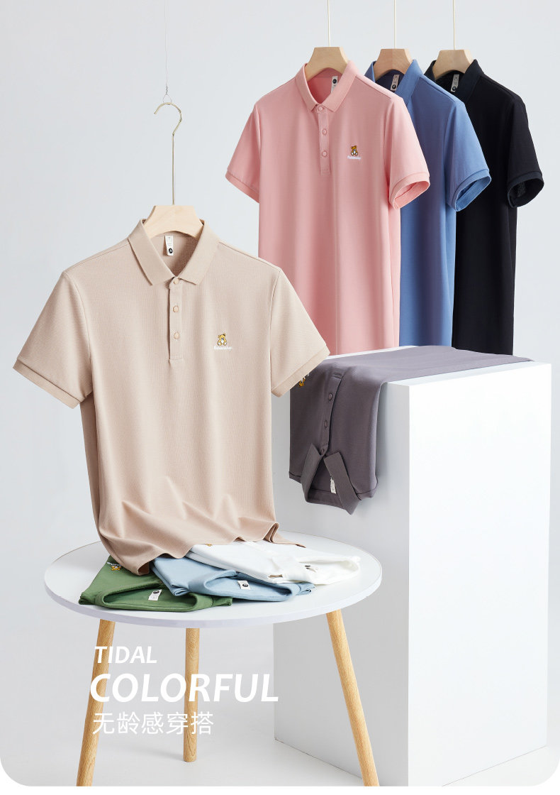 High-end bear embroidered ice silk polo shirt for men 2025 new summer polo men's short-sleeved t-shirt couple wear