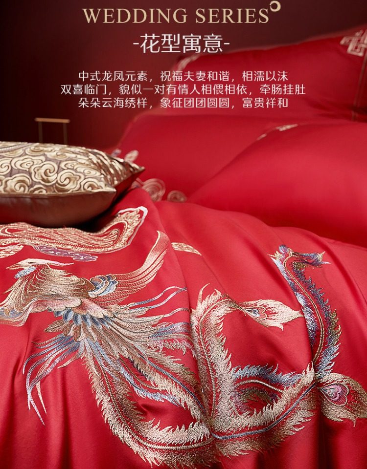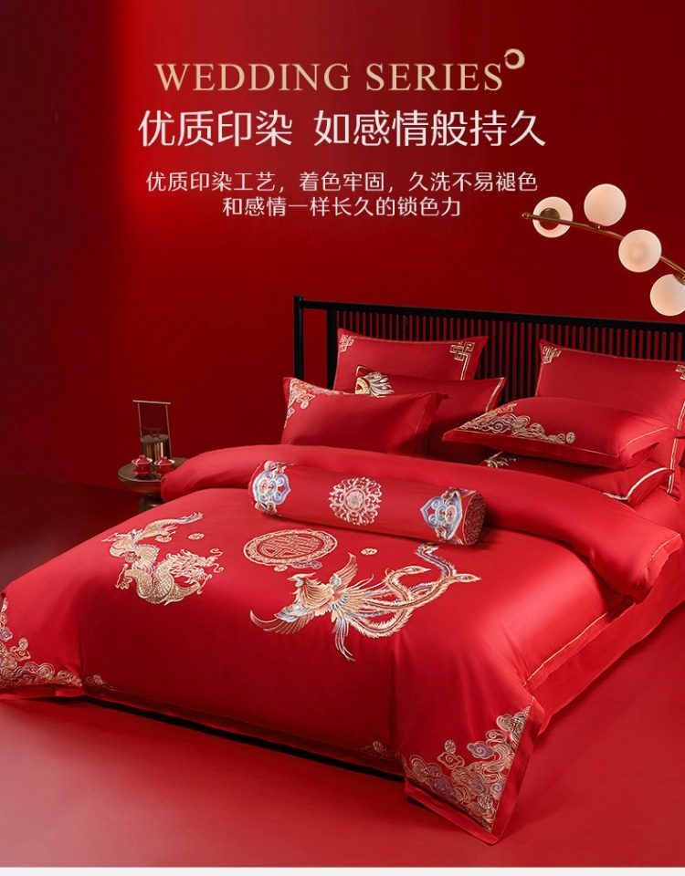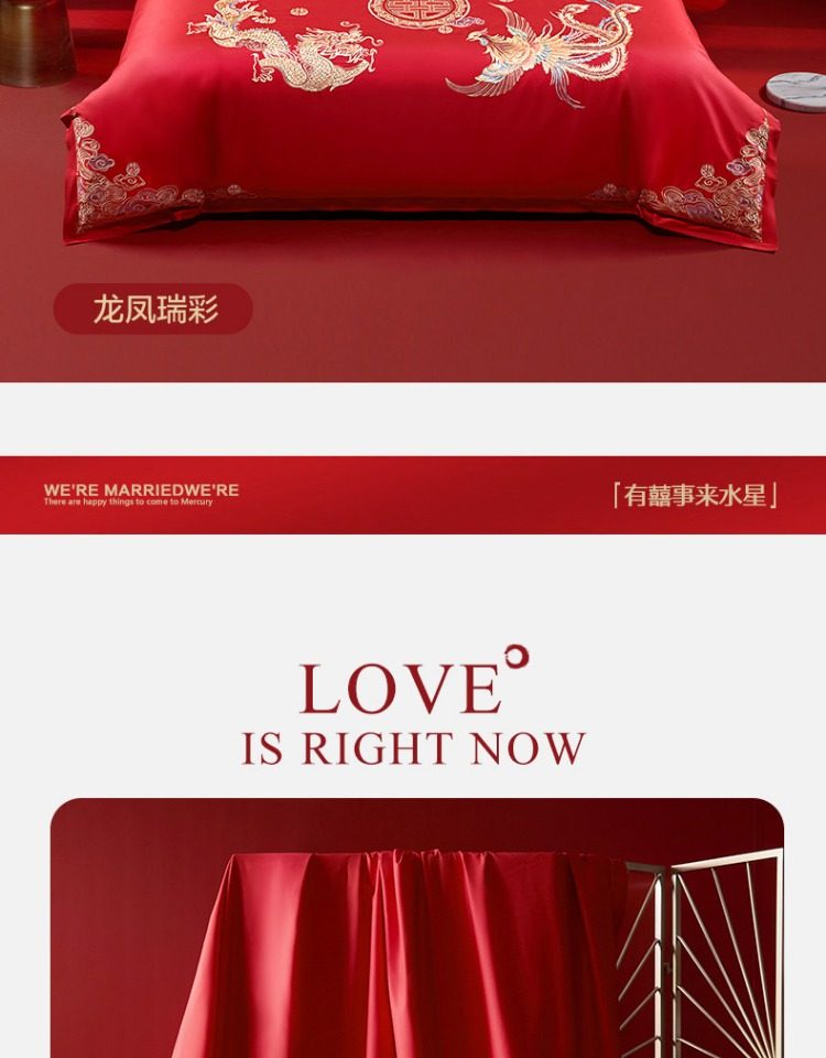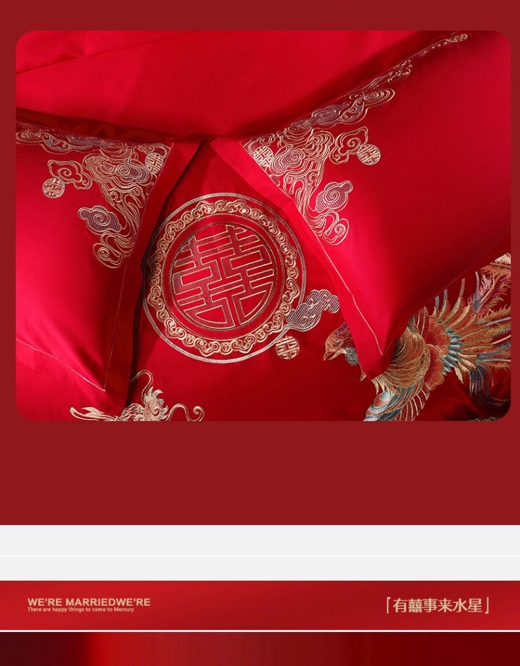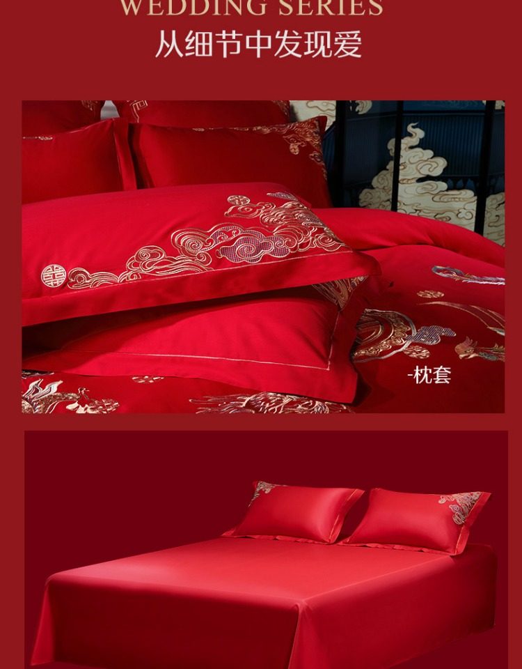 Sort by color Main picture four-piece set, pure cotton fabric + exquisite embroidery, Longfeng Ruicai,(Sheet style) four-piece set, pure cotton fabric + exquisite embroidery, Longfeng Ruicai,Six-piece set, pure cotton fabric + exquisite embroidery, Longfeng Ruicai,Dragon and Phoenix Ruicai Set Four, Wedding Four-piece Set + Fiber Quilt + Pillow Core,Dragon and Phoenix Ruicai Set 2, Wedding Four-piece Set + Silk Quilt + Pillow Core,Dragon and Phoenix Ruicai Set One, Wedding Four-Piece Set + Gooseberry Quilt + Pillow Core,Dragon and Phoenix Ruicai Set Three Eight Wedding Sets Four-piece Wedding Set (sheet*1+quilt cover*1+pillowcase*2)+goose down quilt+silk quilt+pillow core+blanket+pillow core,Happy Dragon and Phoenix Set One, Wedding Four-Piece Set + Gooseberry Quilt + Pillow Core,Happy Dragon and Phoenix Set 2, Wedding Four-piece Set + Silk Quilt + Pillow Core,Four-piece set, cotton fabric + exquisite embroidery, sweet noun,Four-piece set, all-cotton fabric + exquisite embroidery + AB double version, golden dragon and flying phoenix,Four-piece set 60S long velvet cotton + exquisite embroidery + AB double version of the Dragon and Phoenix Singing,Four-piece set 60S long velvet cotton + exquisite embroidery, accompanied by the jubilant gift,Four-piece set 40S all-cotton + exquisite embroidery Fengwu Double Fly,Four-piece set, pure cotton fabric + exquisite embroidery, Fulu Weiyang,Four-piece set, pure cotton fabric + exquisite embroidery, Jinse Huayan,Ten-piece set 60S long velvet cotton + exquisite embroidery Golden Dragon and Phoenix,Customized kit details drop-down jump link