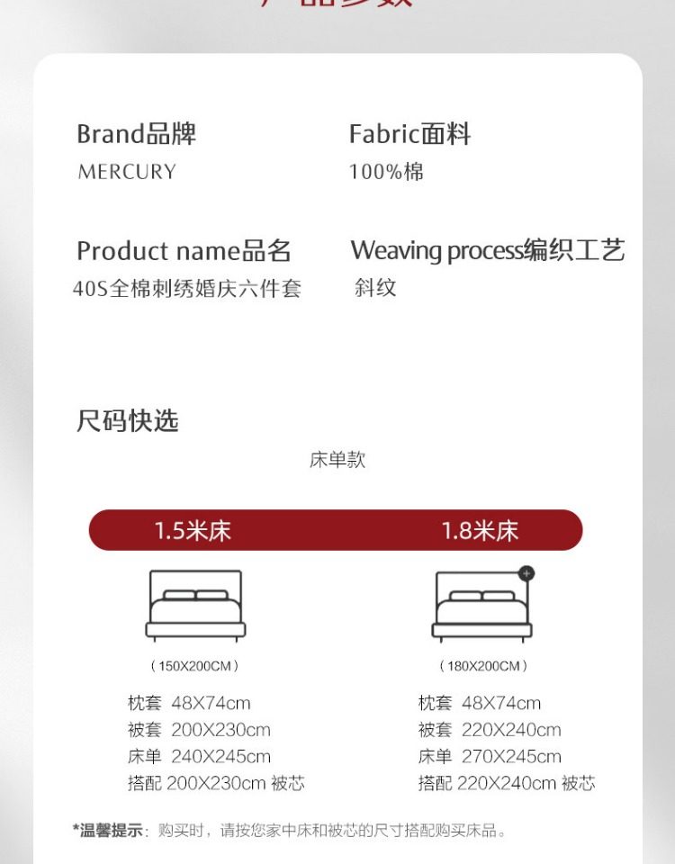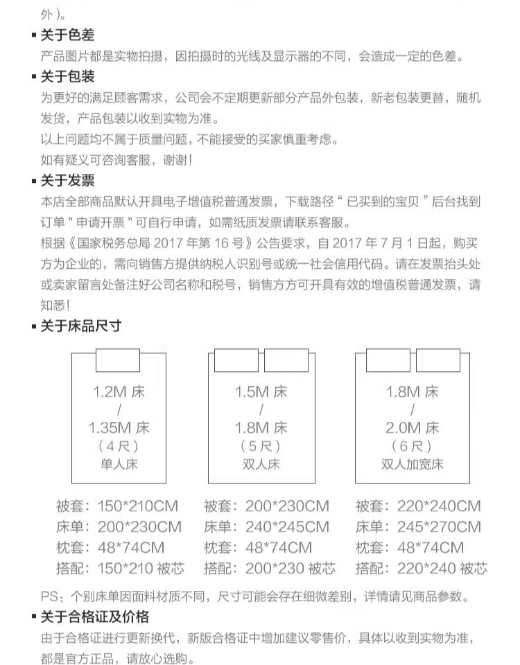 Applicable bed size Suitable for 1.8 meters beds, it is recommended to wear 220*240cm quilt core,Suitable for 1.5 meters bed, it is recommended to wear 200*230cm quilt core