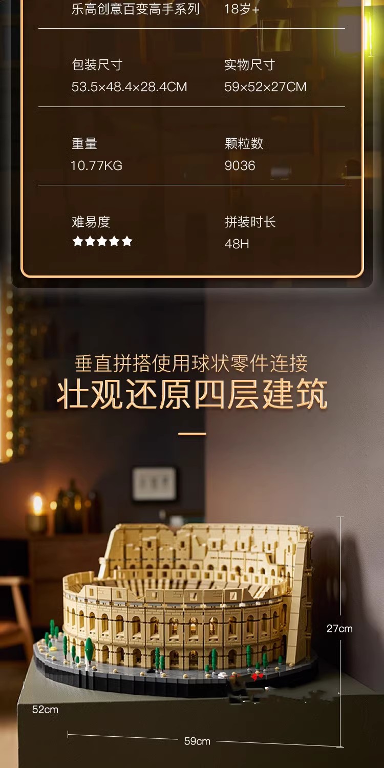 中国积木罗马斗兽场10276世界地标大型建筑模型高难度成人礼物