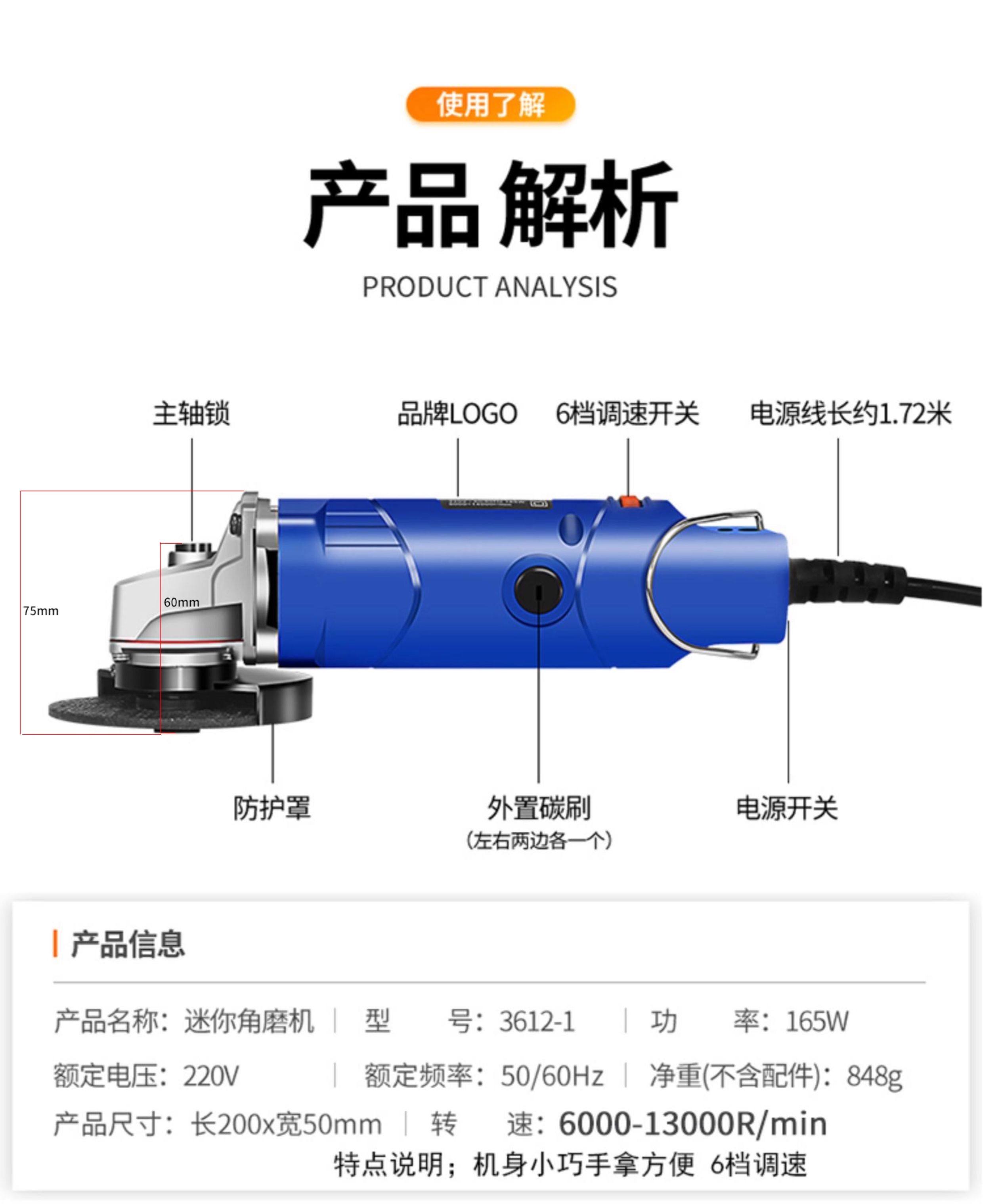 Color Classification 3612-1 Mini Angle Grinder[6-Speed Speed Adjustment]Standard Configuration,3612-1 Mini Angle Grinder[6-Speed Speed Adjustment]+5 Pieces of Louver Wheels,3612-1 Mini Angle Grinder[6-Speed Speed Adjustment]+5 Grinding Wheels,3612-1 Mini Angle Grinder[6-Speed Speed Adjustment]+Dual Network 5 Pieces,3612-1 Mini Angle Grinder[6-Speed Speed Adjustment]+5 Woodworking Saw Blades,3612-1 Mini Angle Grinder[6-Speed Speed Adjustment]+ 4inch Self-Adhesive Disc + 100 Pieces Randomly Distributed,3612-1 Mini Angle Grinder[6-Speed Speed Adjustment]+All-Round Package,Industrial Grade Cutting Package Without Machine,3612-1 Grinding and Polishing Set + 80/120/180/240 100 Pieces Each,3612-1 Mini 6-Speed Speed-Adjustable Angle Grinder + 5 Jade Cutting Discs + Dripping Device