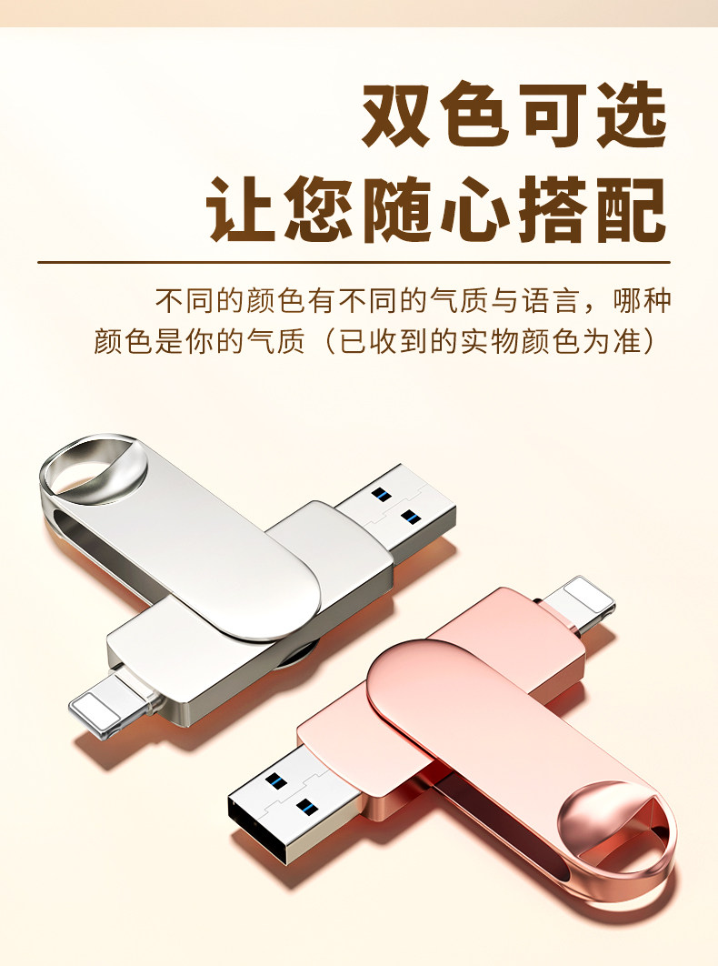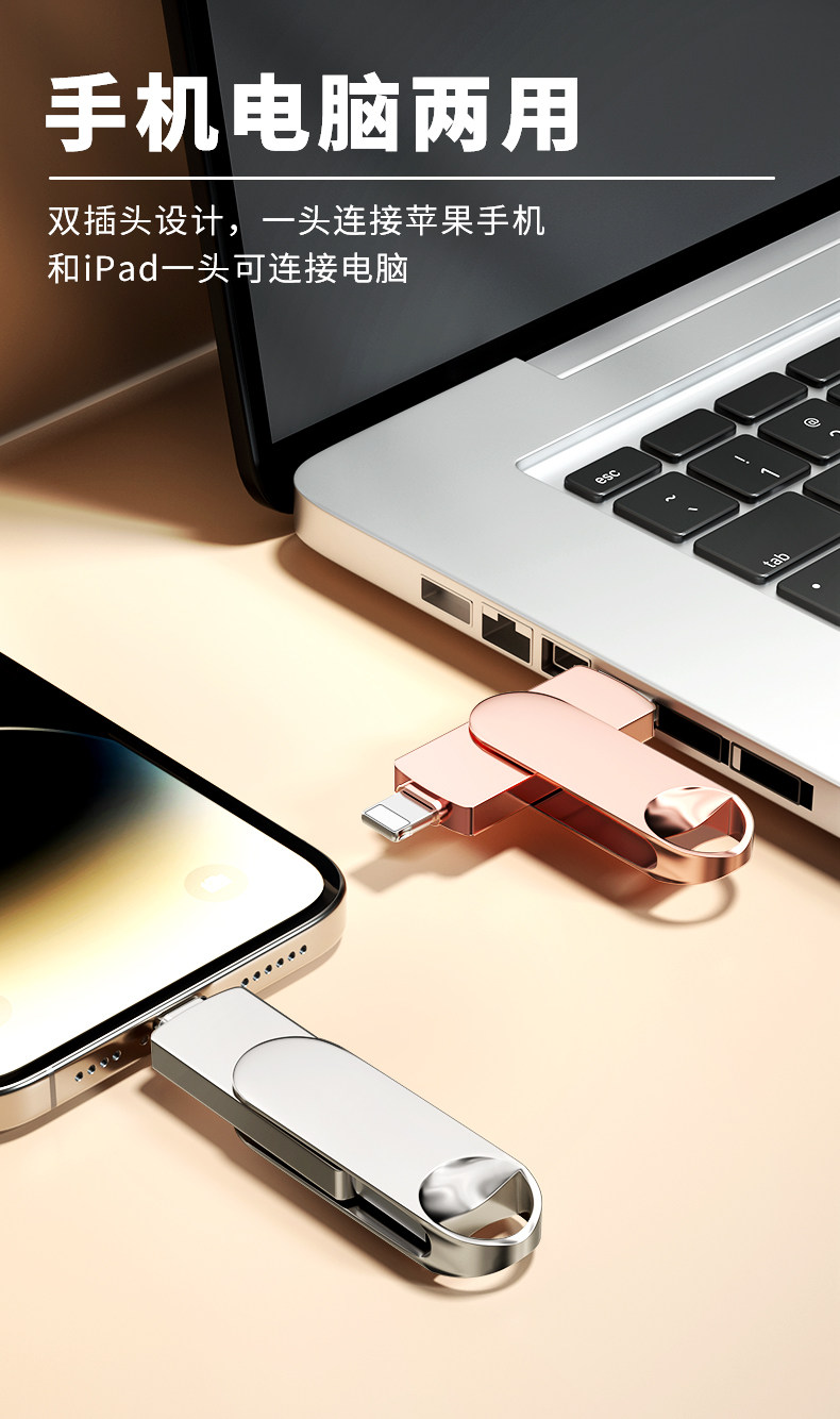 Apple Mobile Phone USB Flash Drive, Dual-Use for Computer, iPhone Dual Interfaces, Can Be Plugged in to External Devices, Dedicated for Photos, Large-Capacity Storage Device