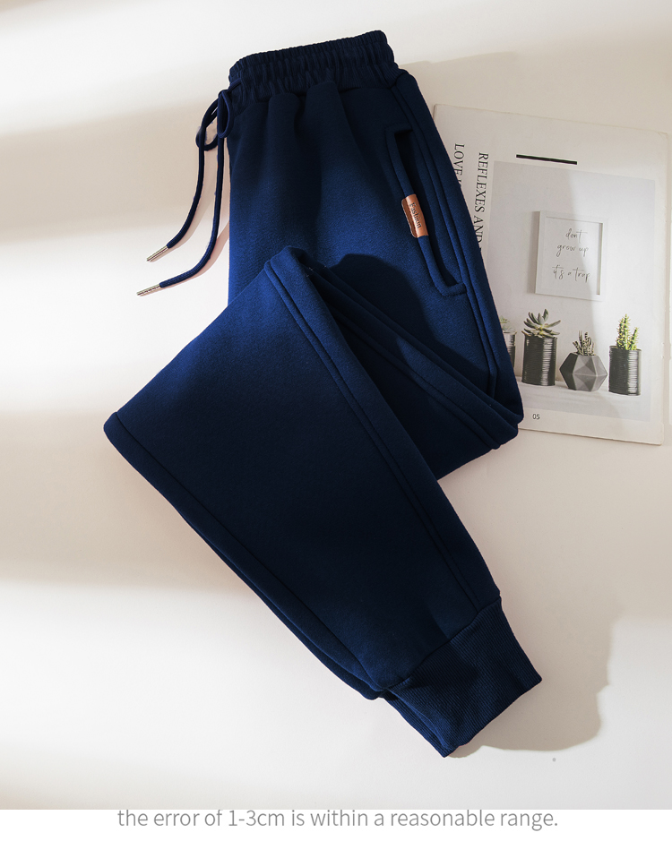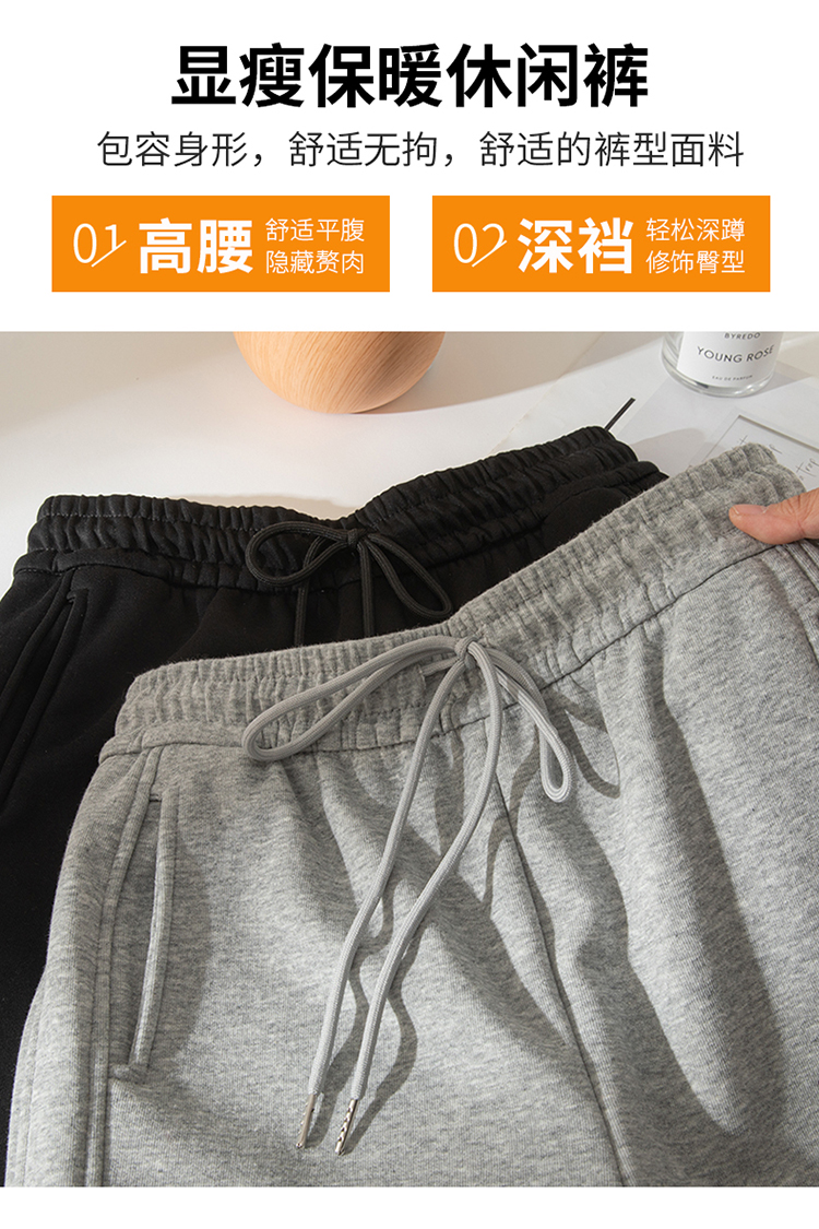 Black Women's Sweatpants for Autumn and Winter, Fleece-Lined and Thickened, 2025 New Style, Loose Fit, Jogger Style, Casual, Suitable for Petite Women, Spring and Autumn