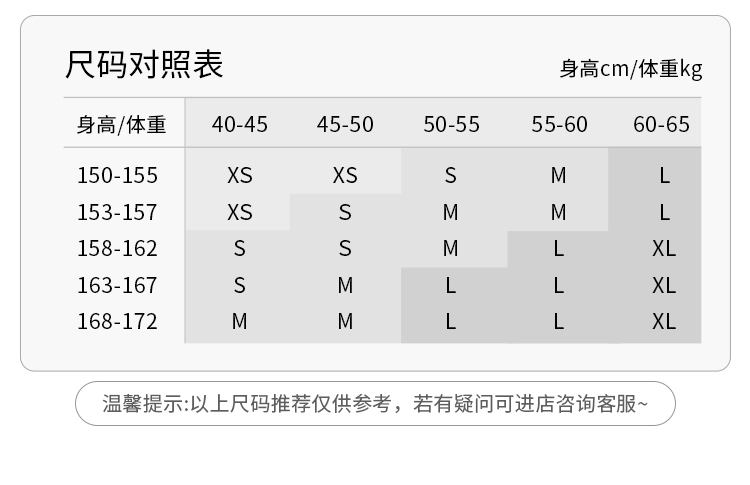 China (cm) 160-165/84-86 165-170 / 88-90 167-172 / 92-96 168-173 / 98-102 170-176 / 106-110