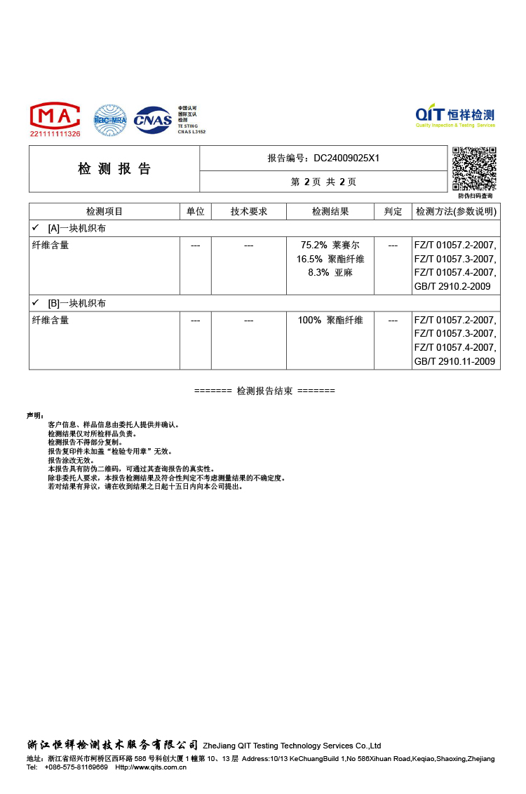 Material Composition Lyocell Fiber (Lyocell) 75.2% Polyester 16.5% Linen 8.3%