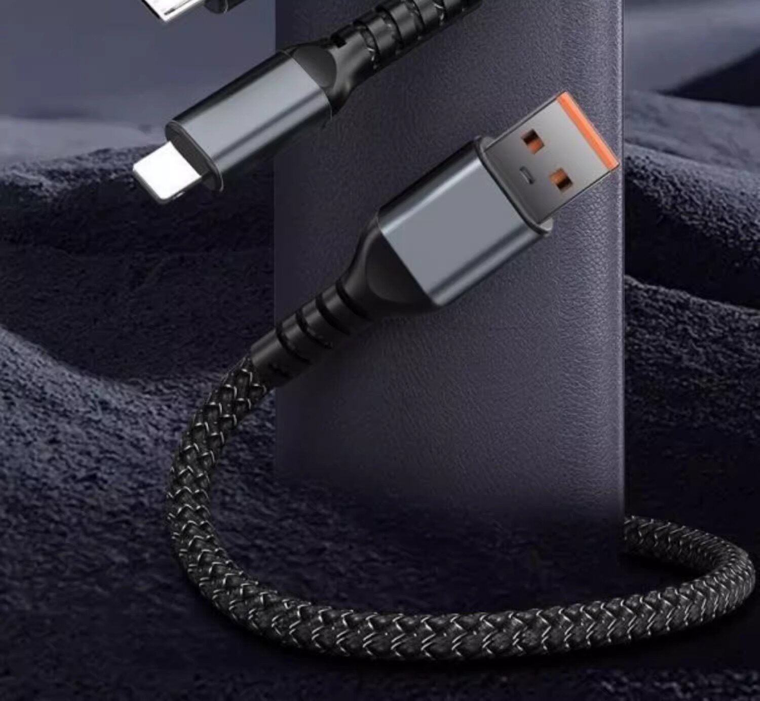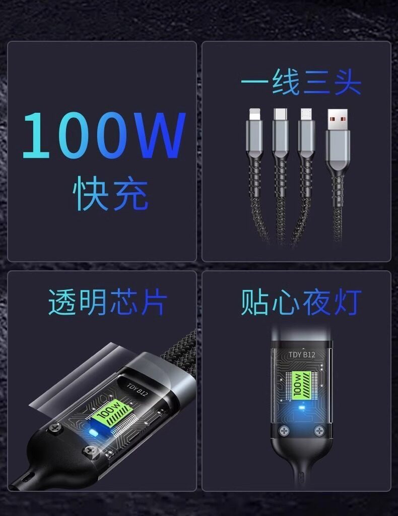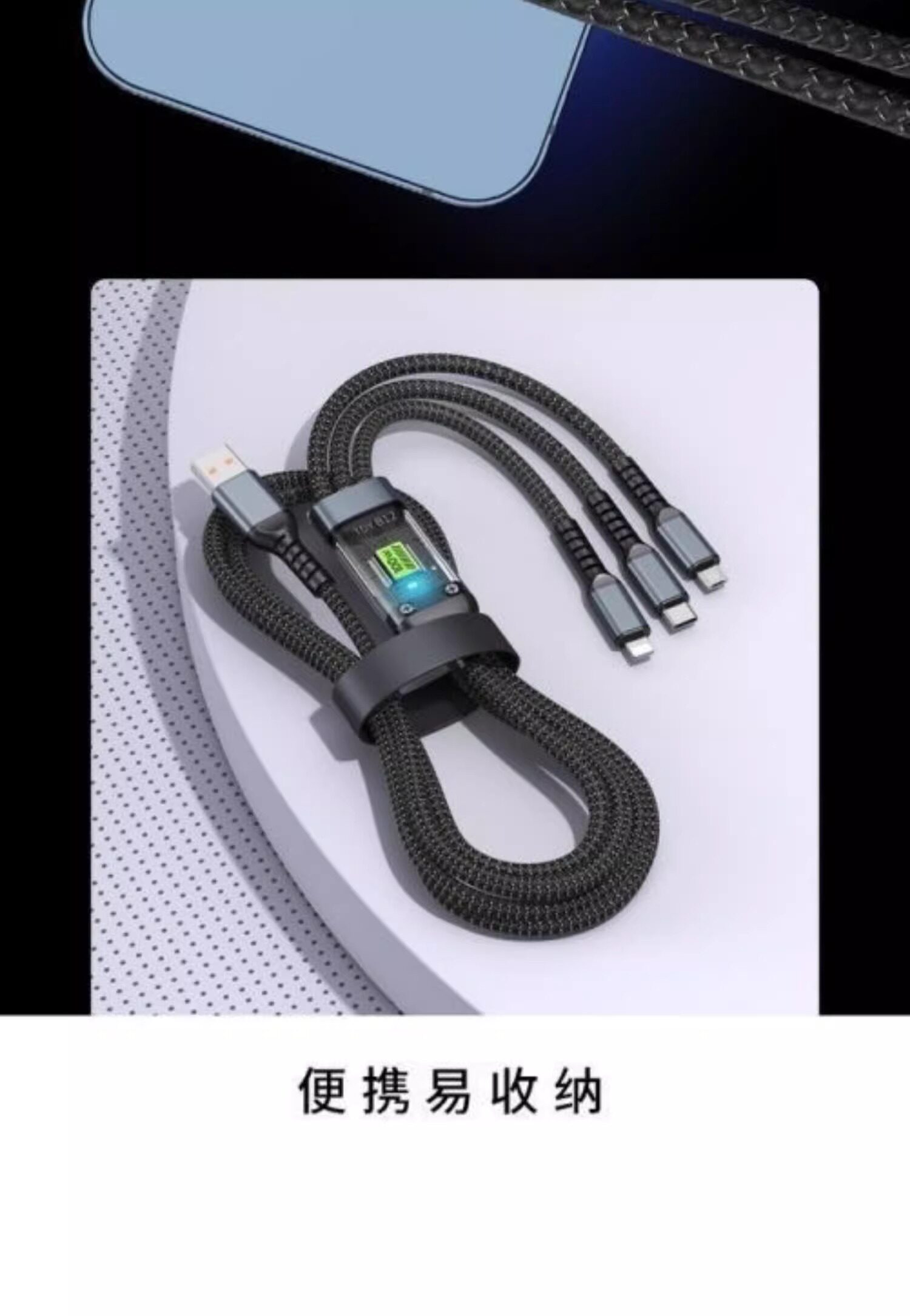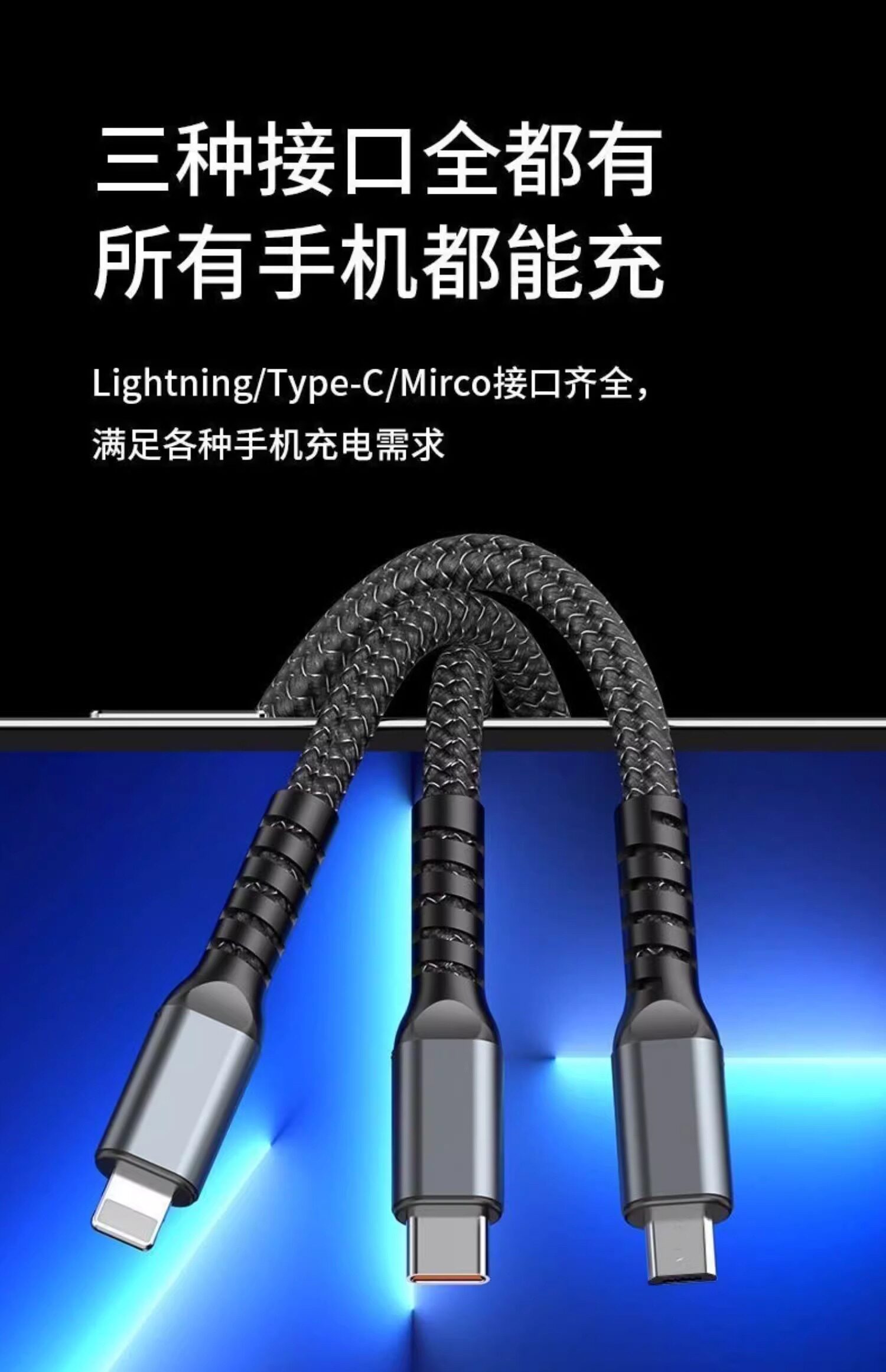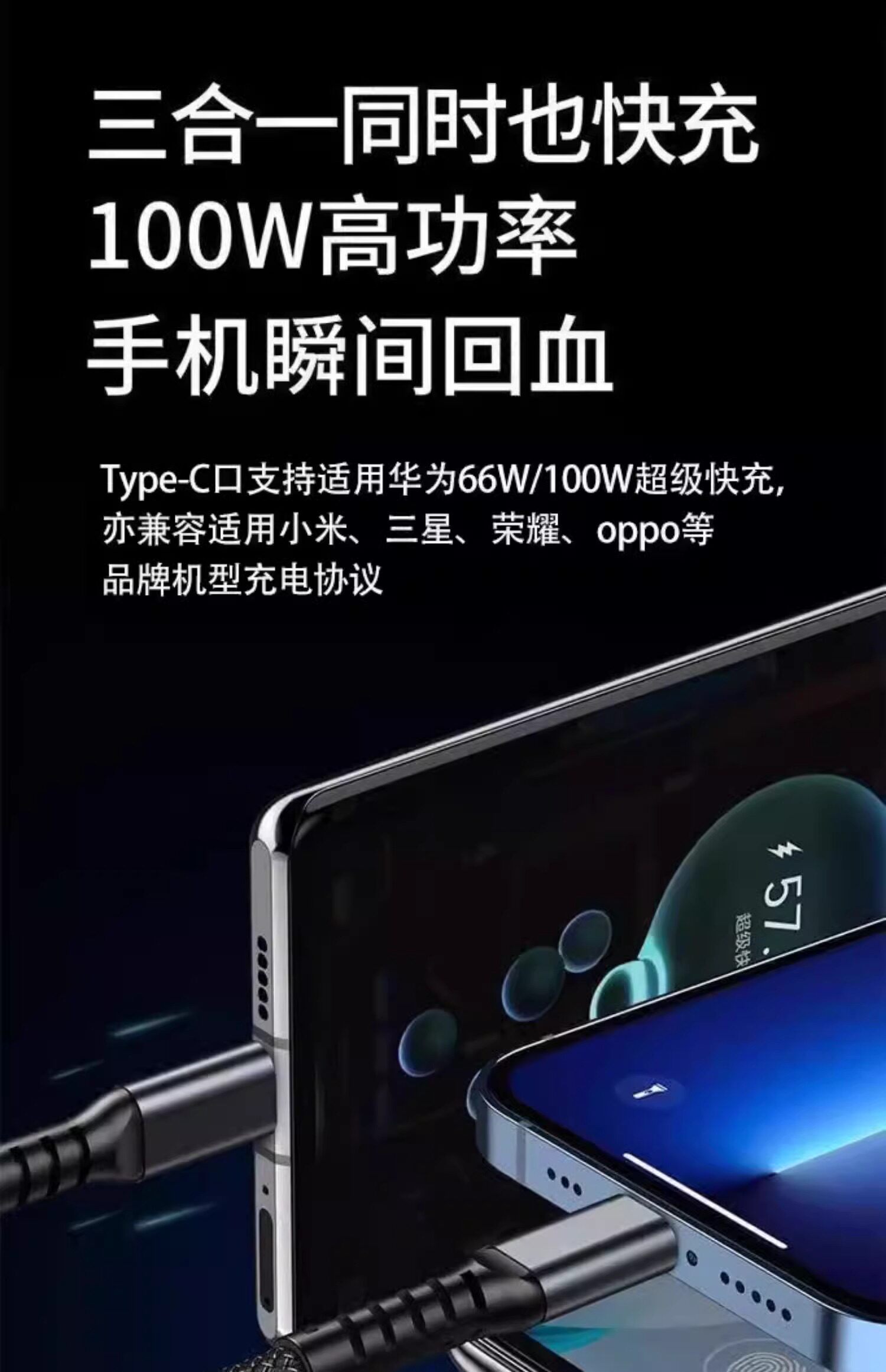 One-to-three fast charging data cable 120w car three-in-one super flash charging suitable for apple iphone 14 huawei honor vivo android type-c charger cable
