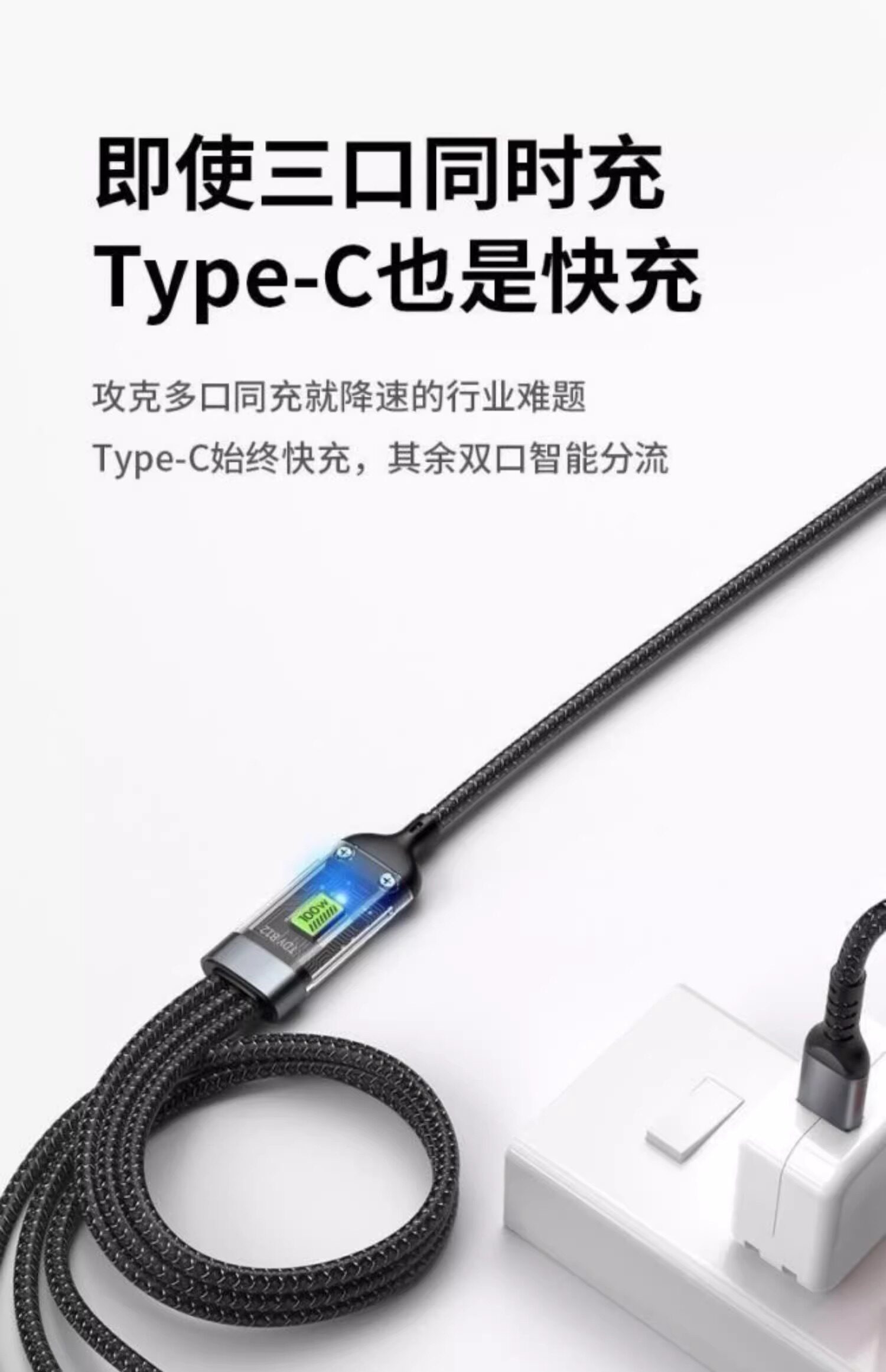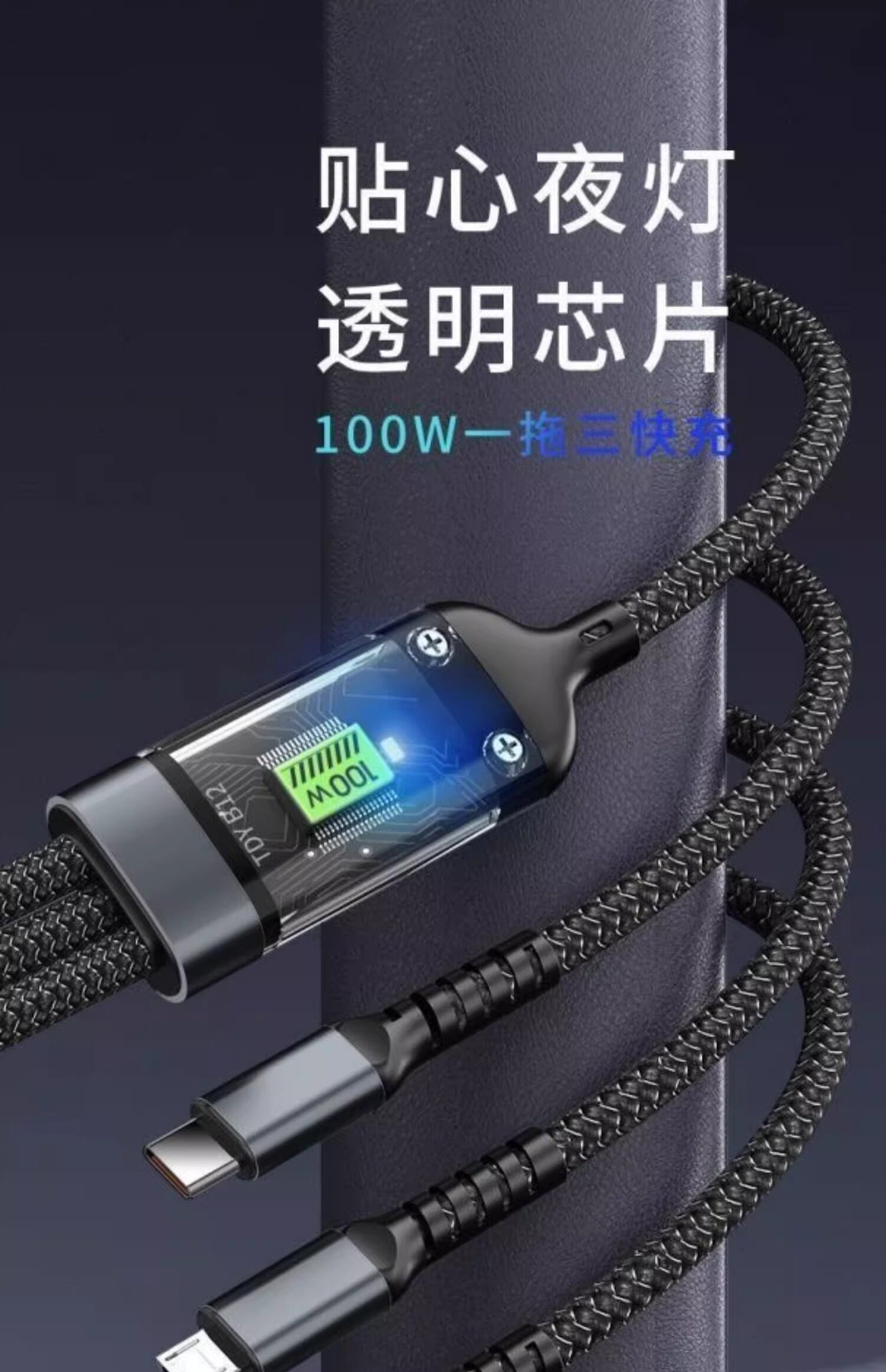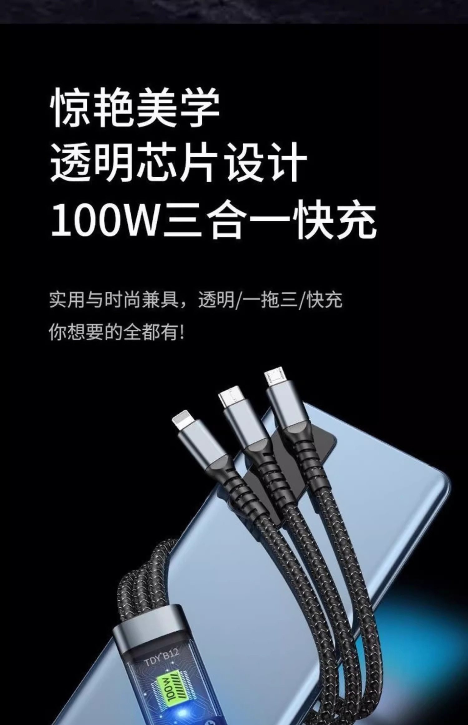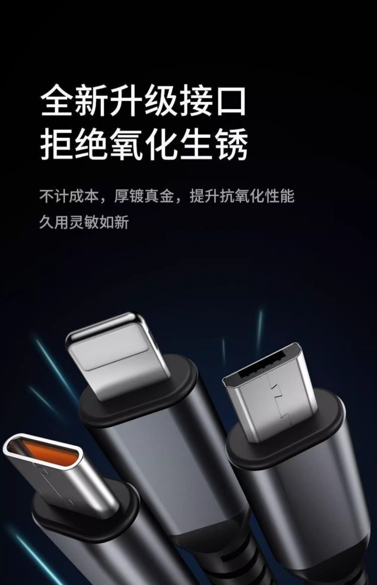 One-to-three fast charging data cable 120w car three-in-one super flash charging suitable for apple iphone 14 huawei honor vivo android type-c charger cable