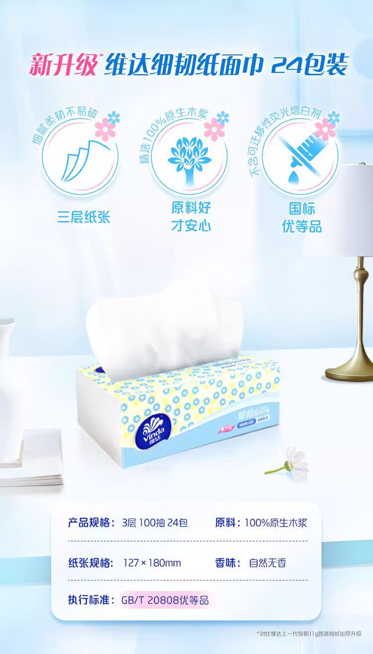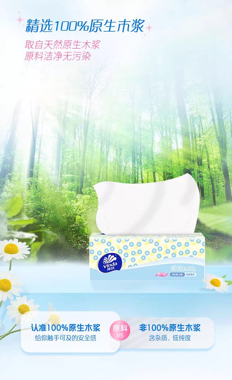 Vinda thin and tough 3-layer 100-pack household toilet paper towels facial tissue napkins paper towels