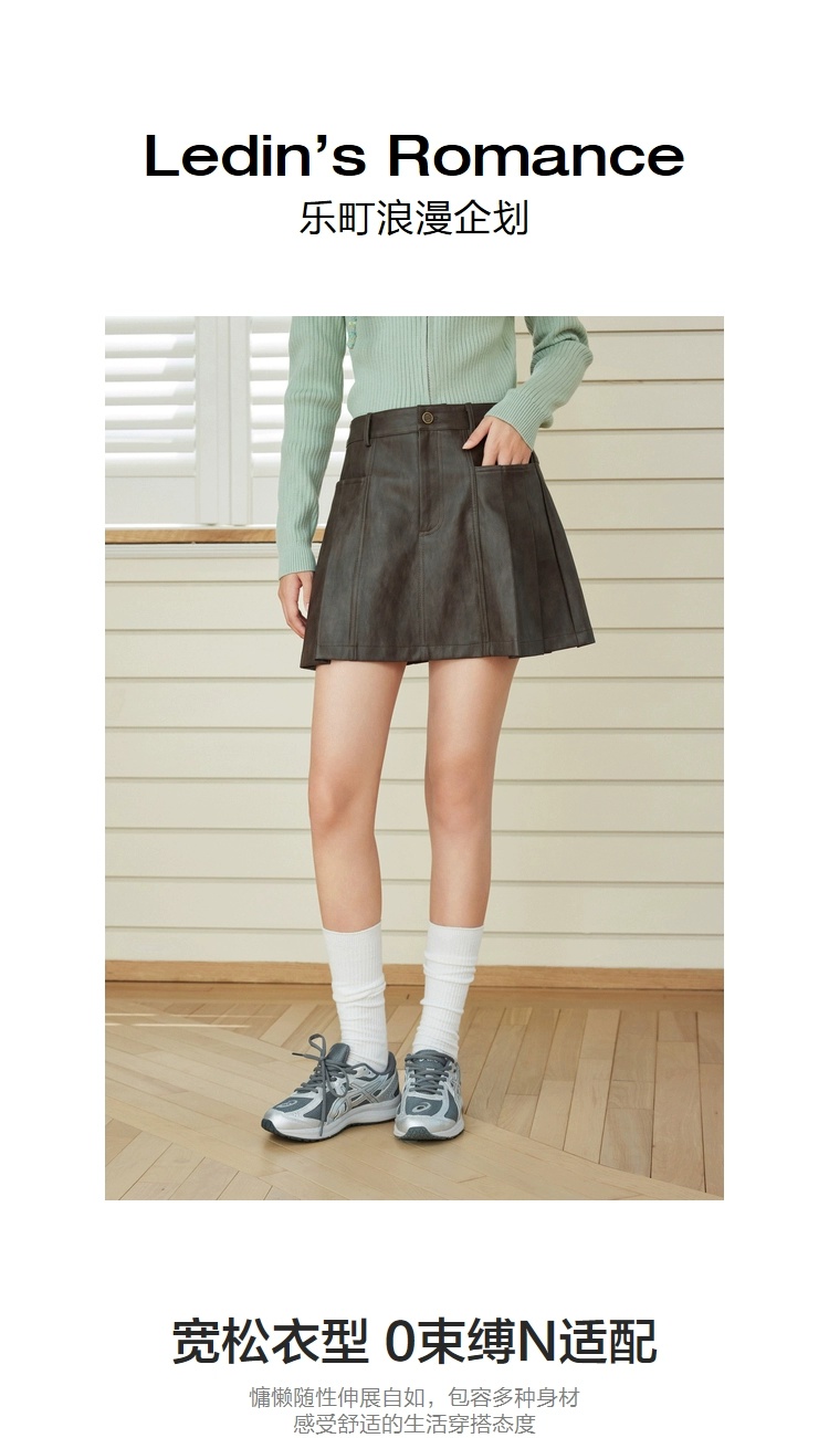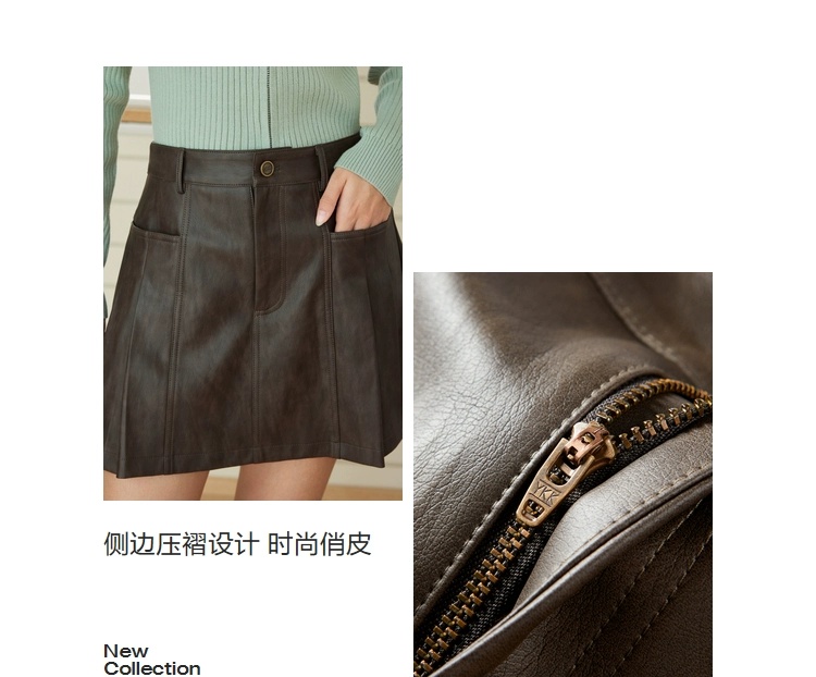 Lemeng Retro Pu Leather Pleated Skirt Women's Winter New Anti-Exposure Leggings Skirt Preppy Style Short Skirt