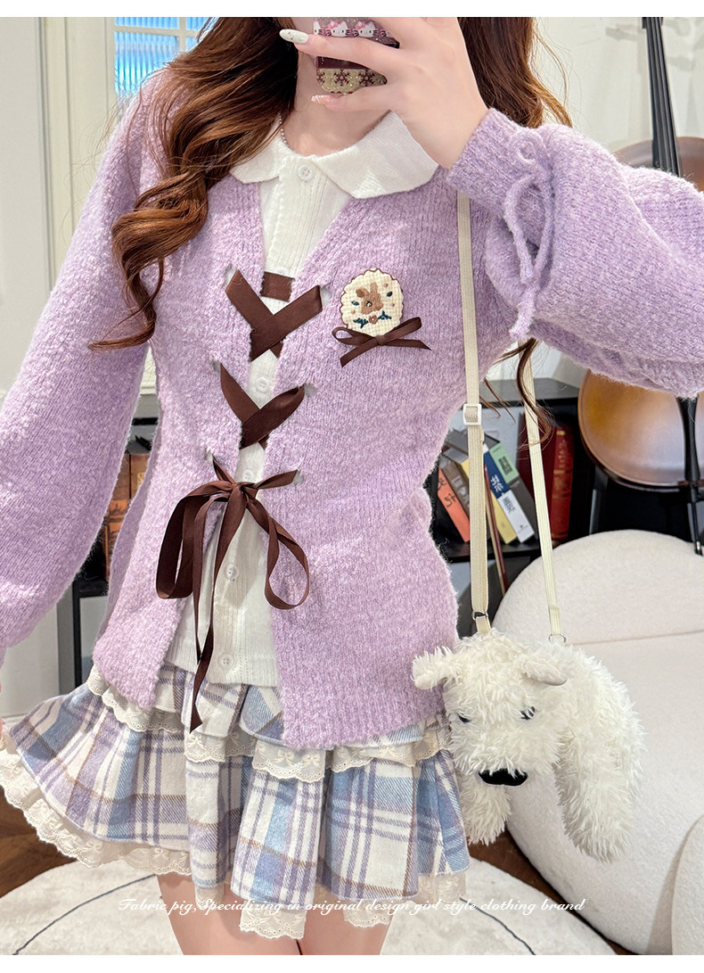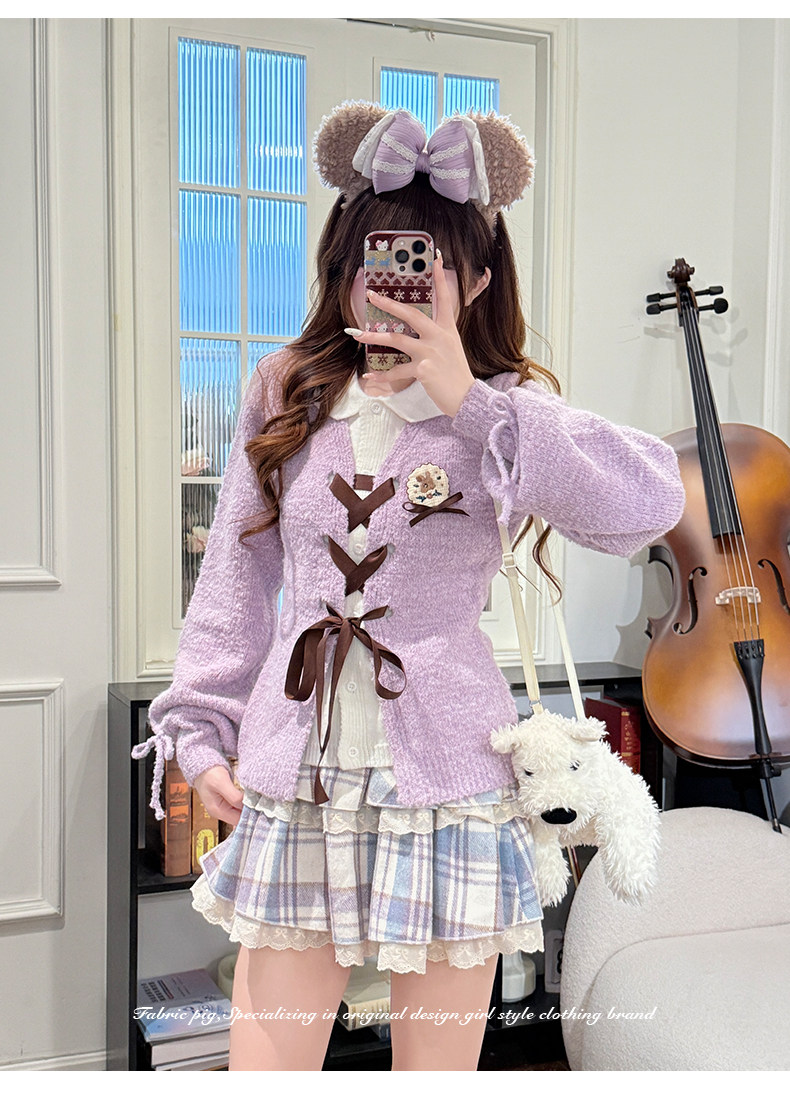Fabric Pig Senyu Tangqiao Sweet Retro Style Purple Fake Two-piece Sweater Women's Winter Lazy Sweatshirt Jacket