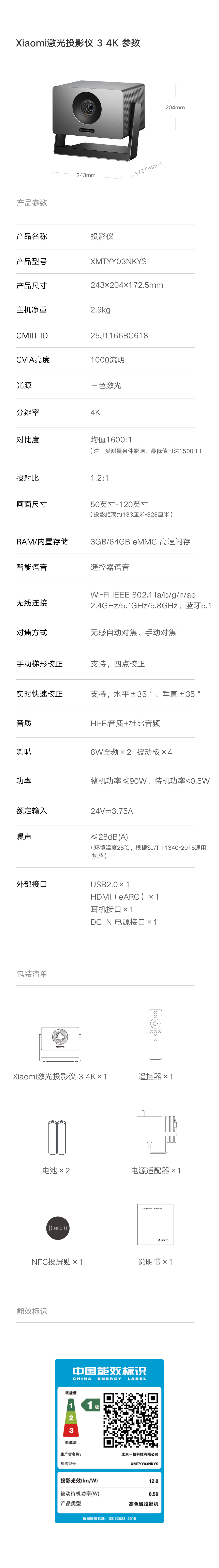 Model Xiaomi laser projection 3