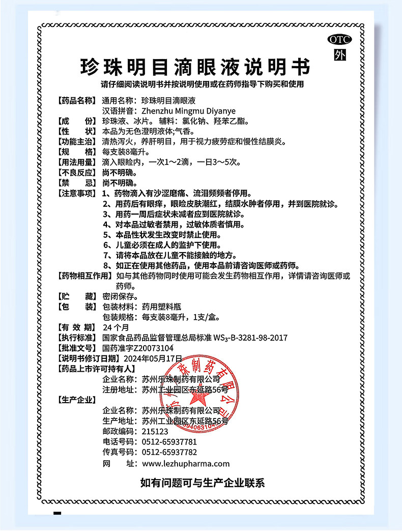Pearl Eye Drops 8ml*1/box Chronic Conjunctivitis Eye Fatigue Conjunctivitis Eye Fatigue Vision Fatigue