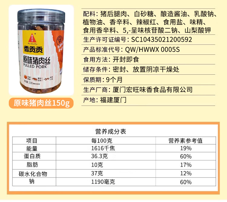 Taste 150g original pork shreds/can,150g original pork shreds/can*2,250g premium dried meat A/1 pack,250g premium dried meat A/2 pack,250g spicy shredded pork/pack,250g slightly spicy shredded pork/pack*2,250g original shredded pork/pack,250g original shredded pork/pack*2,250g pork slices/package,250g pork slices/pack*2,108g original shredded pork/pack,108g original shredded pork/pack*2,108g raw pork slices/package,108g raw pork slices/pack*2,700g original pork shreds/bottle,700g original pork shreds/bottle*2,700g delicious pork slices/bottle,700g delicious pork slices/bottle*2,2.5Jin Jin is equal to 0.5kg package/original shredded pork/hardcover independent/package,2.5Jin Jin is equal to 0.5kg packed/original shredded pork/hardcover independent/package*2,5Jin Jin is equal to 0.5kg/spicy shredded pork/package,5Jin Jin is equal to 0.5kg/spicy shredded pork/pack*2,5Jin Jin is equal to 0.5kg/original pork shreds/package,5Jin Jin is equal to 0.5kg/original pork shreds/package*2