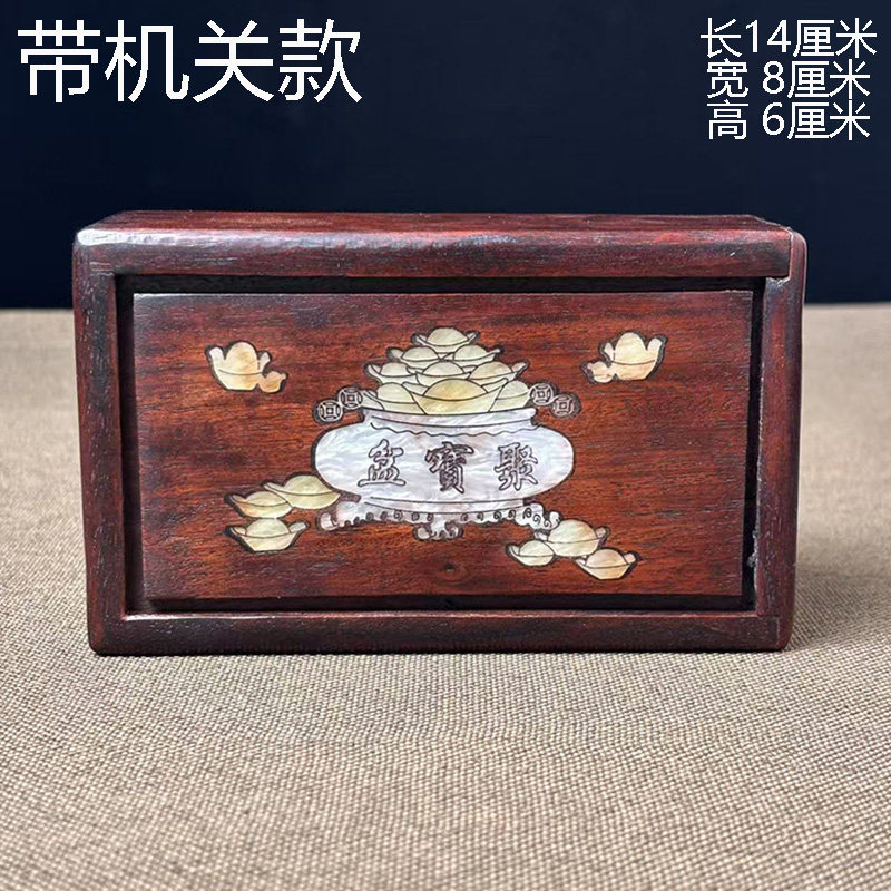 Antique antique rosewood inlaid shell gem machine box jewelry box mahogany mother-of-pearl pull-out box Luban box