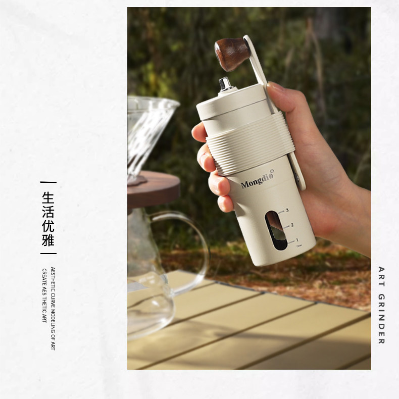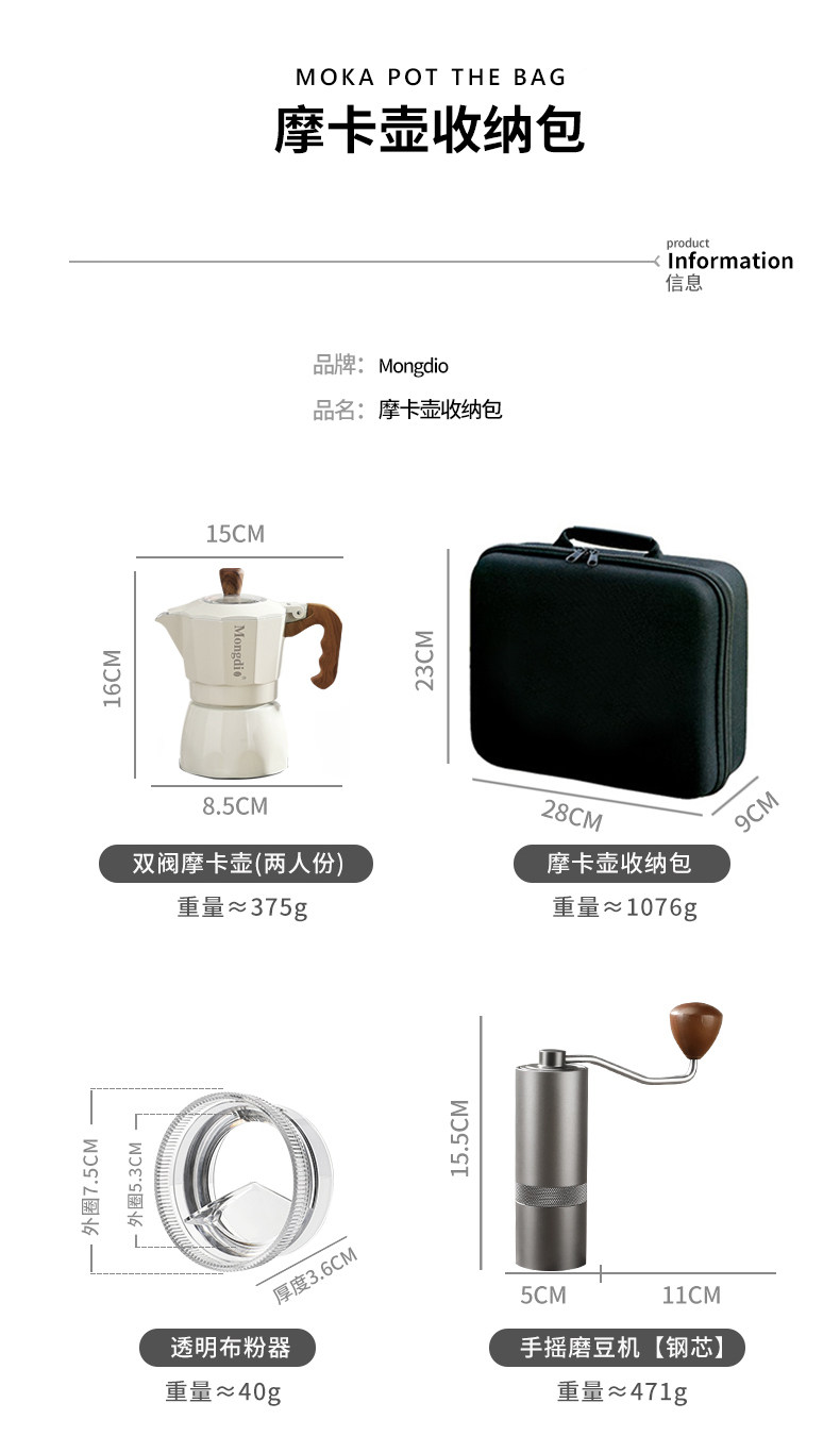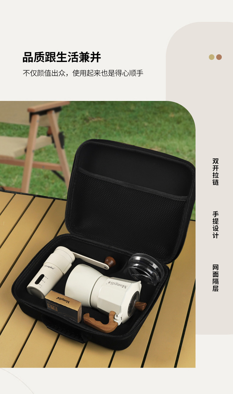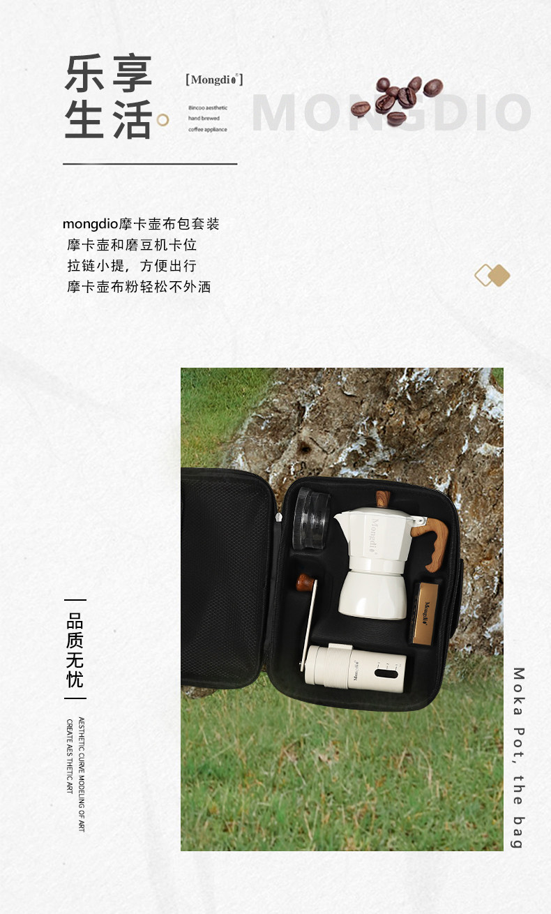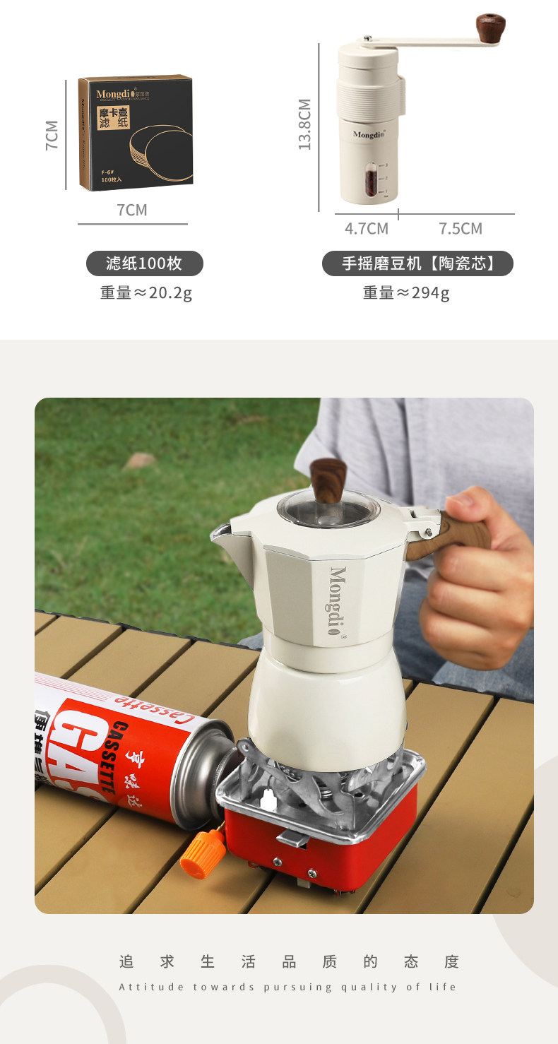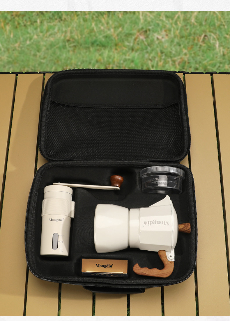 Mongdio Double-Valve Moka Pot Set Outdoor Coffee Maker Small Camping Espresso Extraction Hand Grinder Coffee Machine
