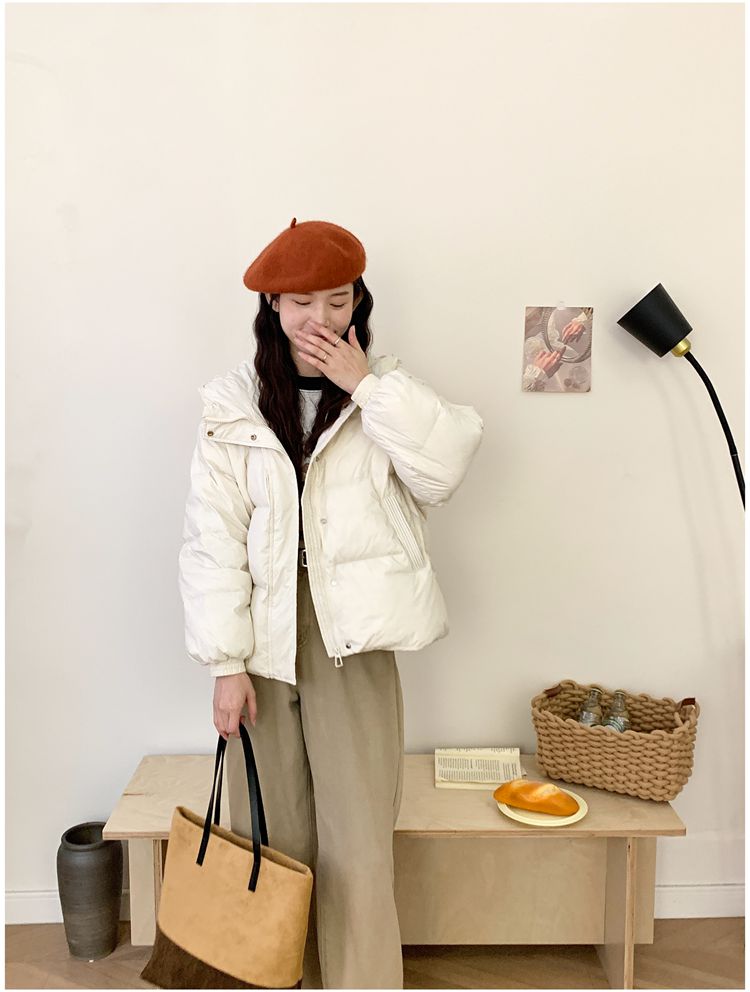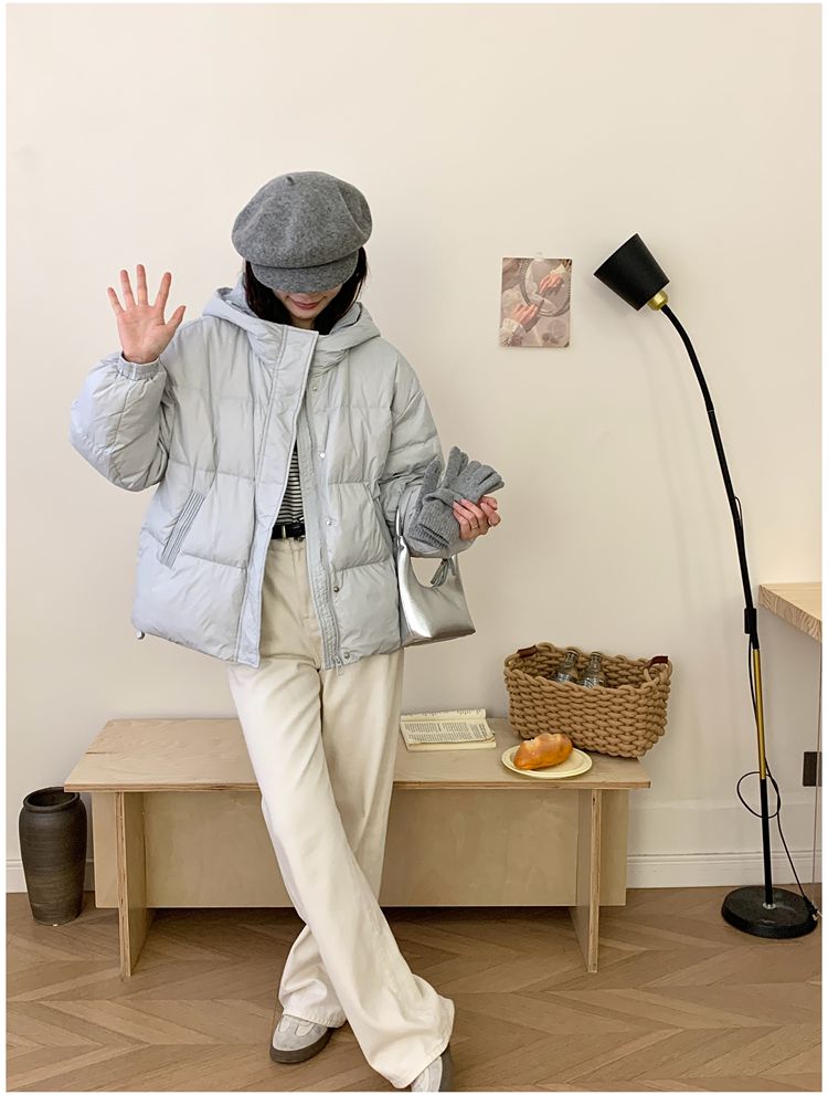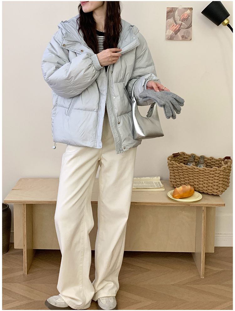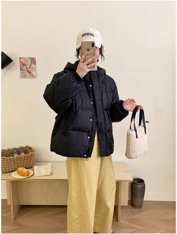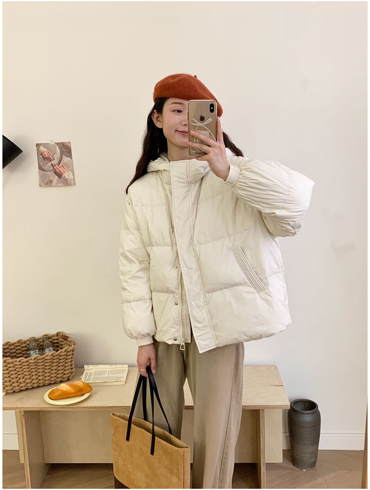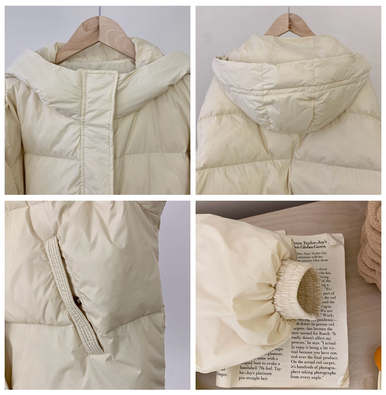2025 New Winter down Jacket for Women, Short Style with Hood, Petite, Sweet, Versatile, Thickened Puffer Jacket, White Duck down Coat