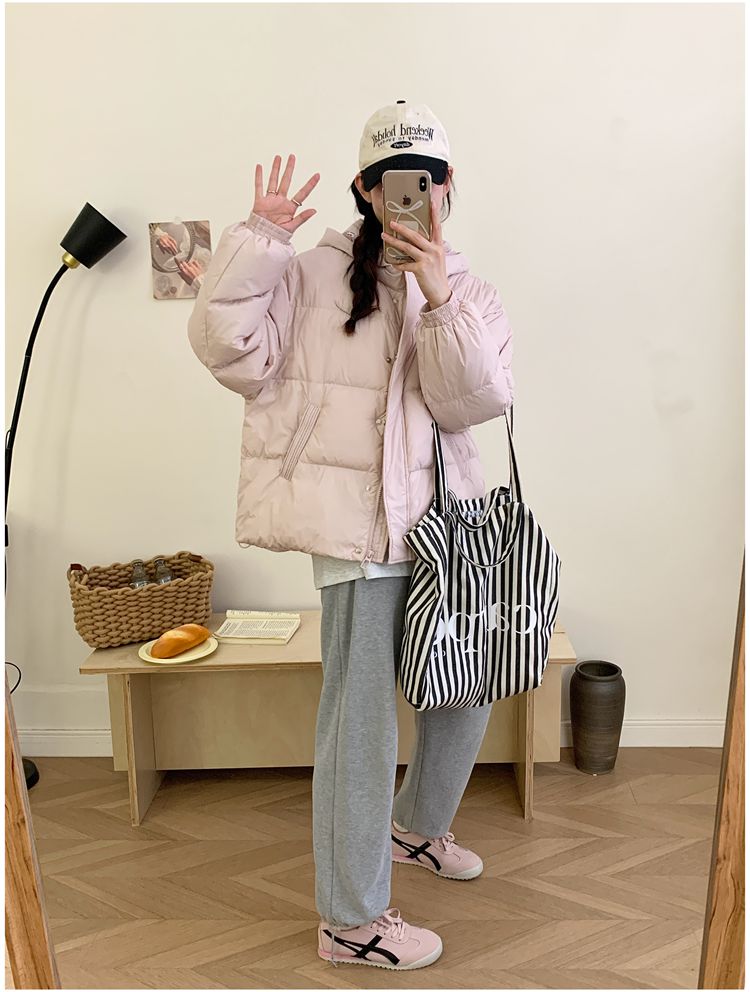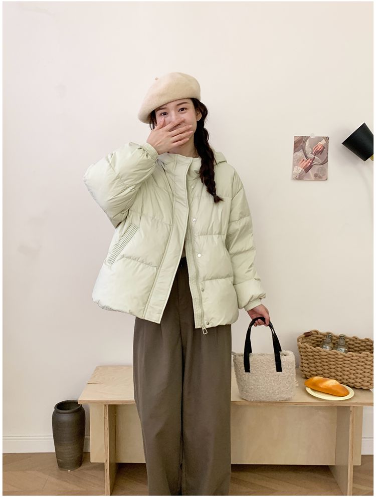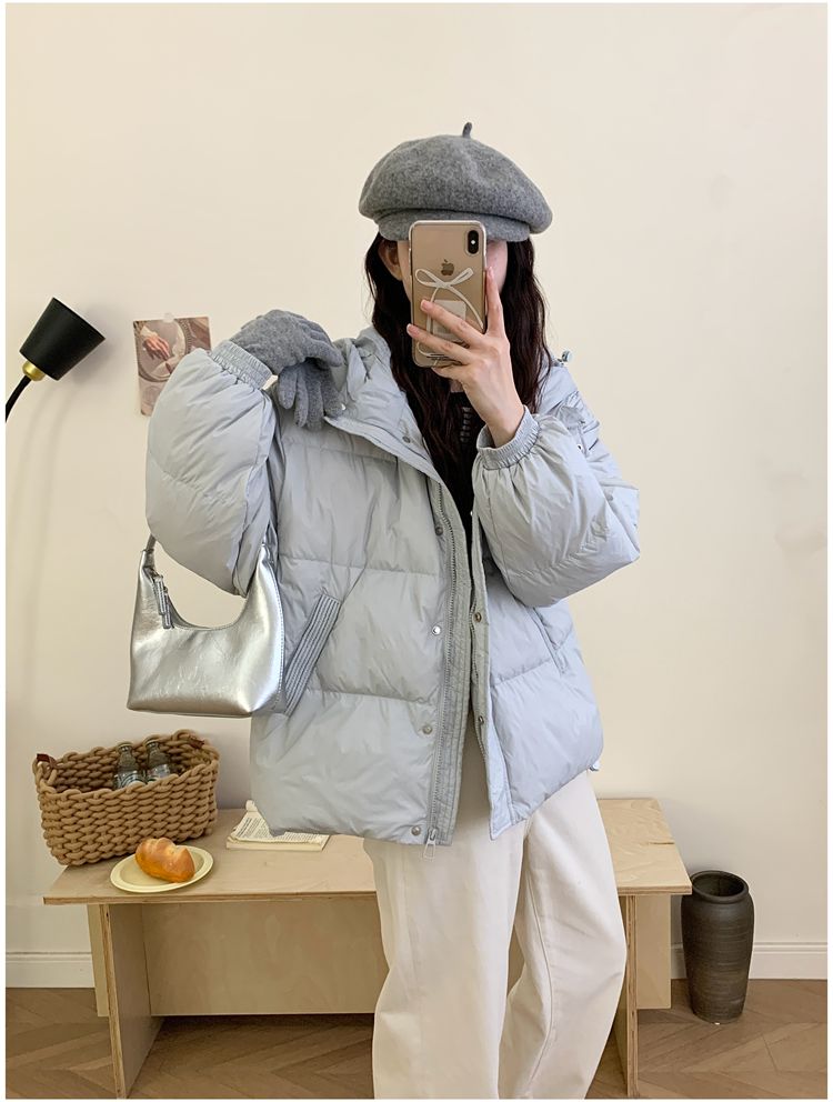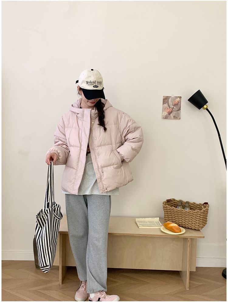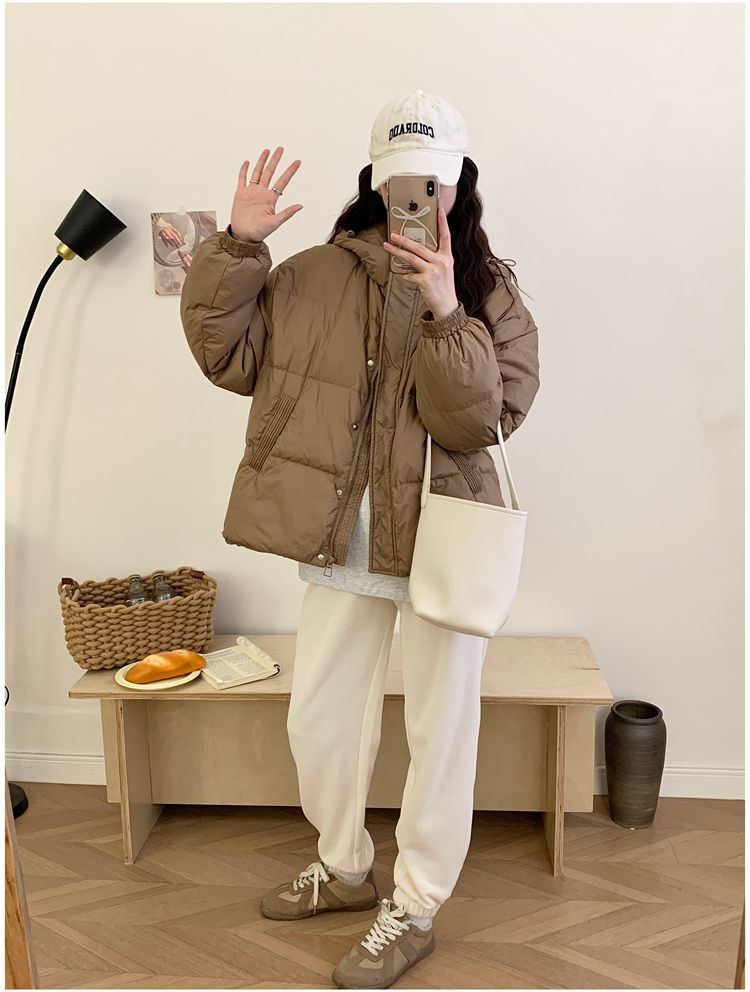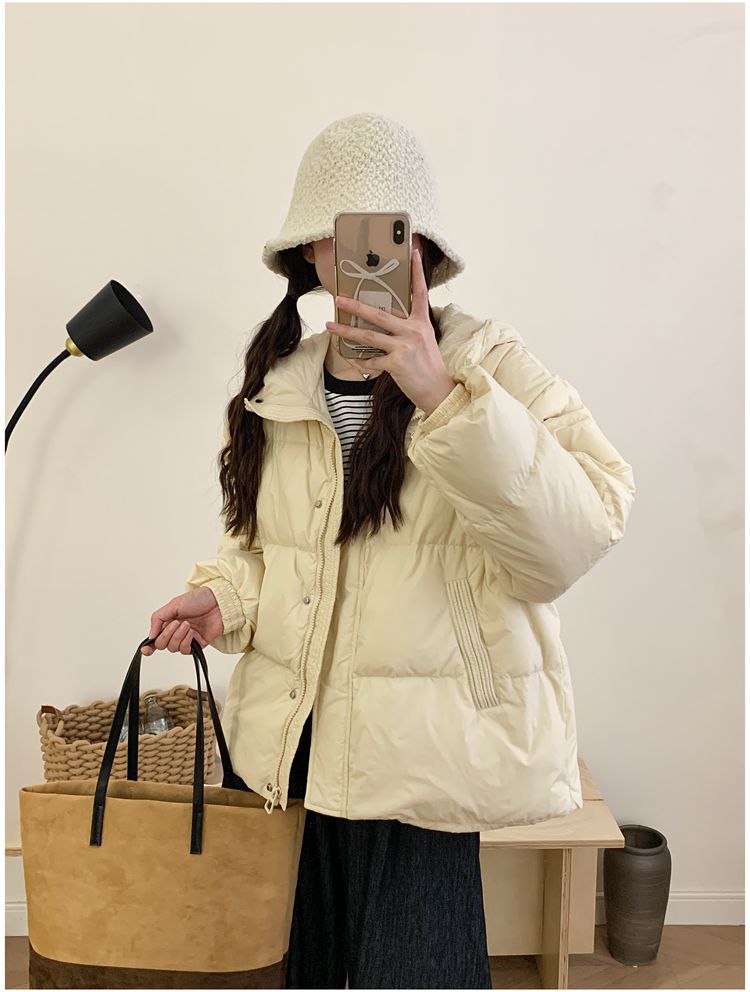2025 New Winter down Jacket for Women, Short Style with Hood, Petite, Sweet, Versatile, Thickened Puffer Jacket, White Duck down Coat