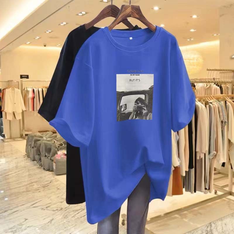 Summer 300jin jin is equal to 0.5kg large size pure cotton short-sleeved bottoming shirt for women fat mm loose casual versatile mid-length top t-shirt trendy