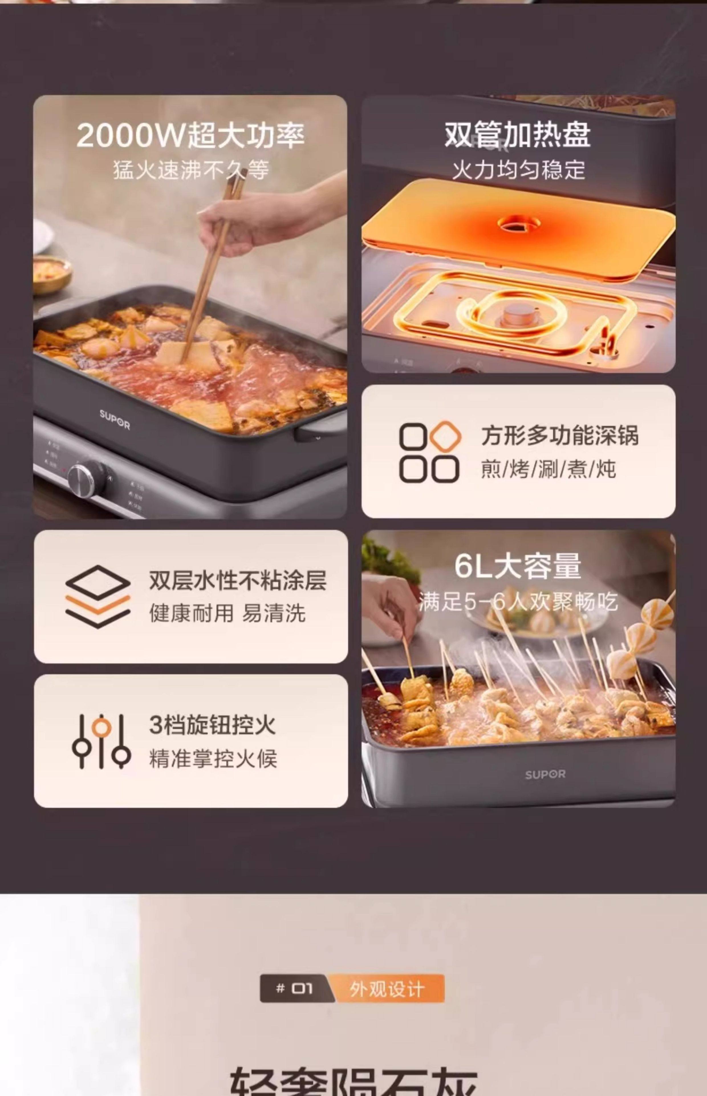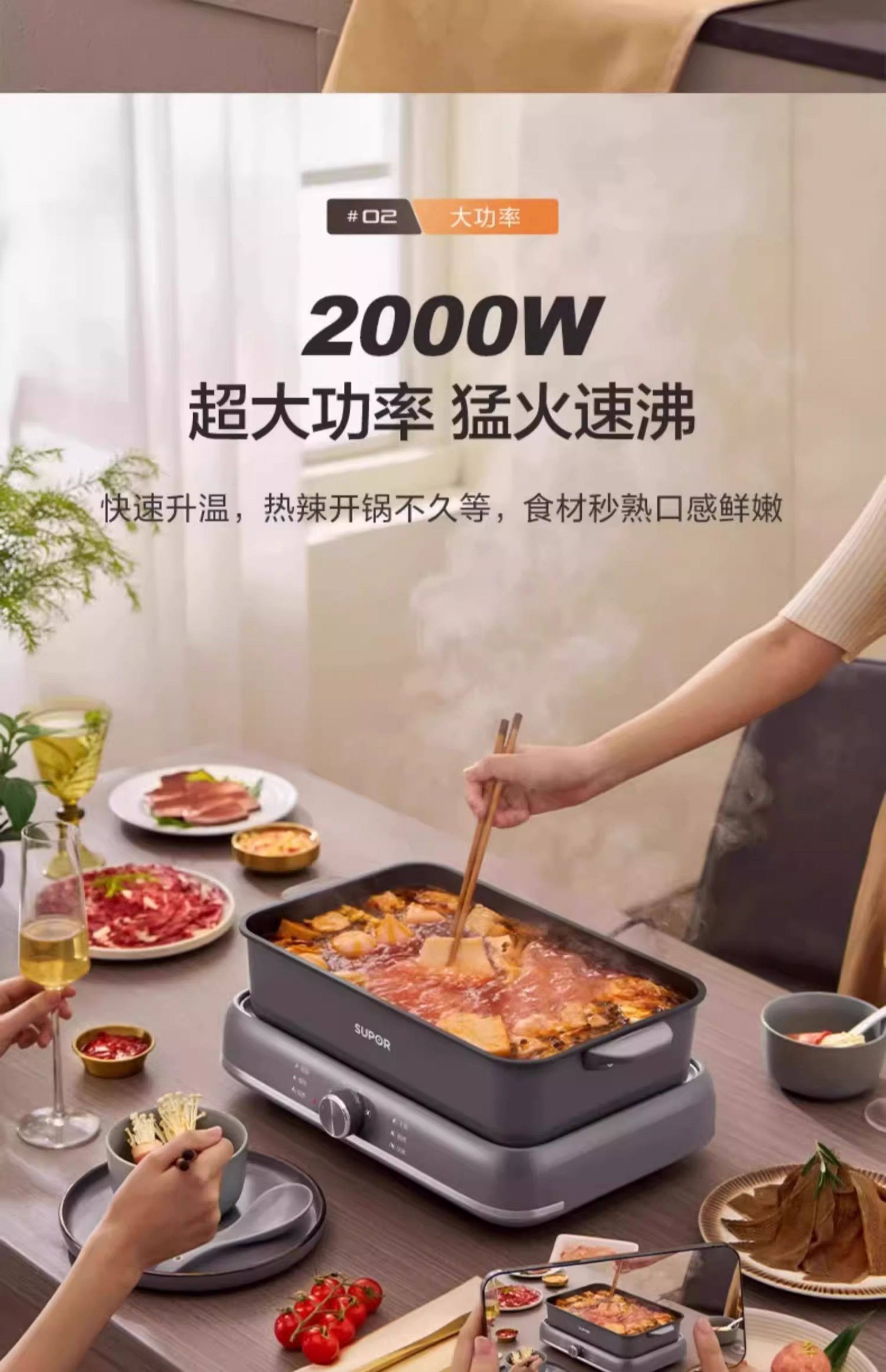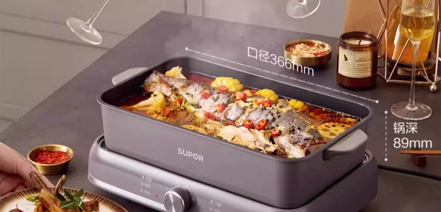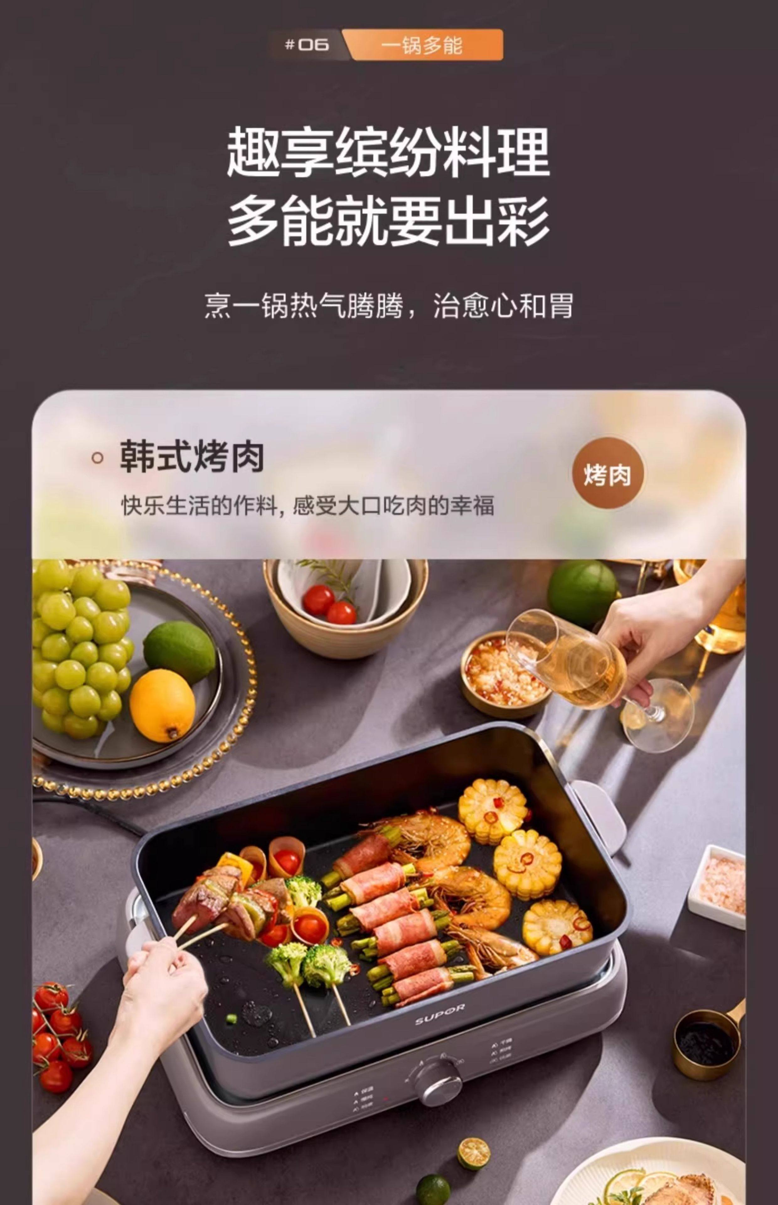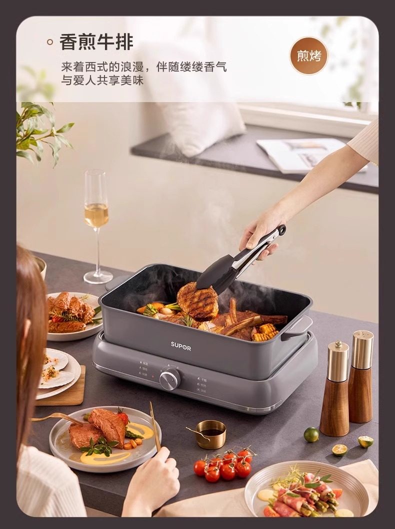 Supor electric hot pot household multi-functional cooking split type barbecue grilled fish special steaming, frying and stir-frying electric cooking pot