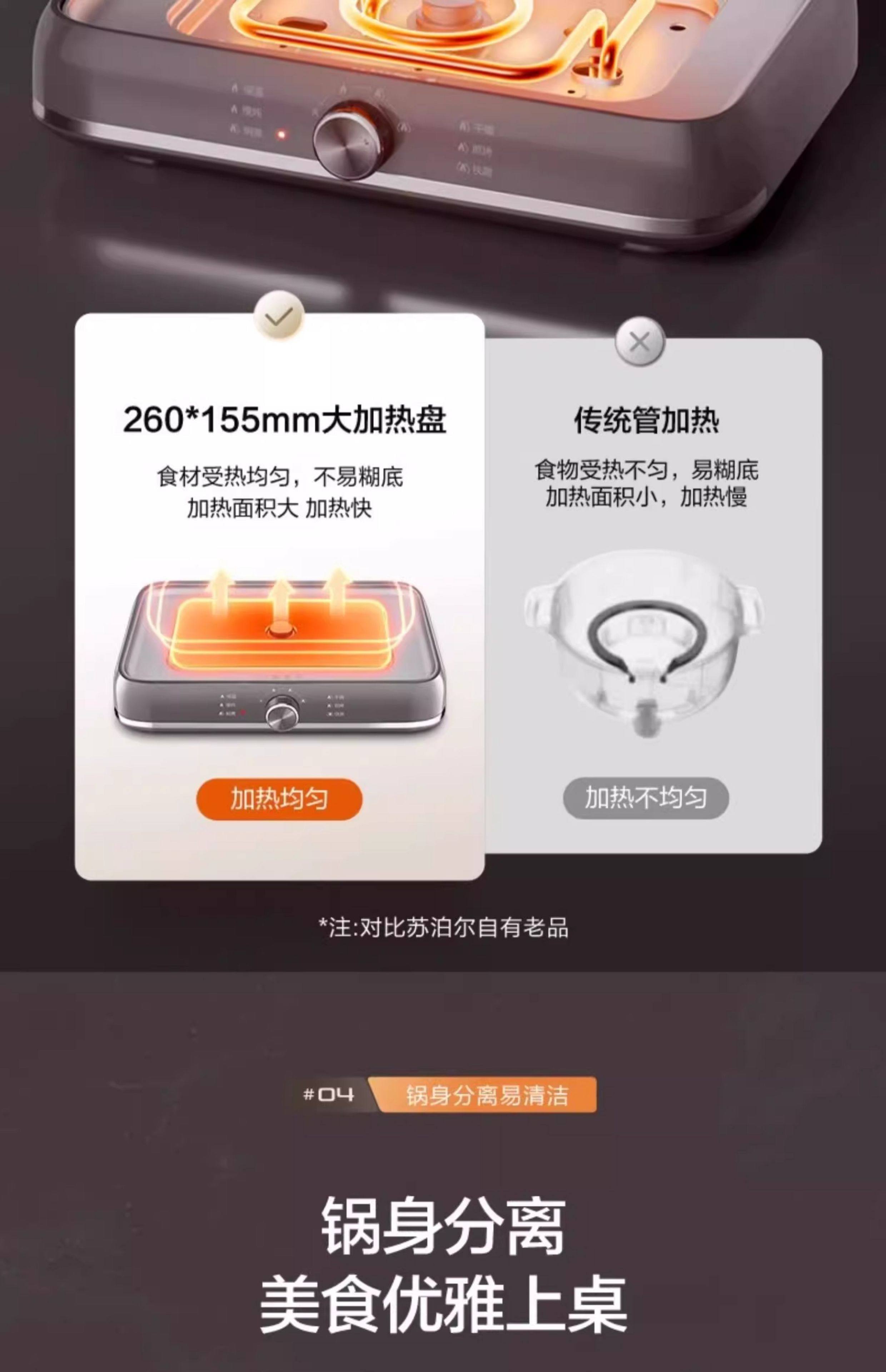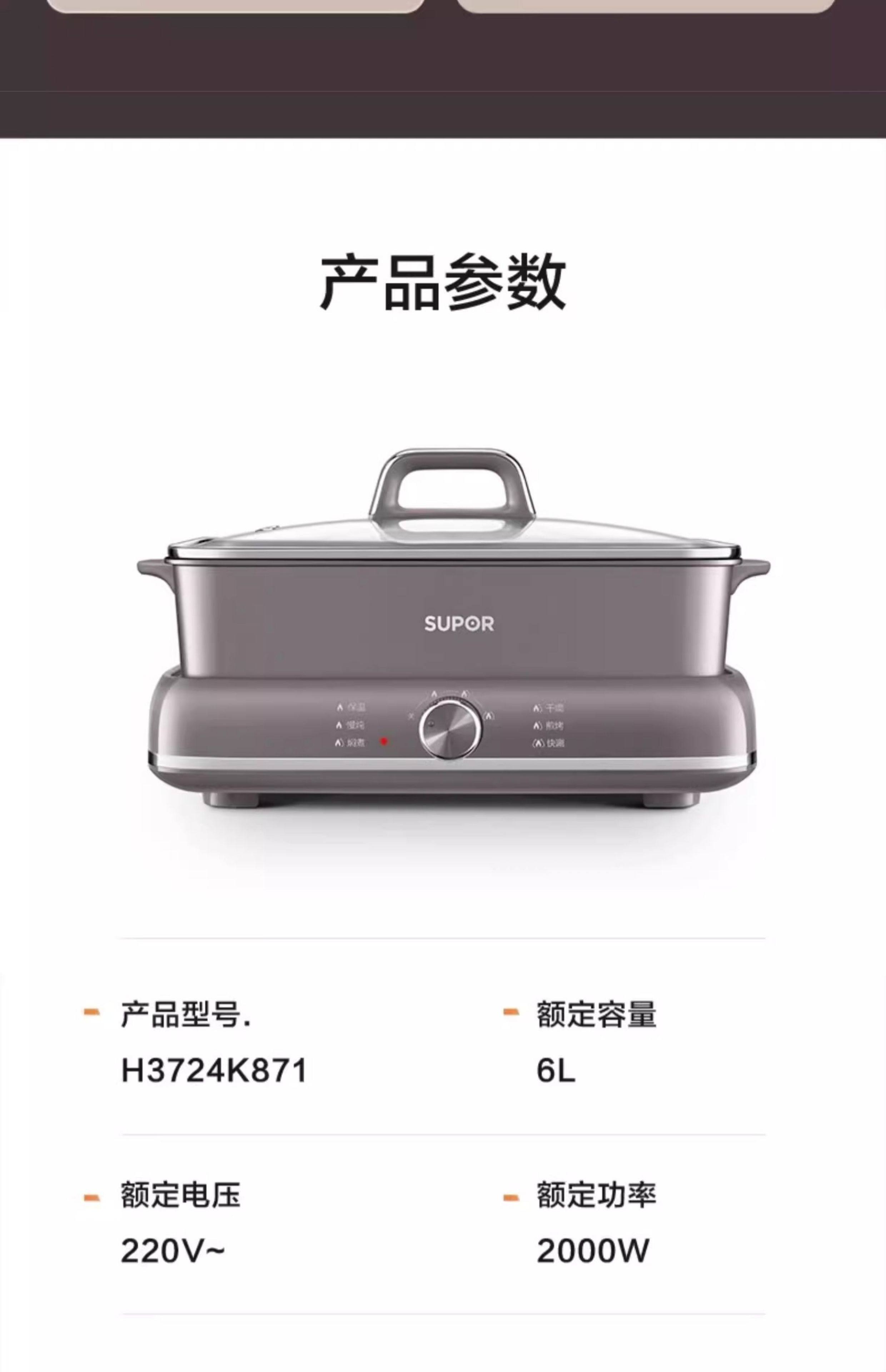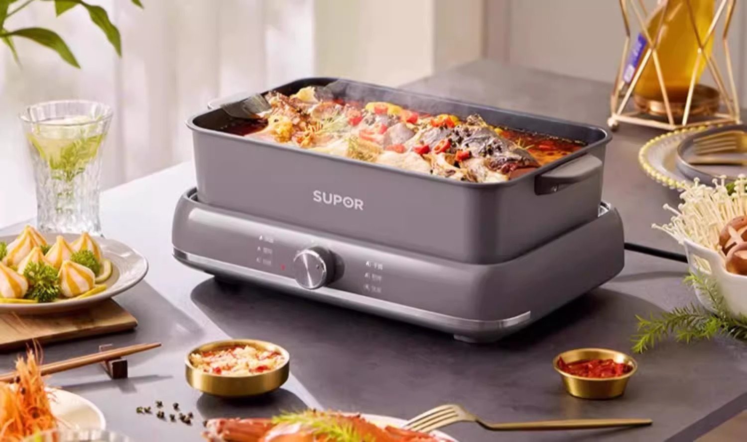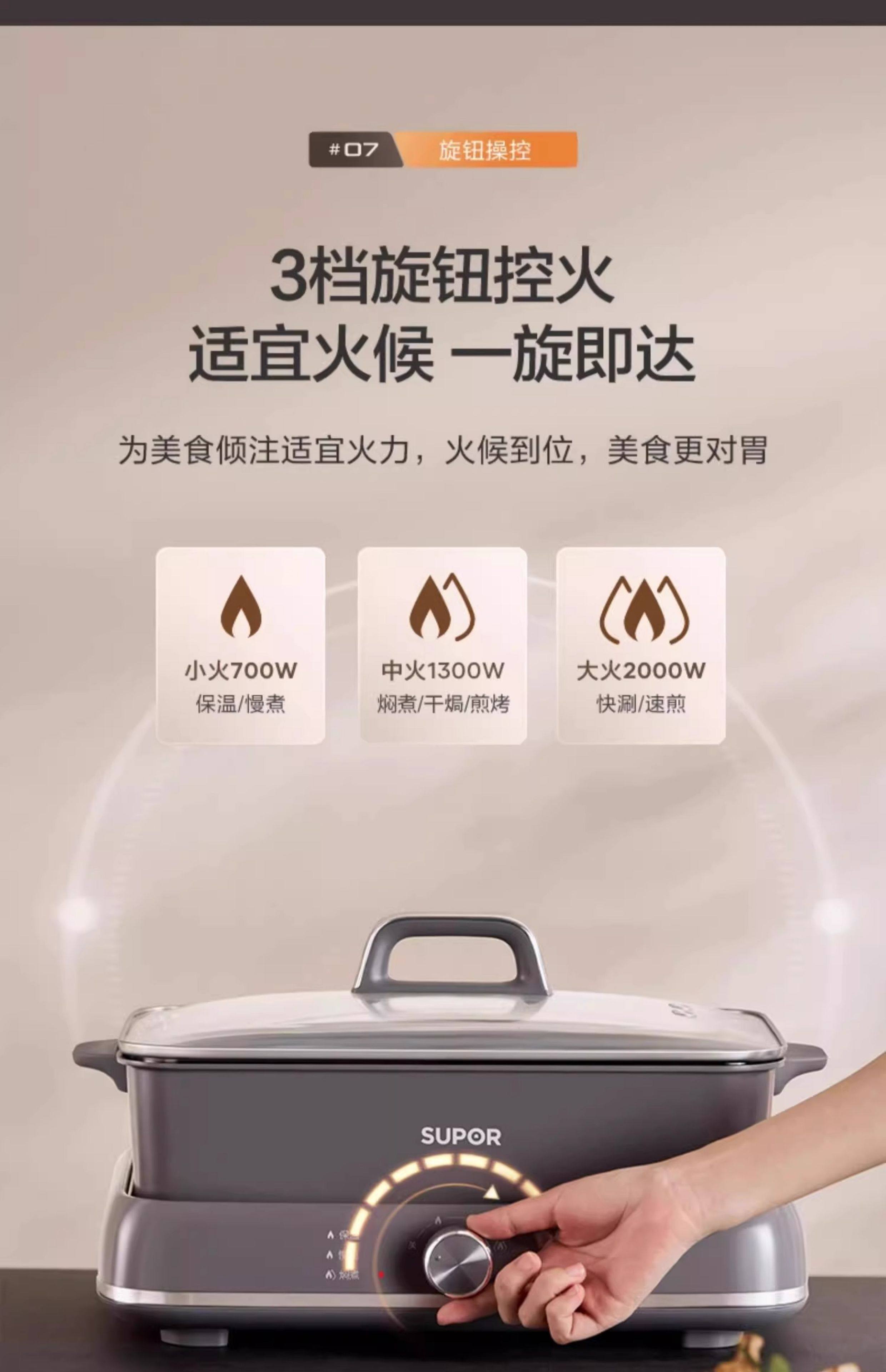 Supor electric hot pot household multi-functional cooking split type barbecue grilled fish special steaming, frying and stir-frying electric cooking pot
