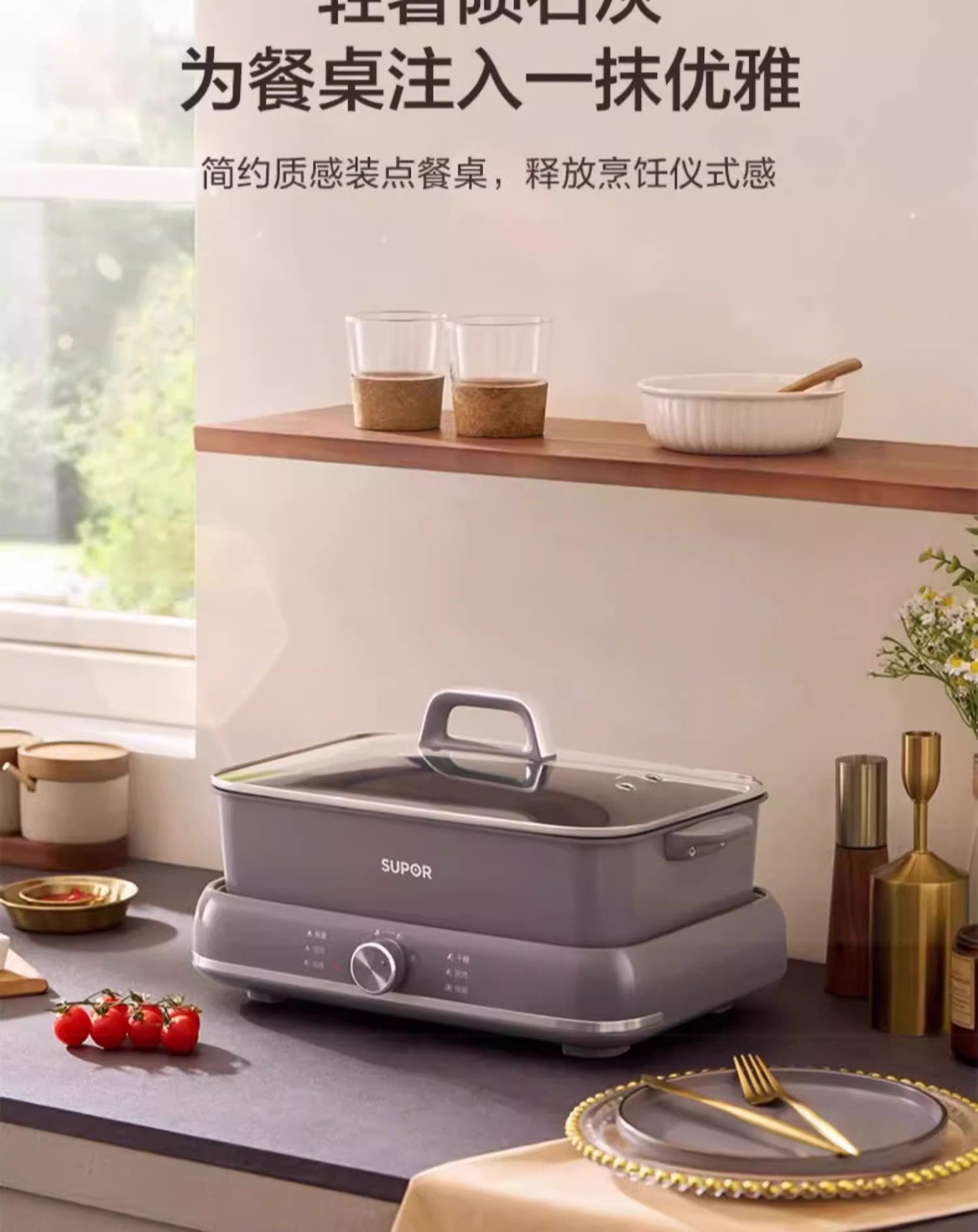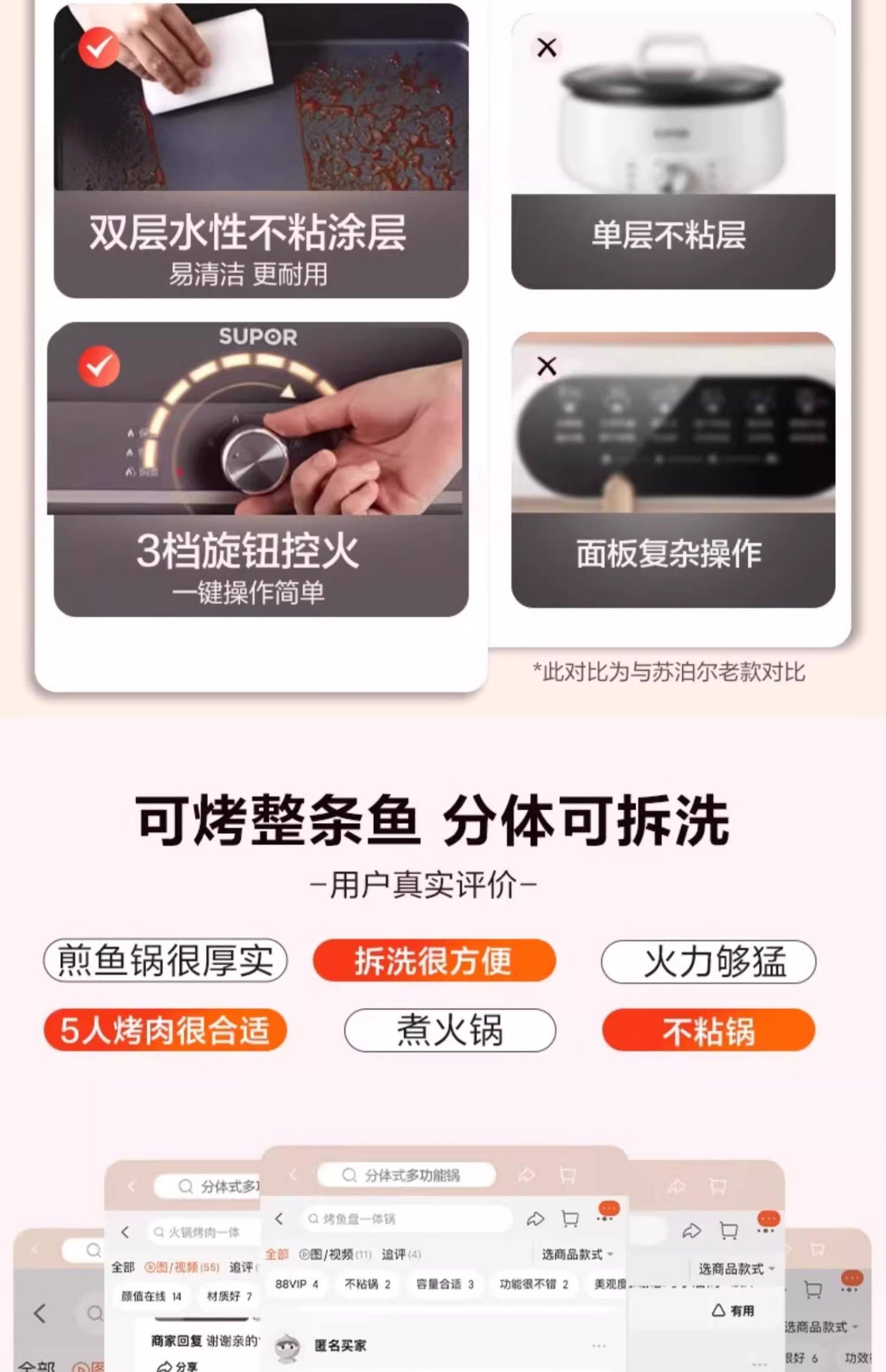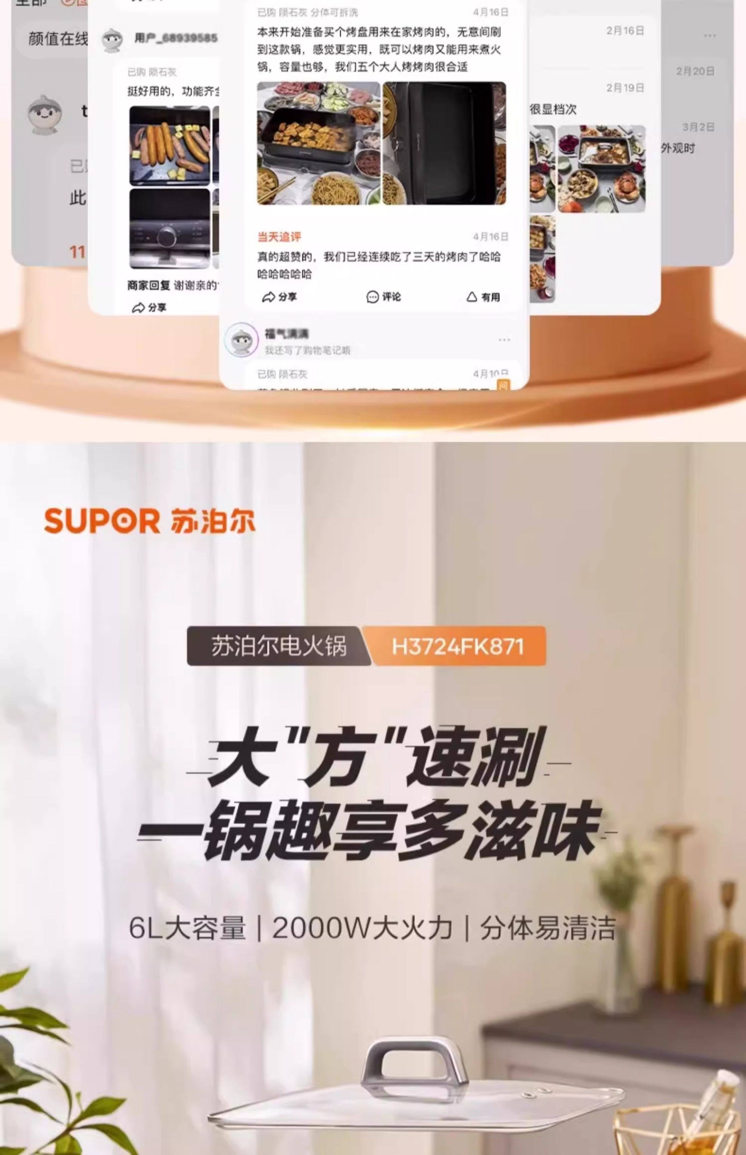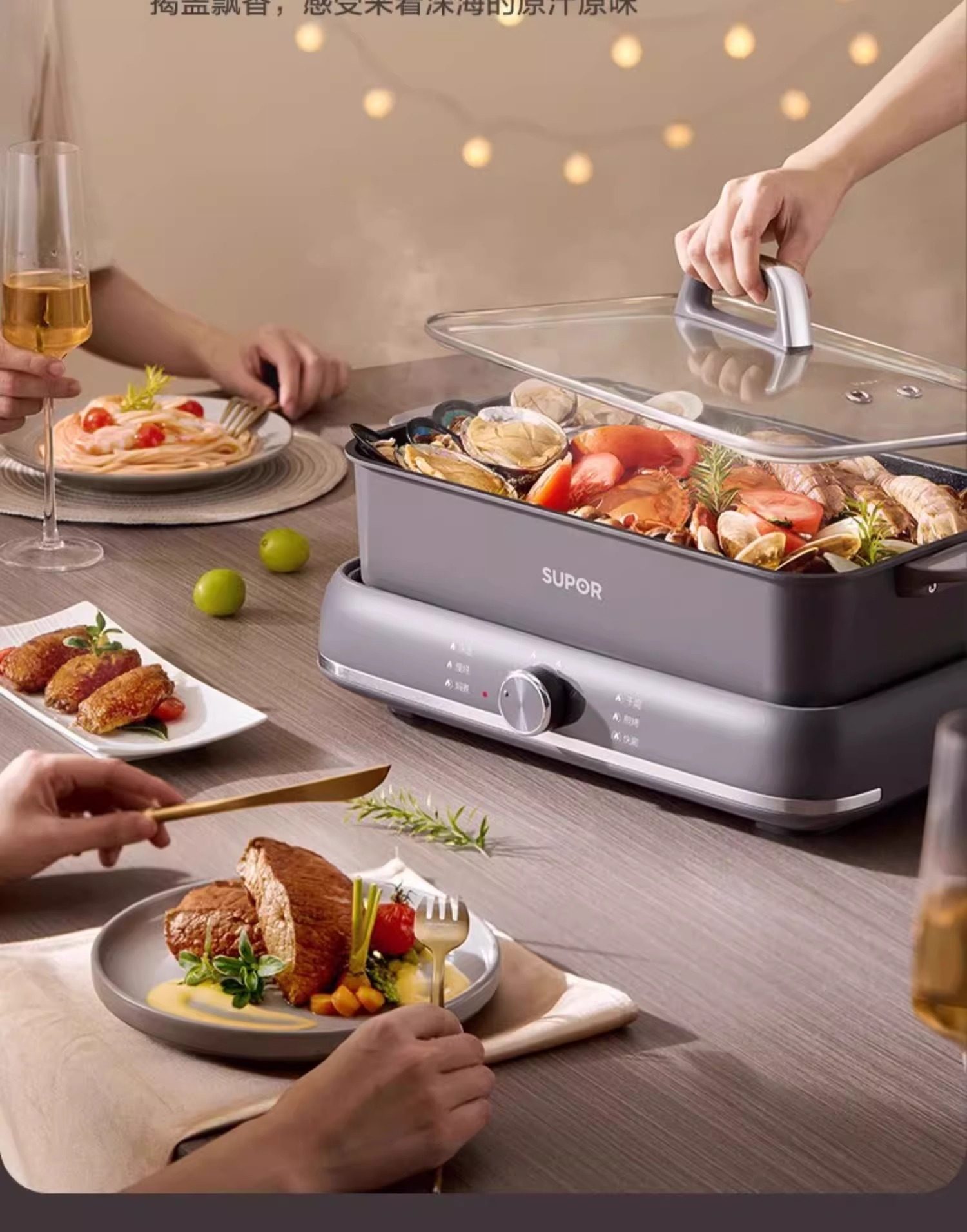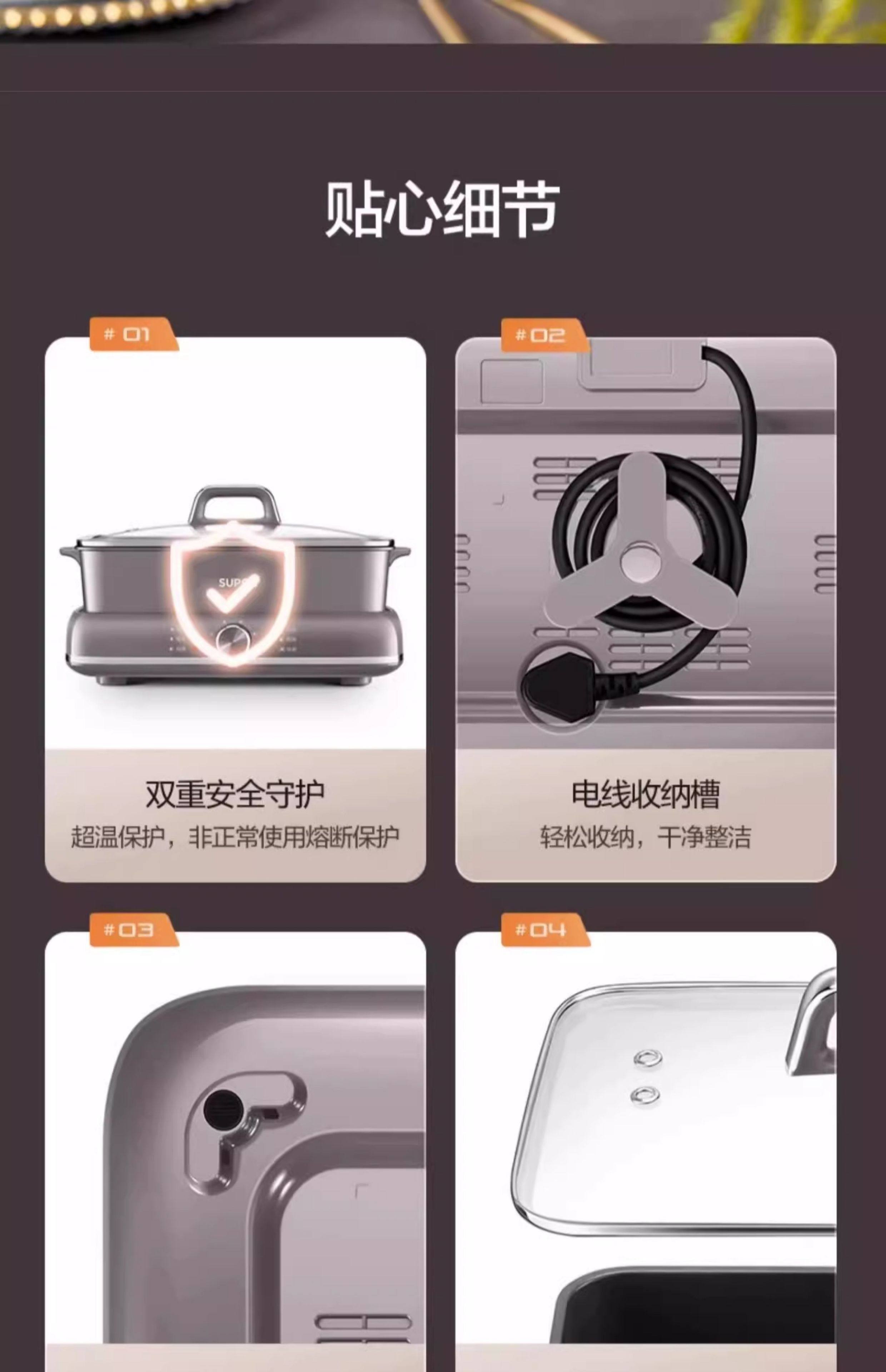 Supor electric hot pot household multi-functional cooking split type barbecue grilled fish special steaming, frying and stir-frying electric cooking pot