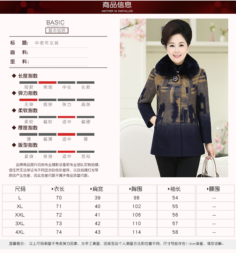 Middle-Aged and Elderly Women's Clothing Classification Woolen Coat