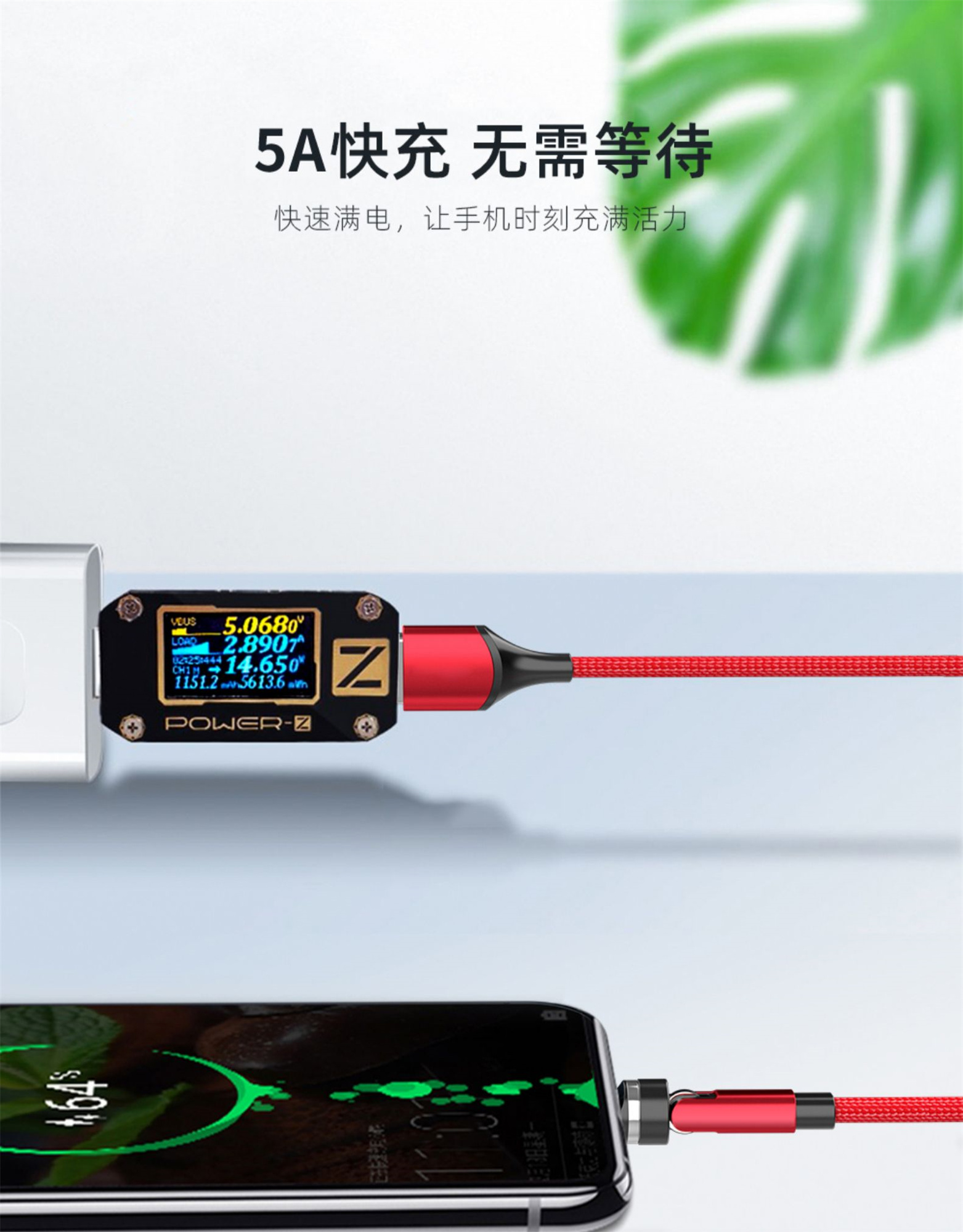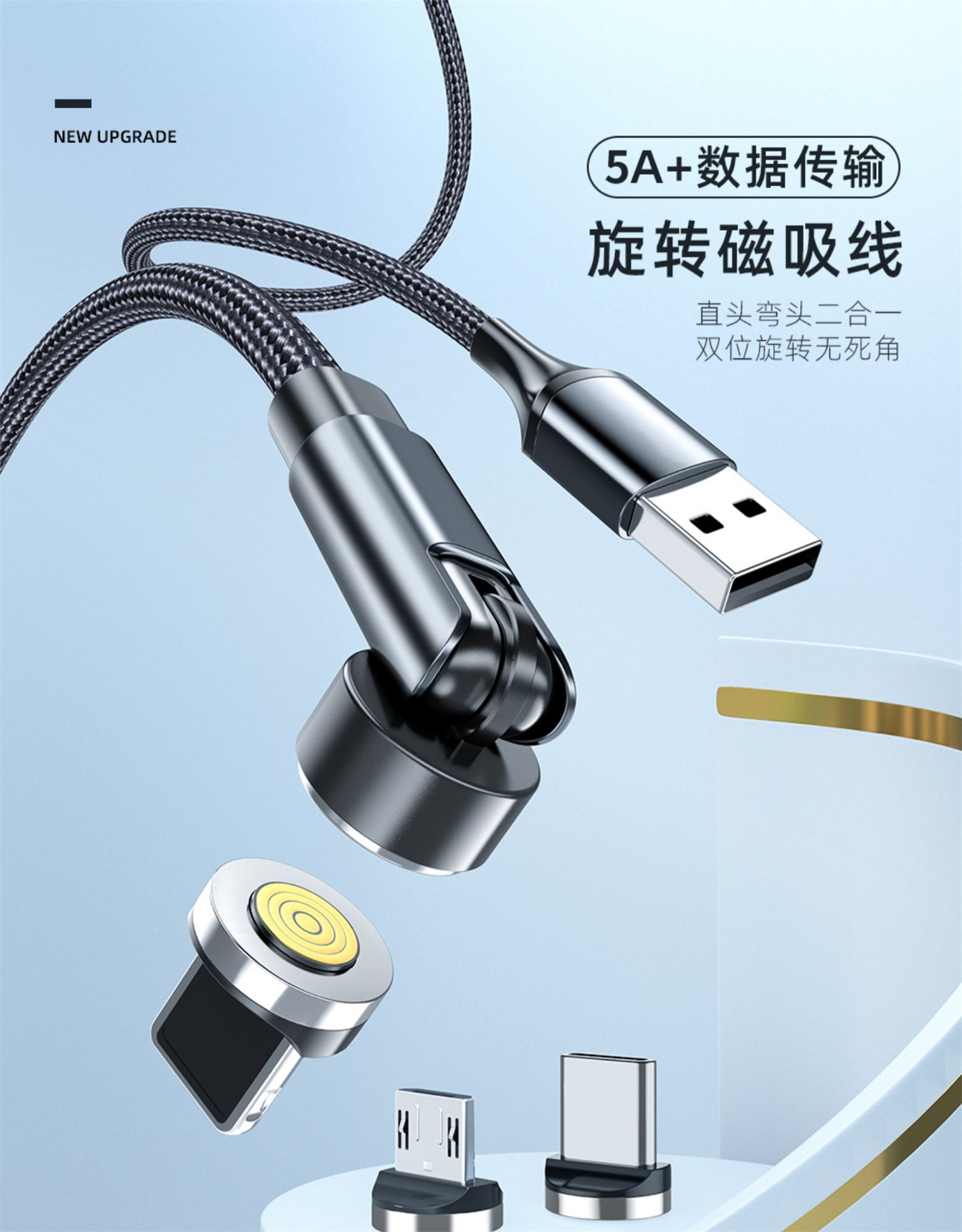 540-Degree Rotating Magnetic Data Cable 5A Super Fast Charging Three-In-One Suitable for Huawei, Xiaomi, Vivo, Apple, Android Flash Charging 6A Honor Type-C USB Charging Cable Universal for Mobile Phones and Car Use