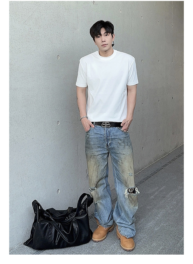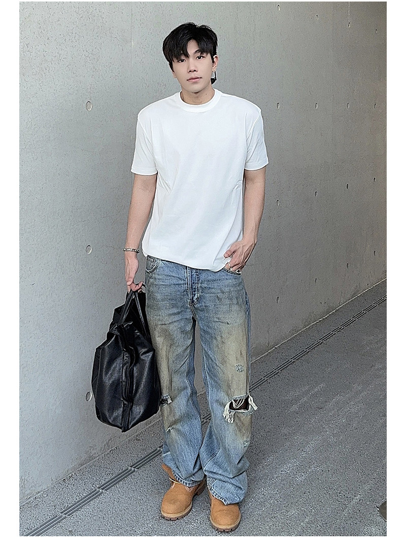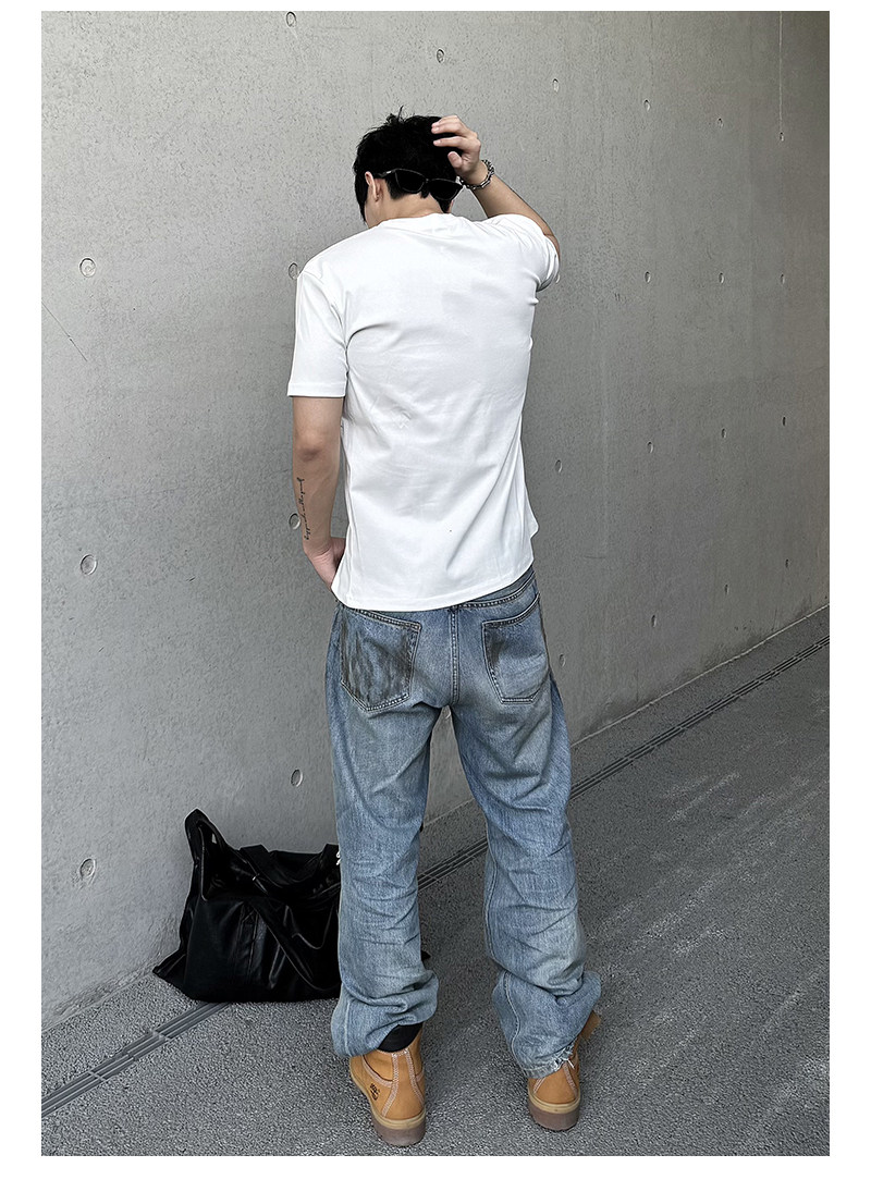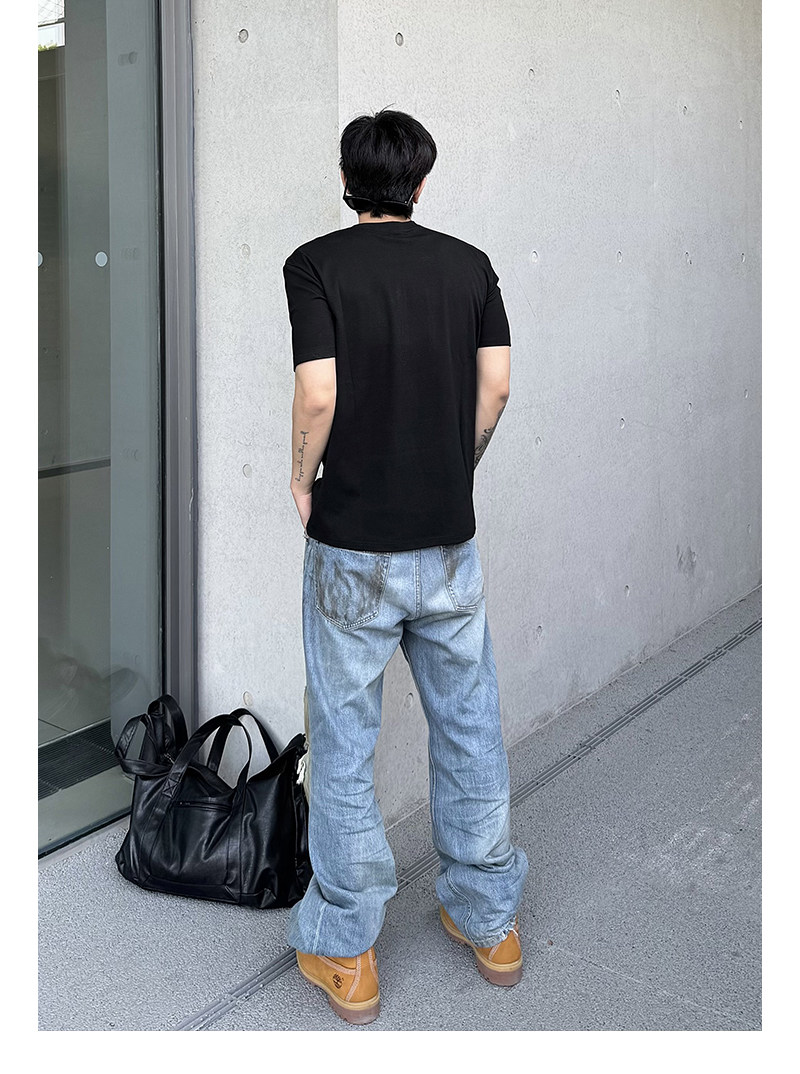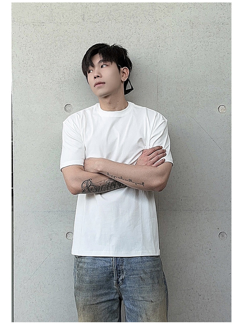 A Carton Jackson Wang's Same Style Short-Sleeve T-Shirt 300g Sorona Base Shirt Slim Fit Versatile Half-Sleeve Top for Men