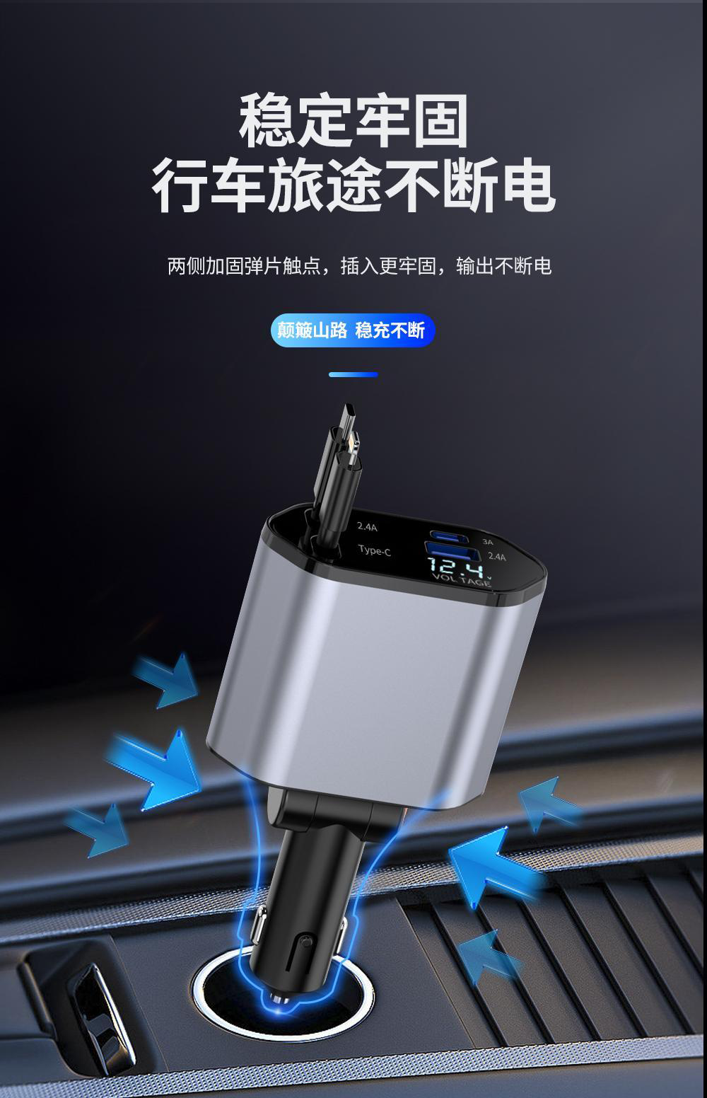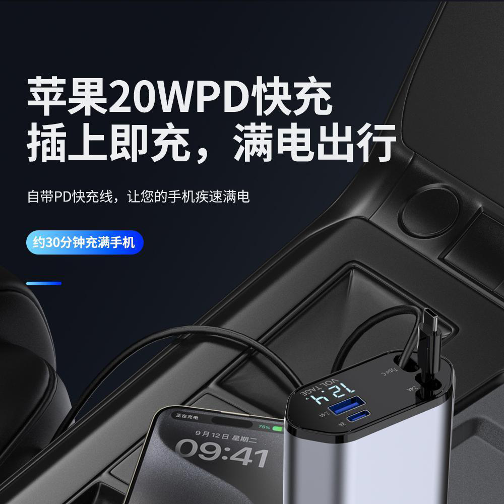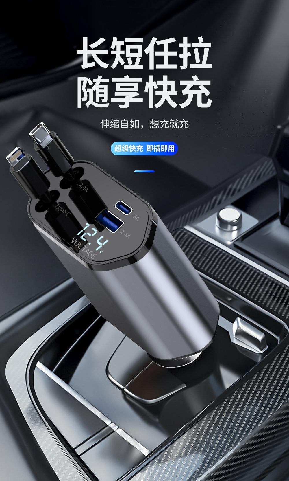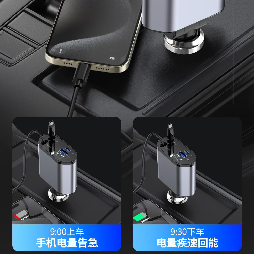 Color Classification 120W Four-In-One Car Charger★Comes with Apple + Type-C Retractable Cable with Four Holes