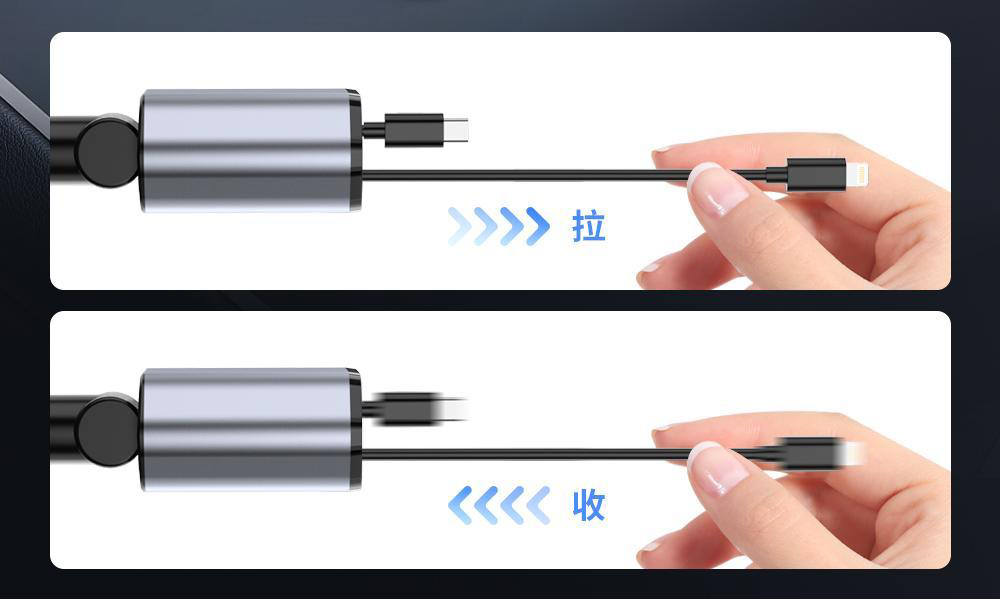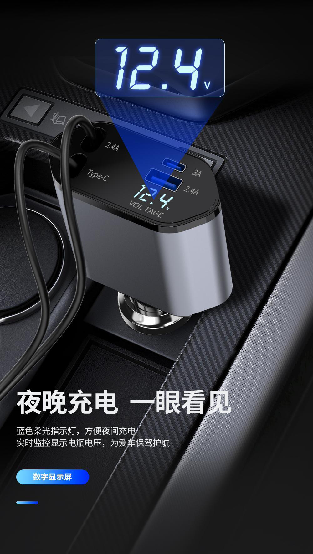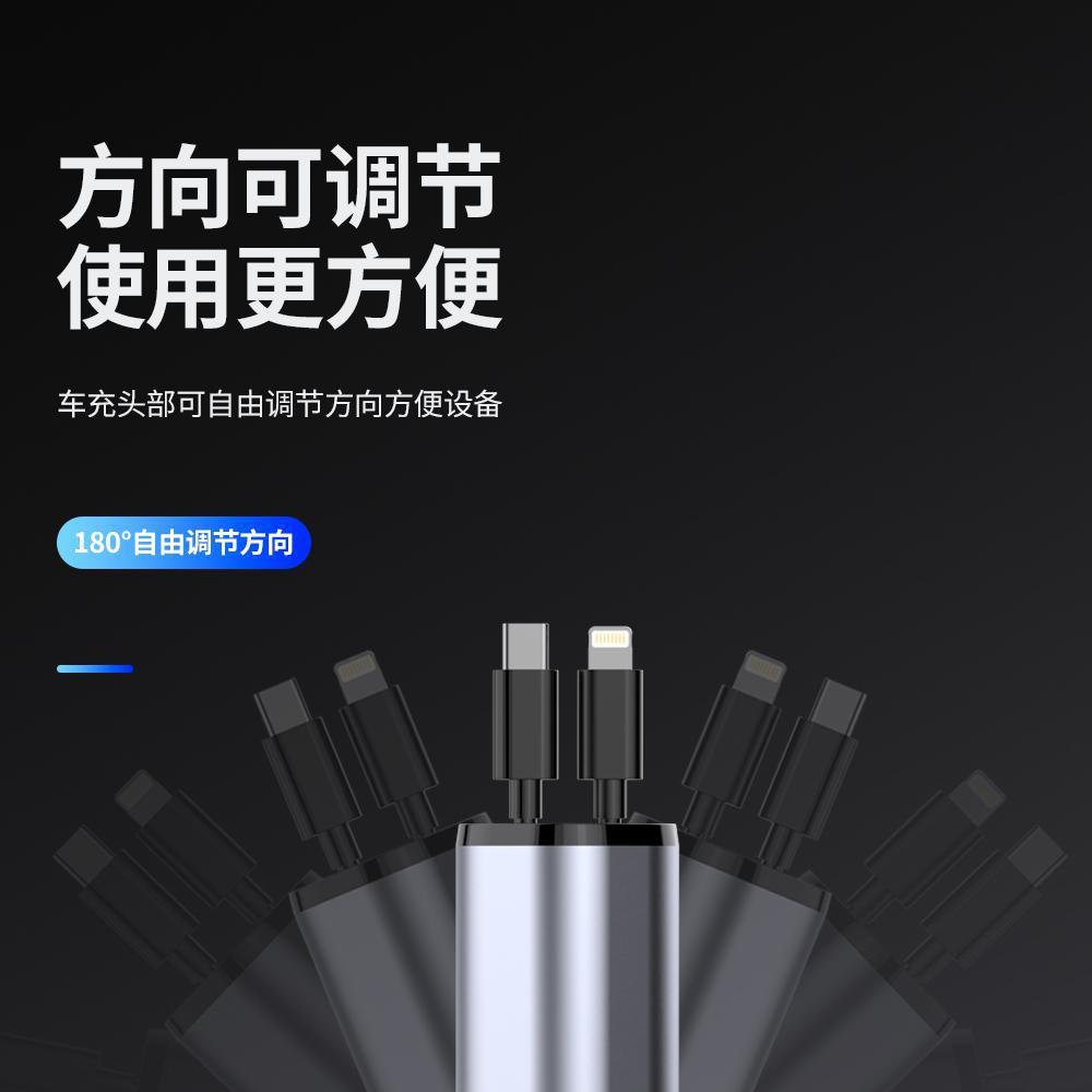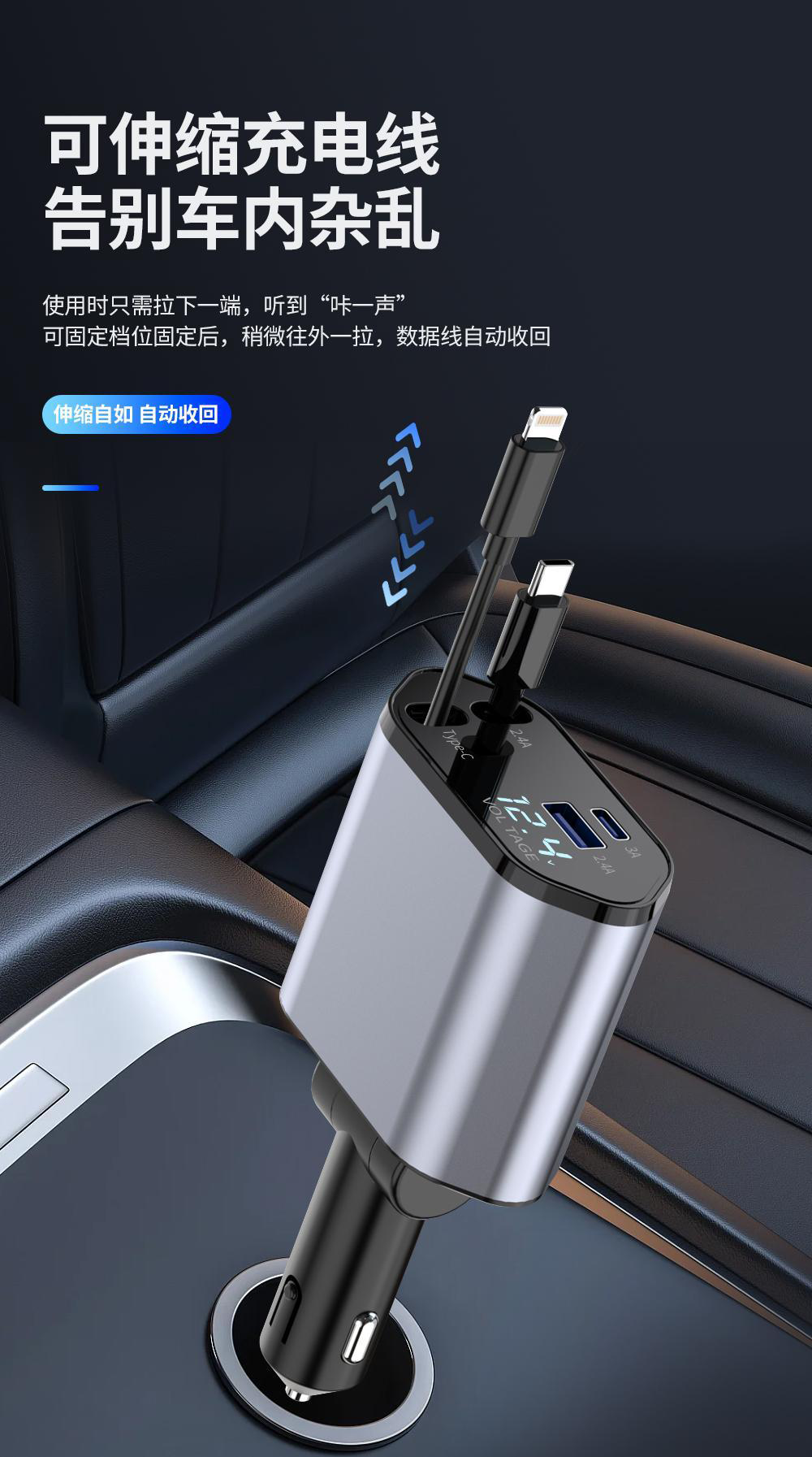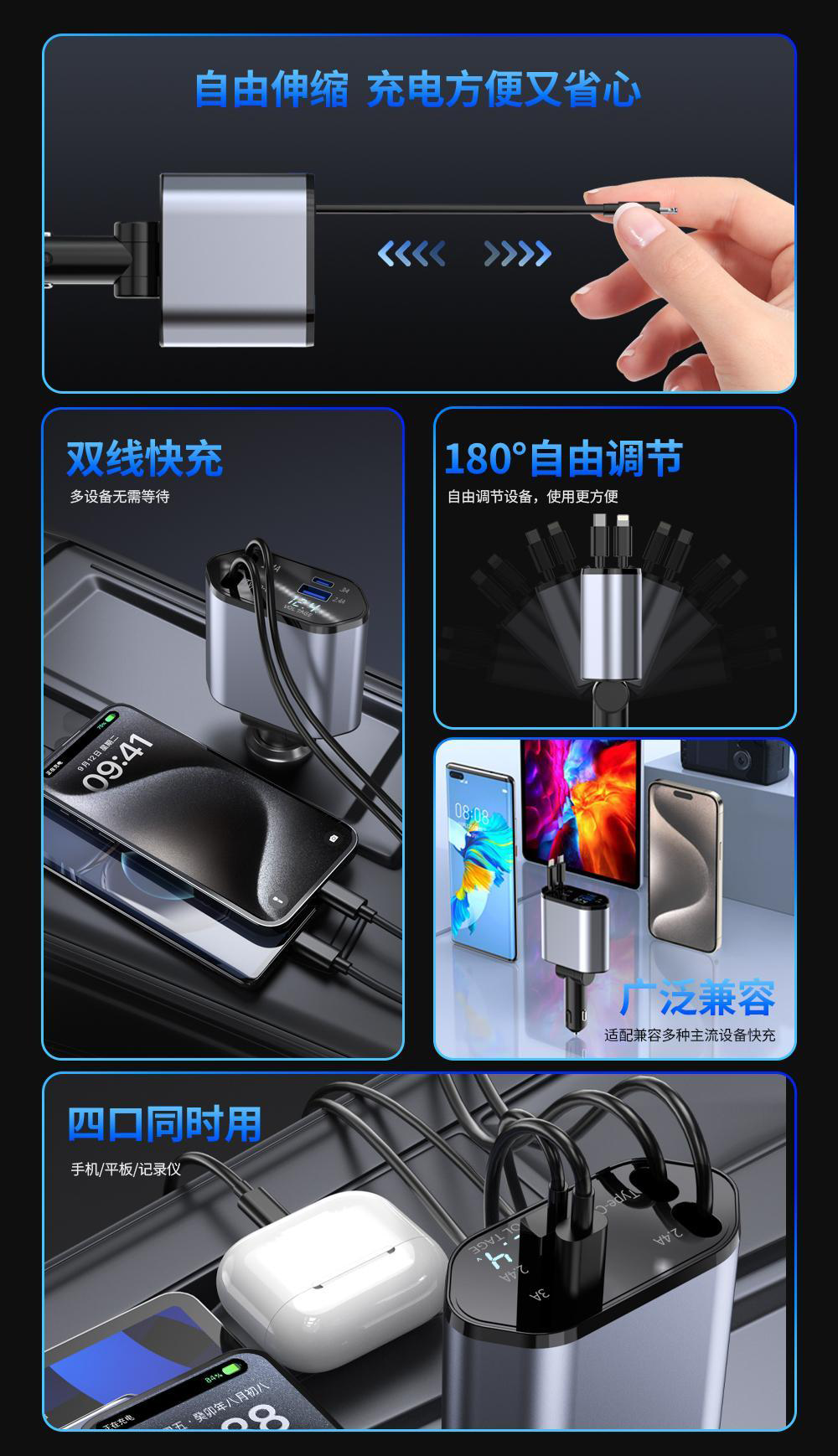Color Classification 120W Four-In-One Car Charger★Comes with Apple + Type-C Retractable Cable with Four Holes
