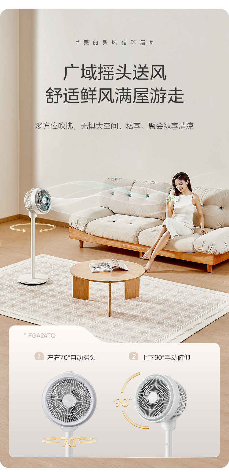 Midea Electric Fan Air Circulator Home Stand Fan Oscillating Fan Max Airflow Rate Floor Fan Fga24tq