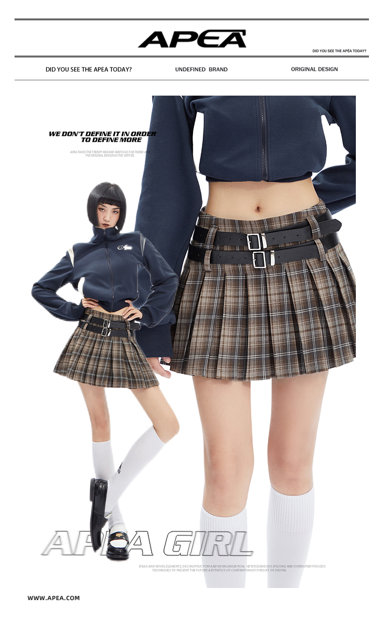 Apea American Retro Preppy Style Pleated Skirt for Women in Autumn and Winter, Sexy Design, Brown Skirt, Jk Plaid Skirt
