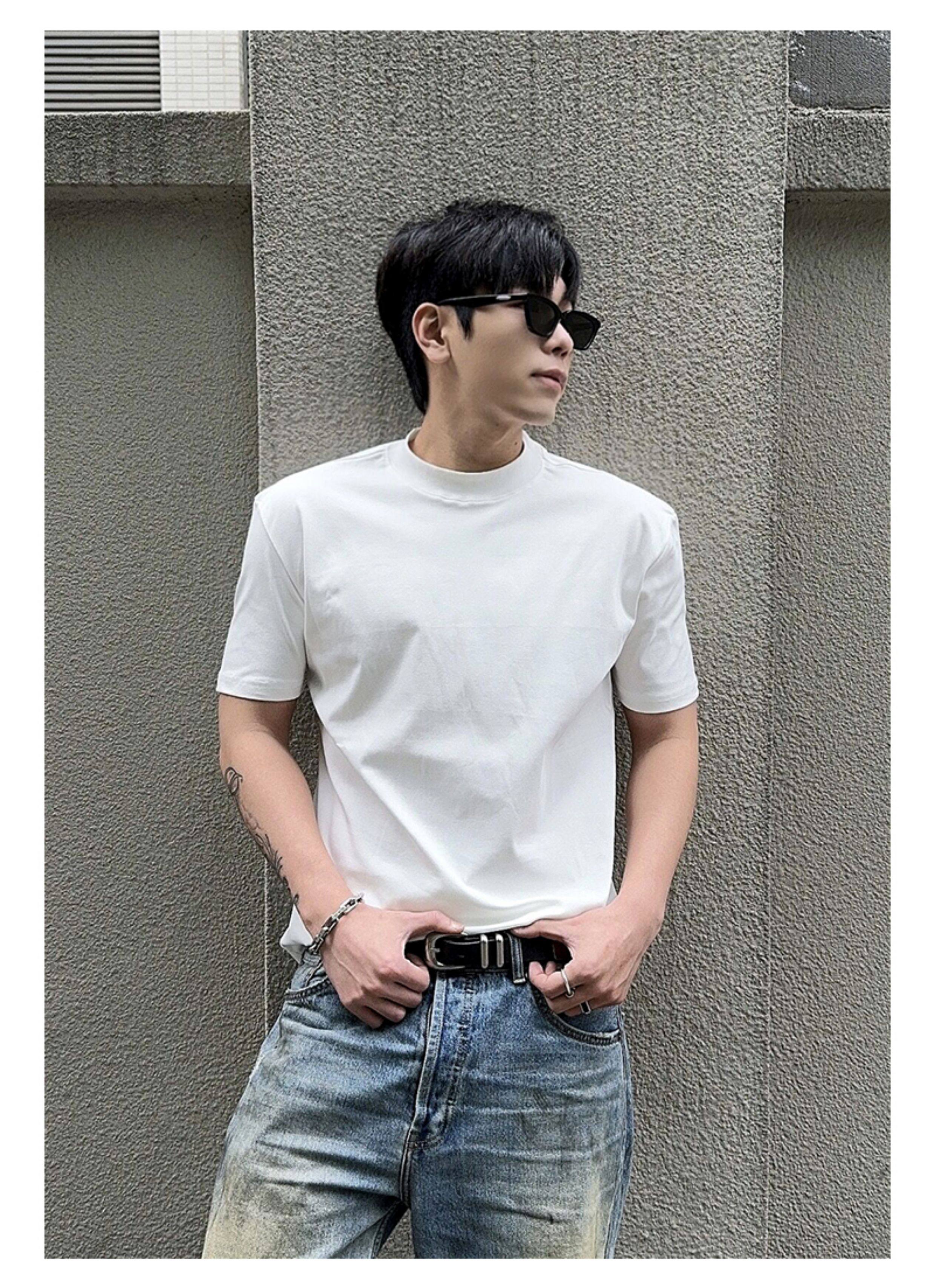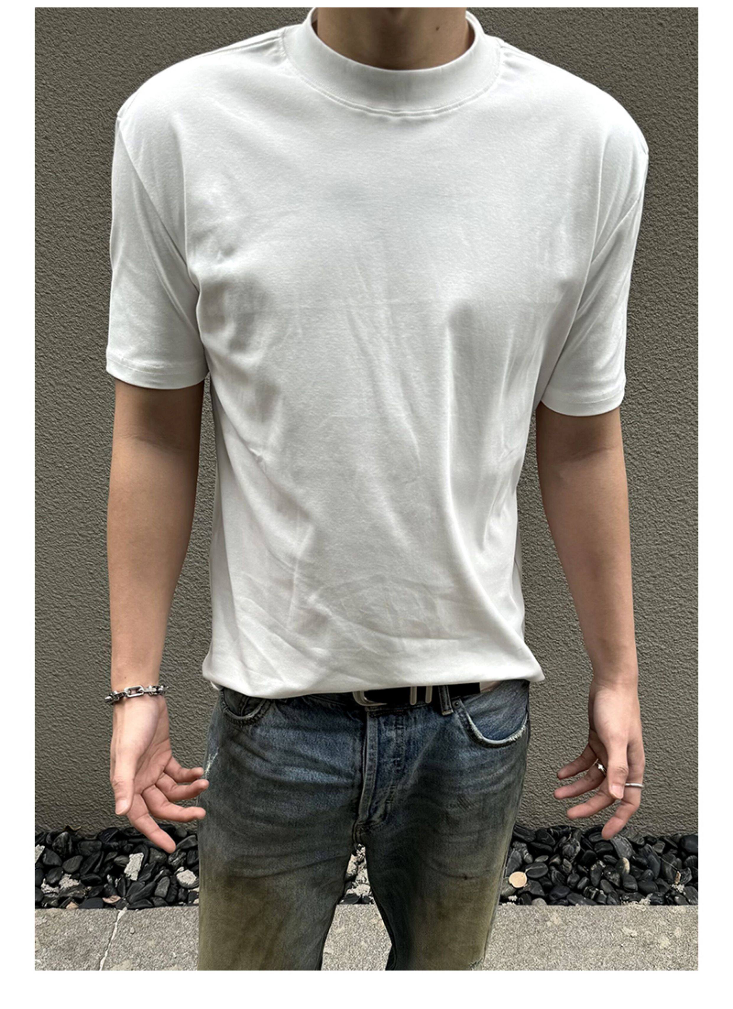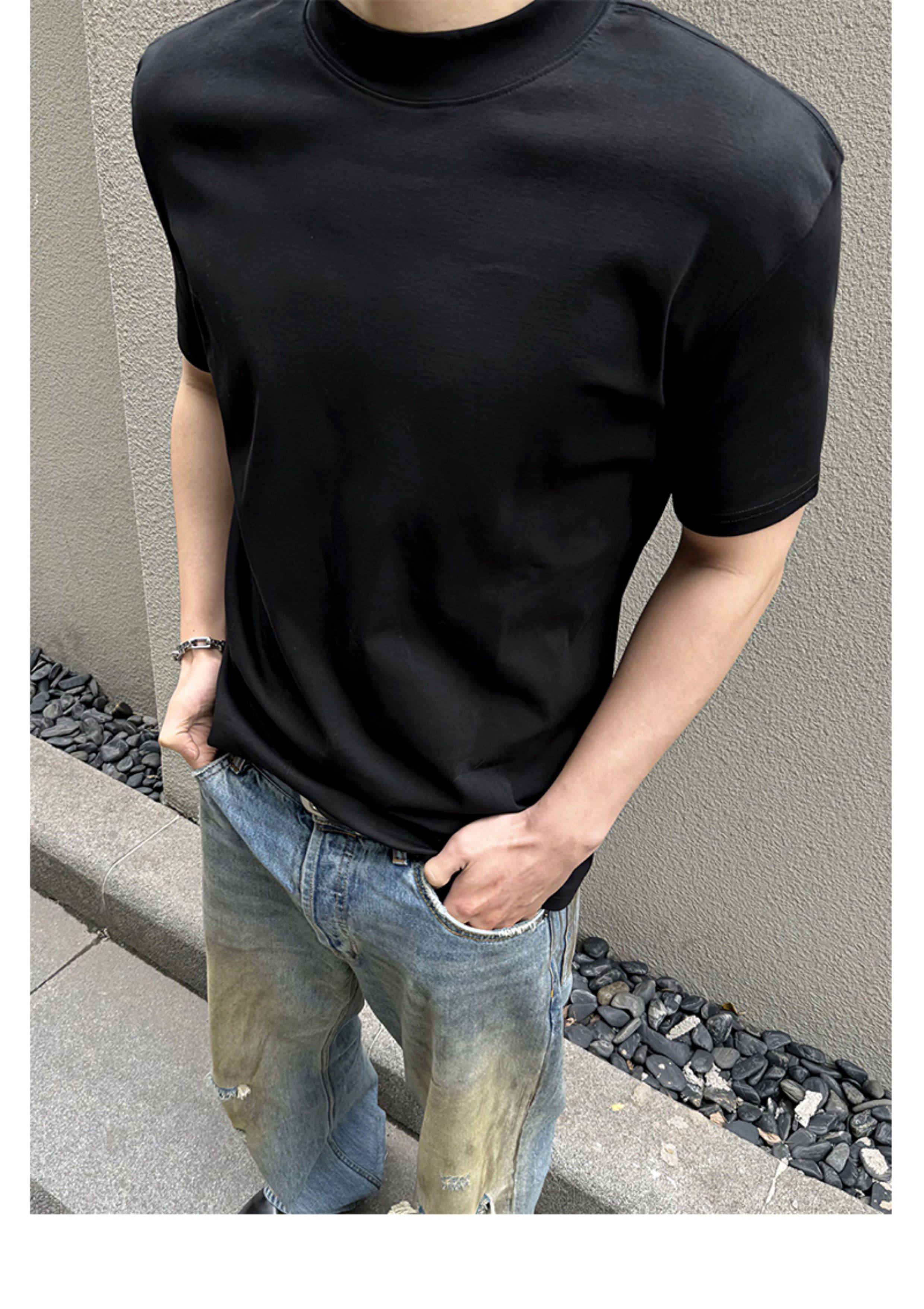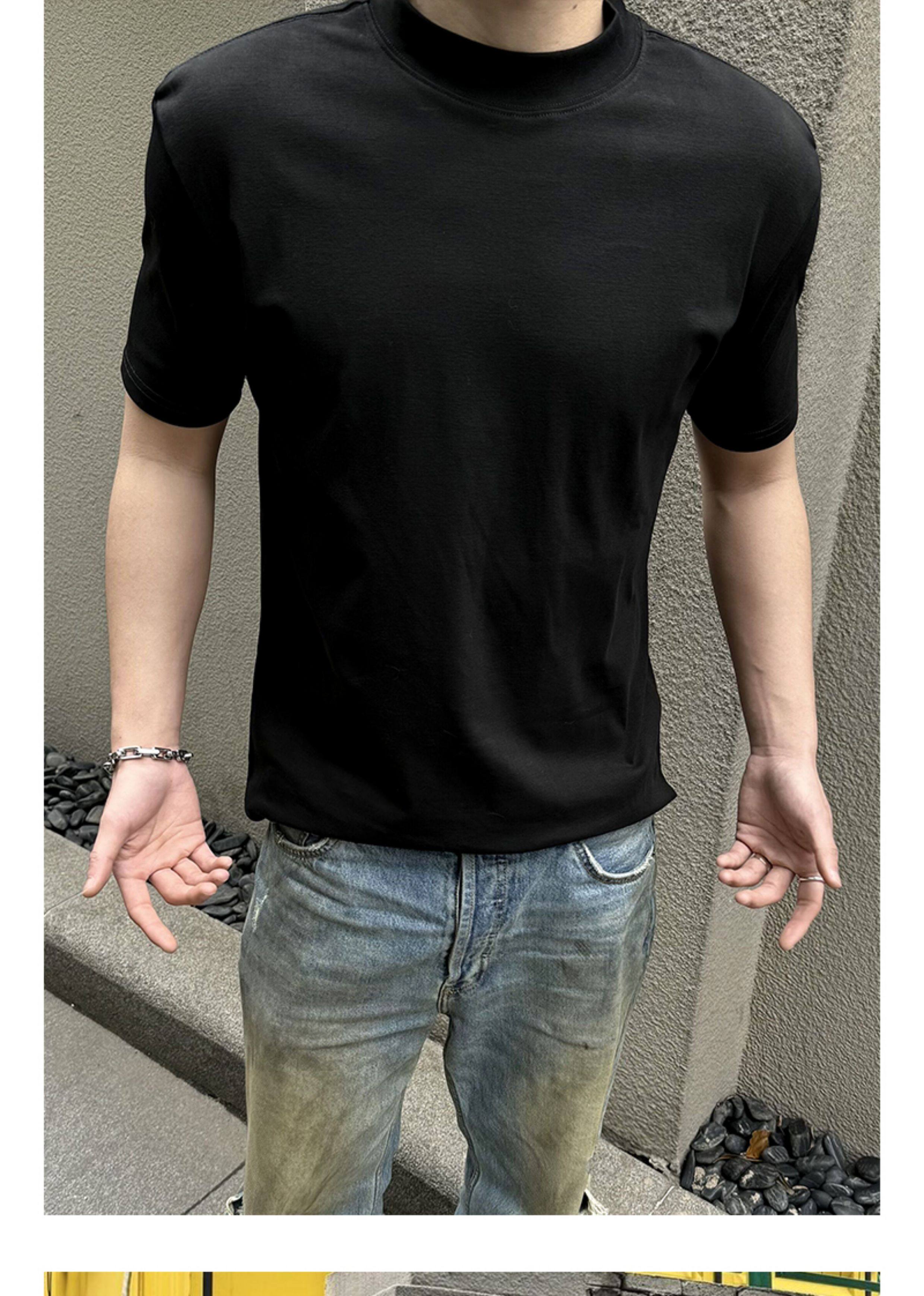Acarton Solona Anti-Wrinkle High-Weight T-Shirt for Men, Slim Fit, Cleanfit, Round Neck, Solid Color, Regular Shoulder, Short Sleeves