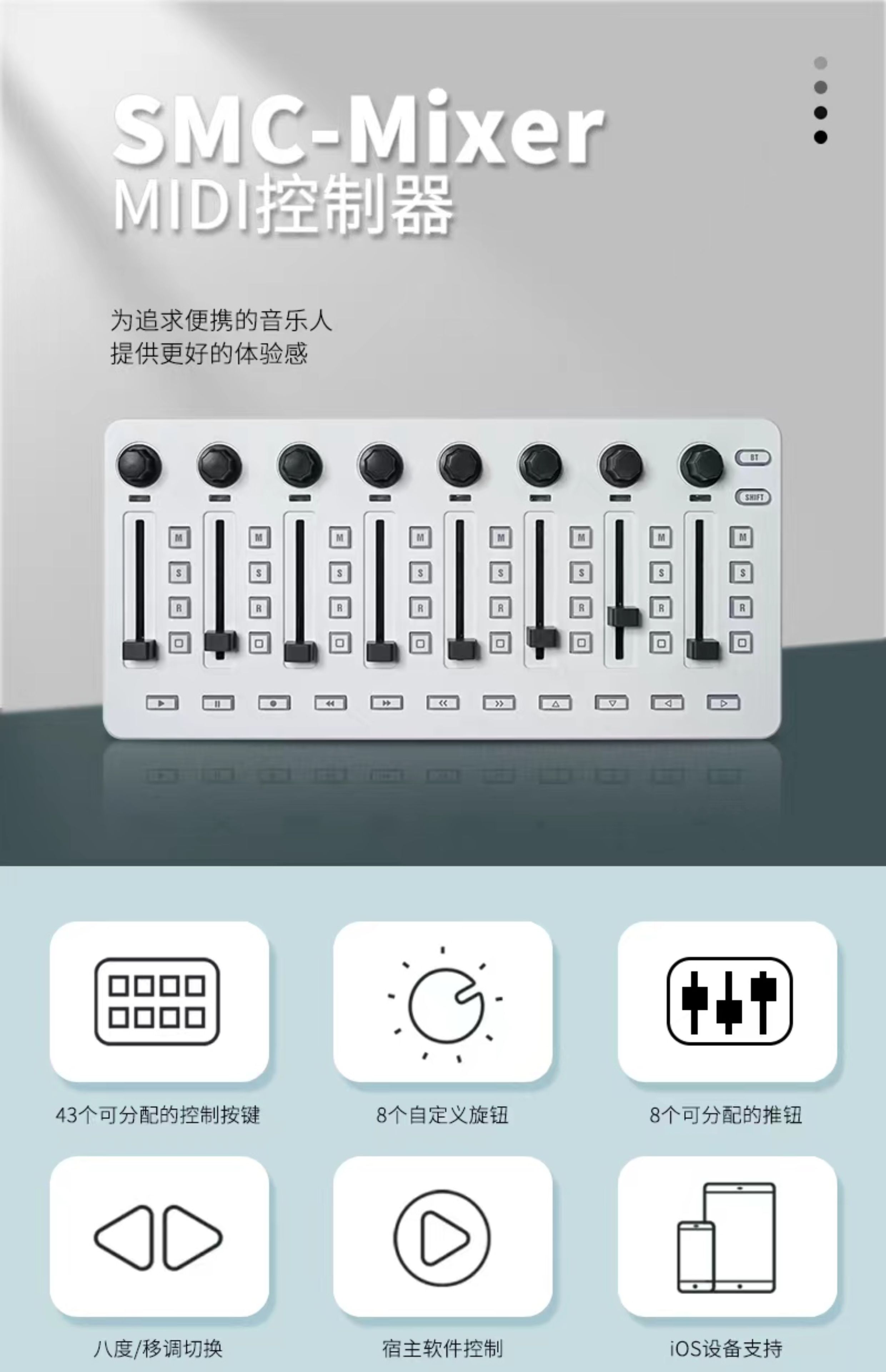 M-VAVE Bluetooth MIDI mixer mixing portable music arrangement MIDI controller fader SMC-Mixer