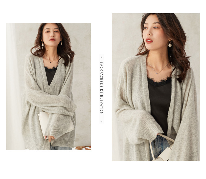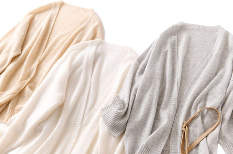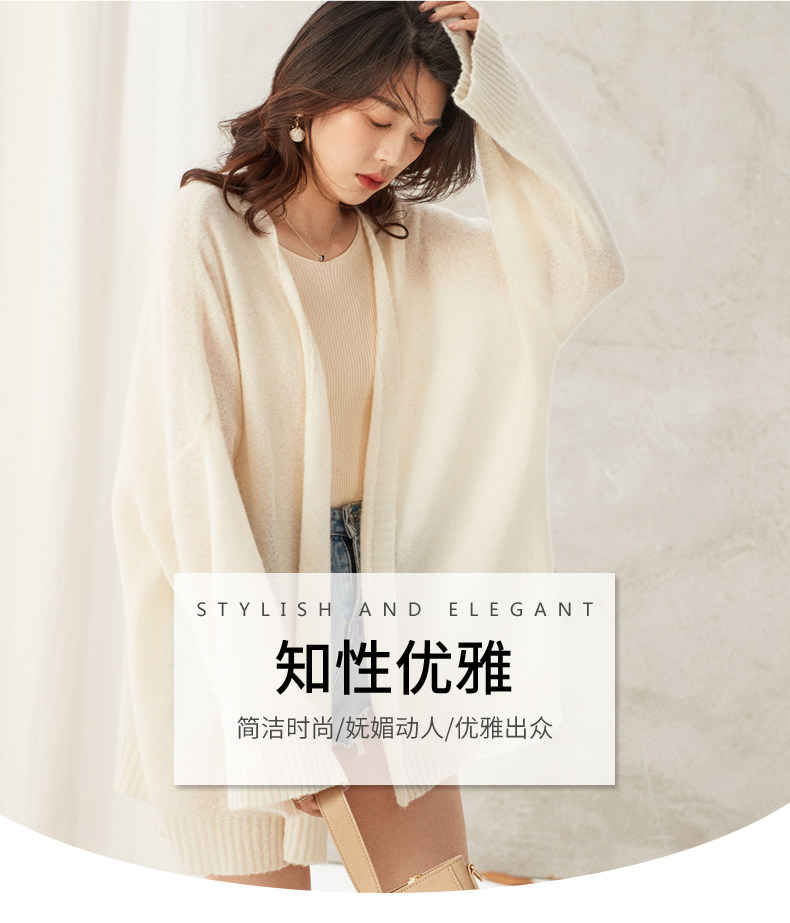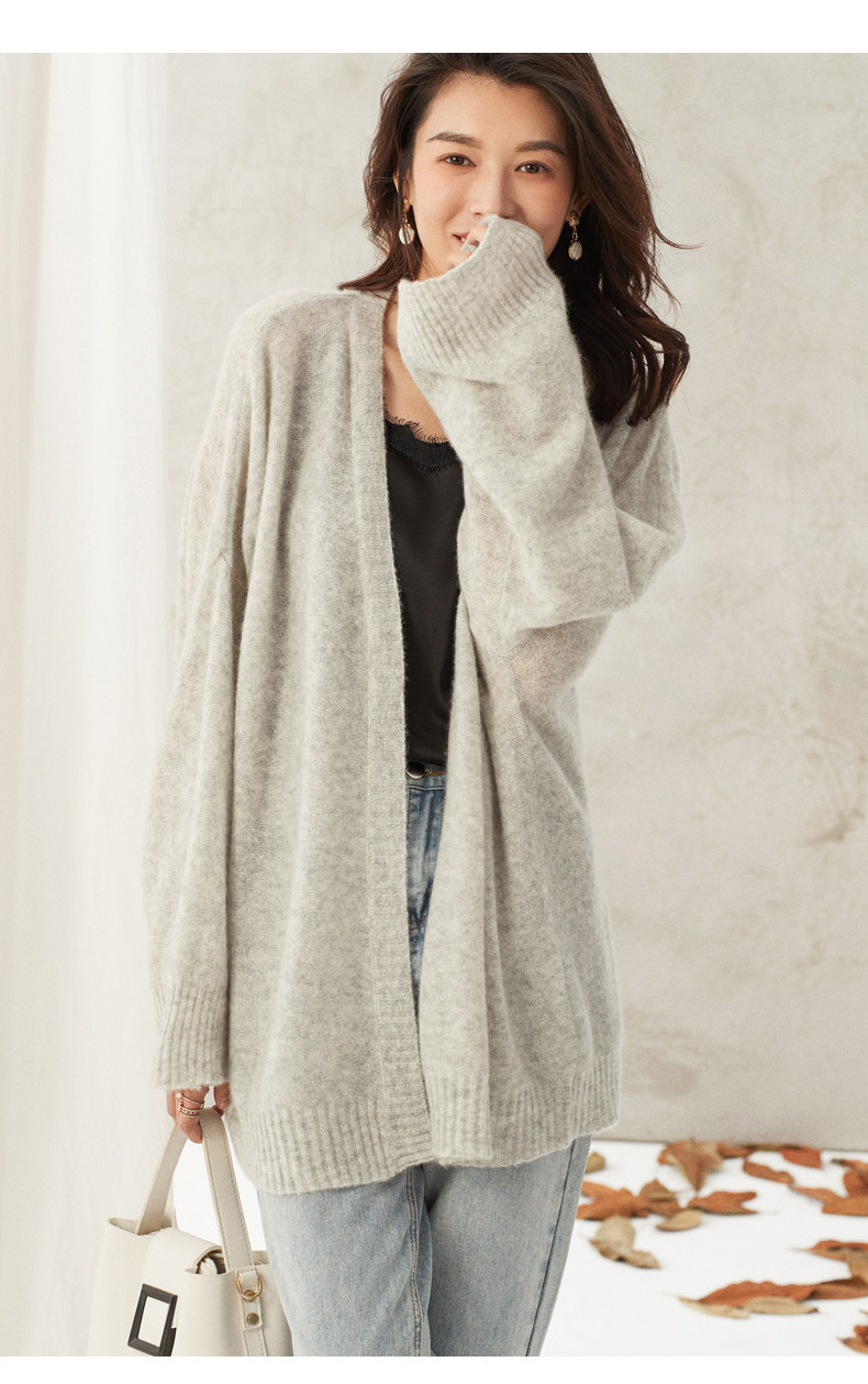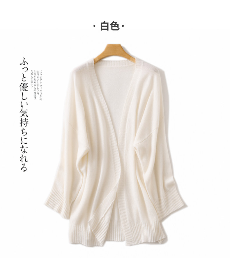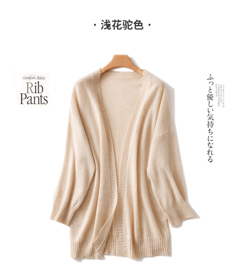 Shengyan 100% Pure Cashmere Thin Cardigan Mid-Length V-Neck Loose Knit Sweater Shawl Coat