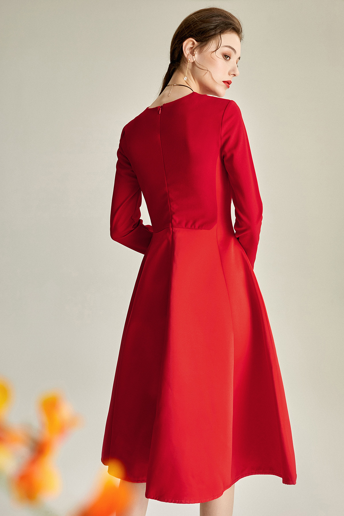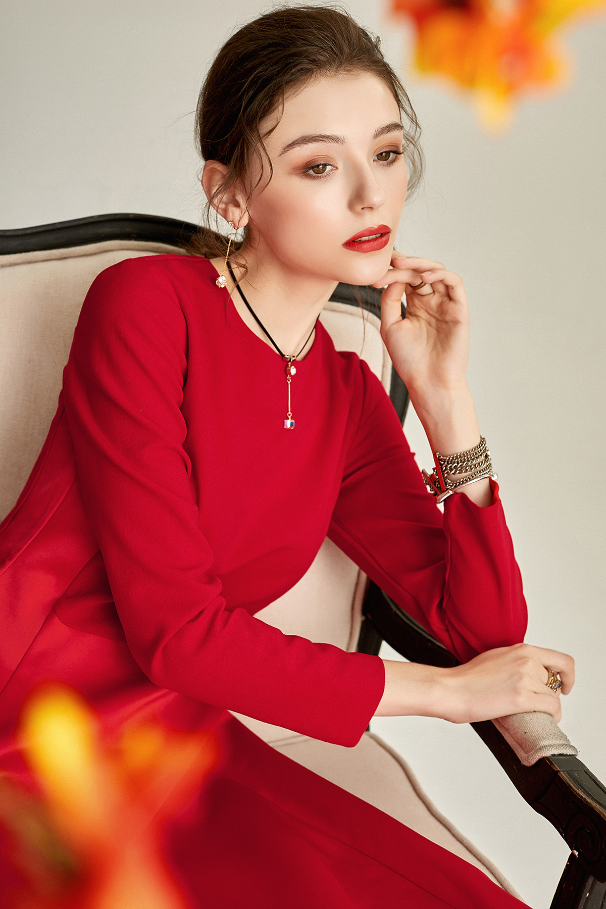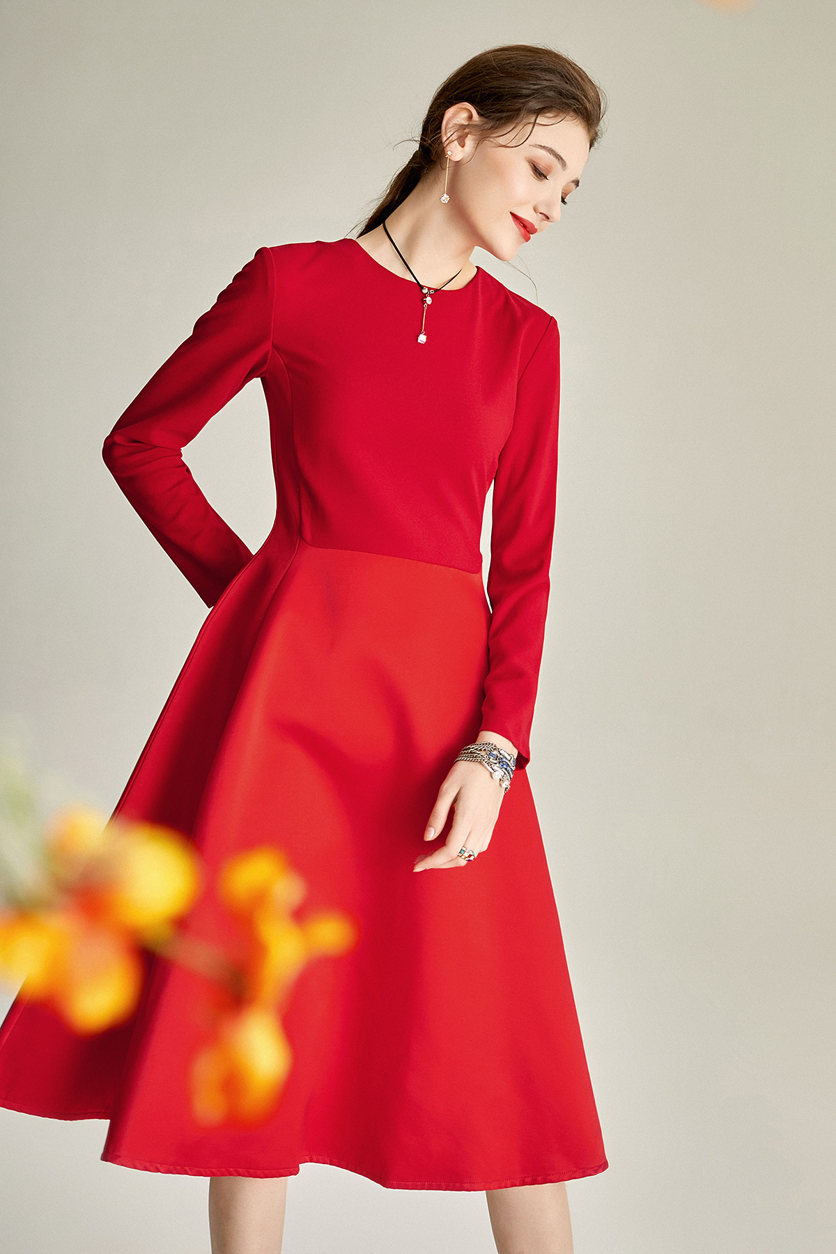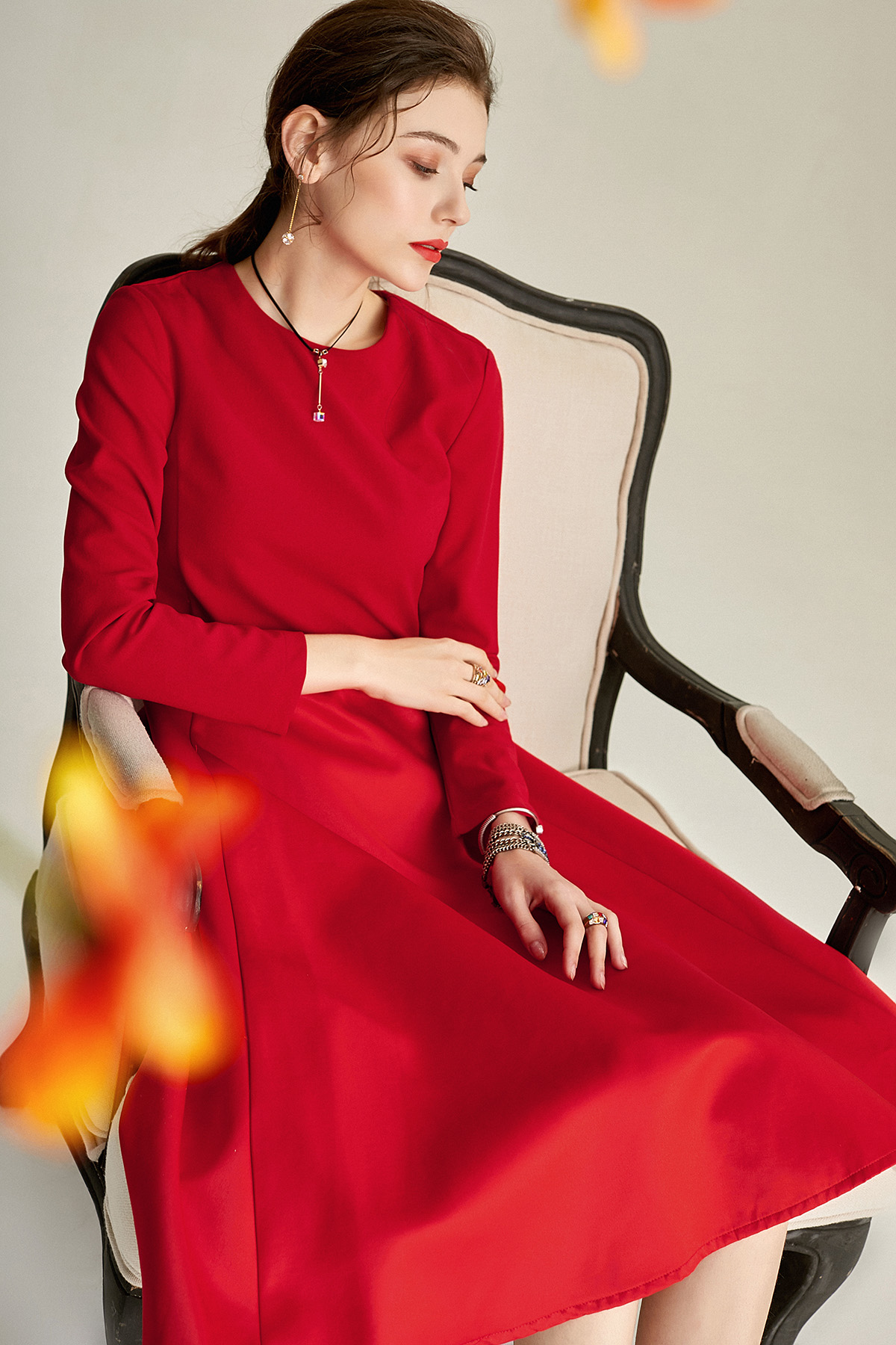 Yinuoshiguang Hepburn High-Waisted Retro Dress, Autumn Satin Slimming Annual Meeting Fairy-Like Elegant Dress 097