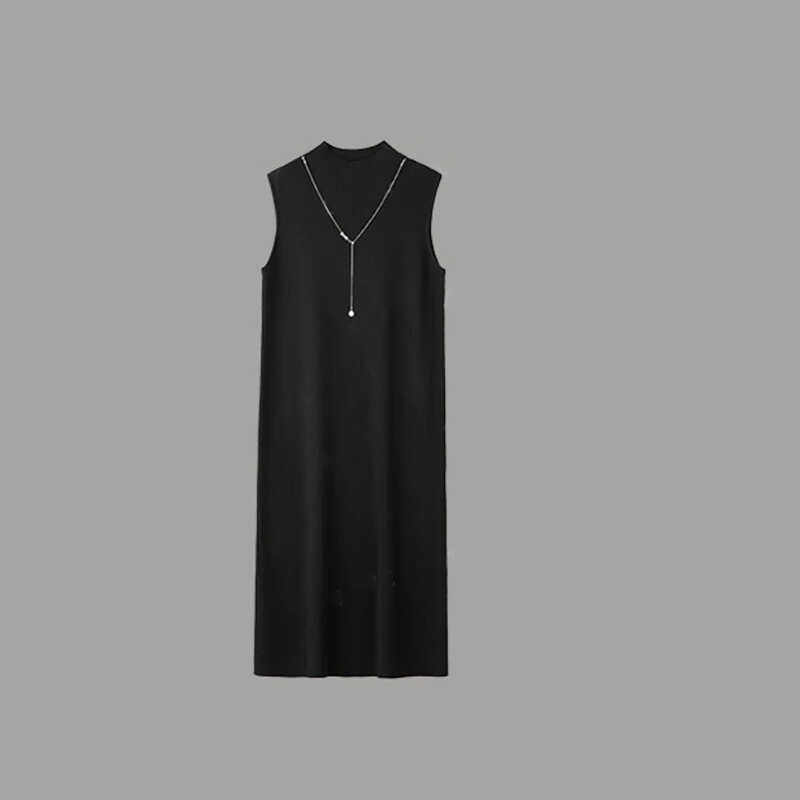 Ziyu Skirt Dahong Flagship Store Chain Half-High Collar Sleeveless Knitted Skirt Solid Color Long Tank Dress Base Layer Dress