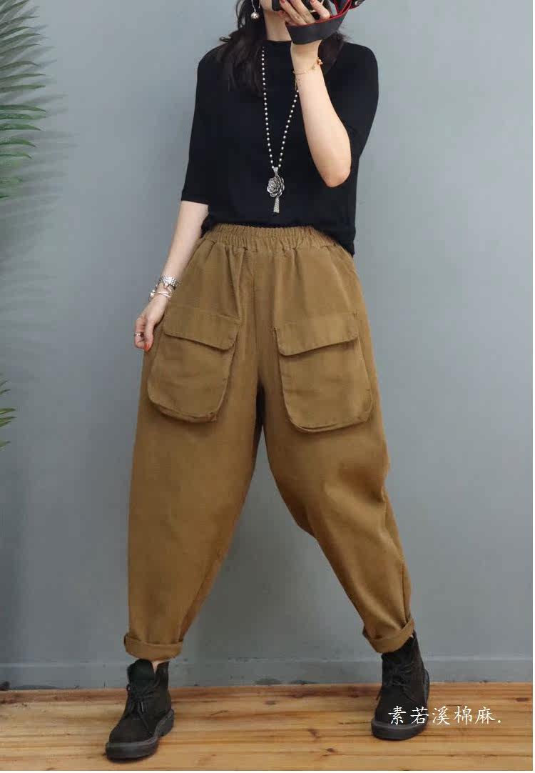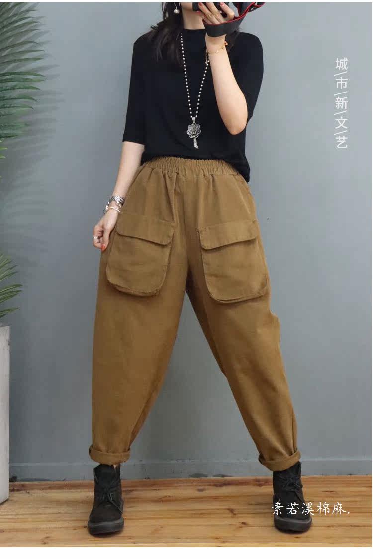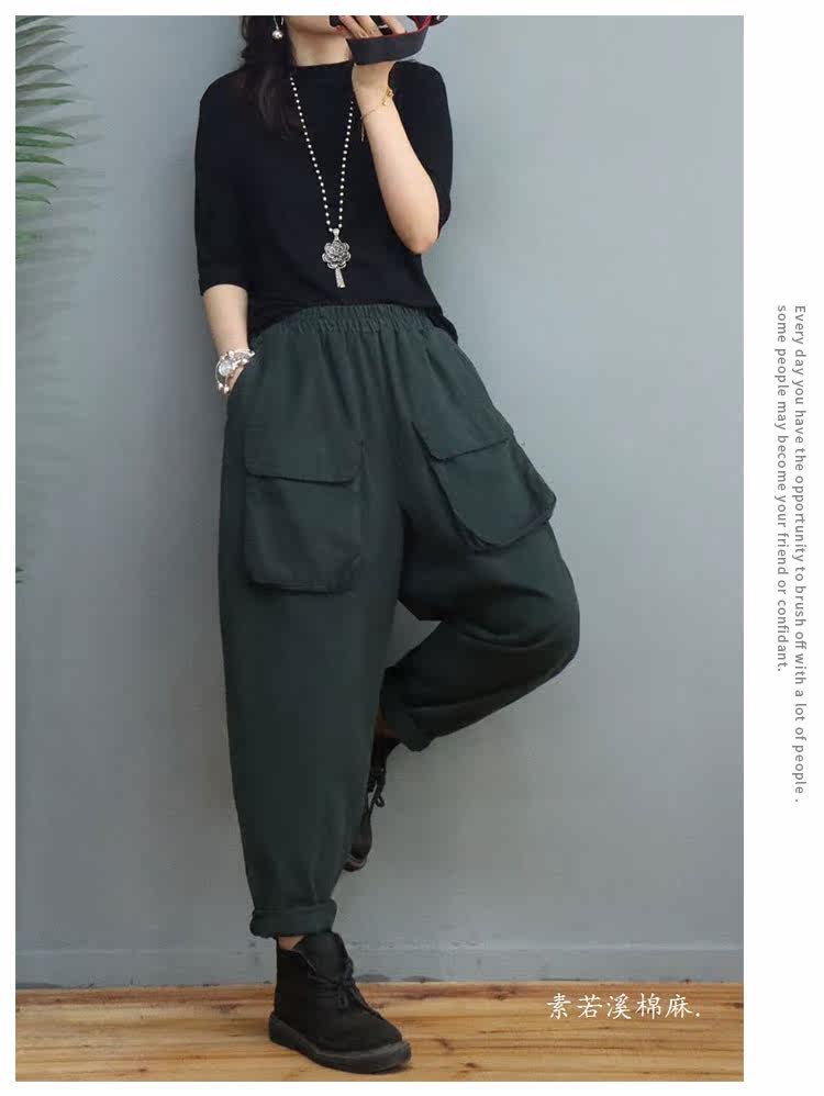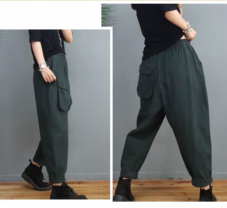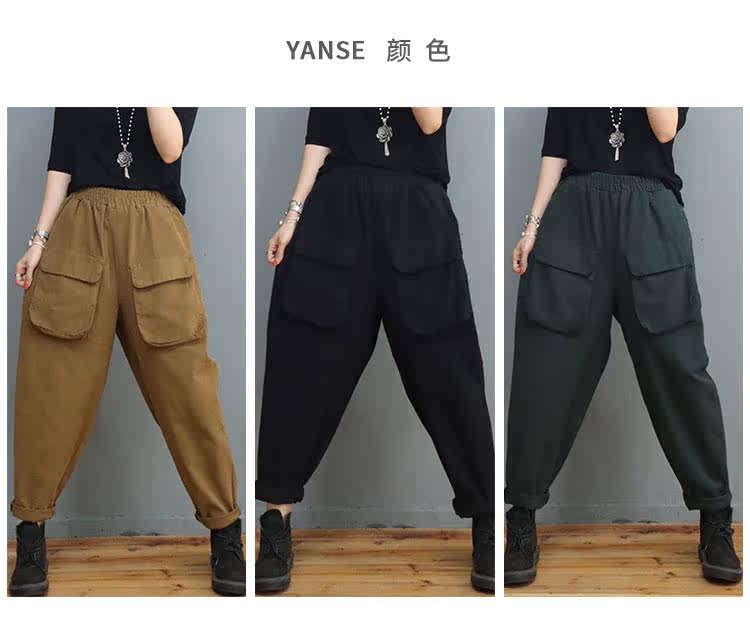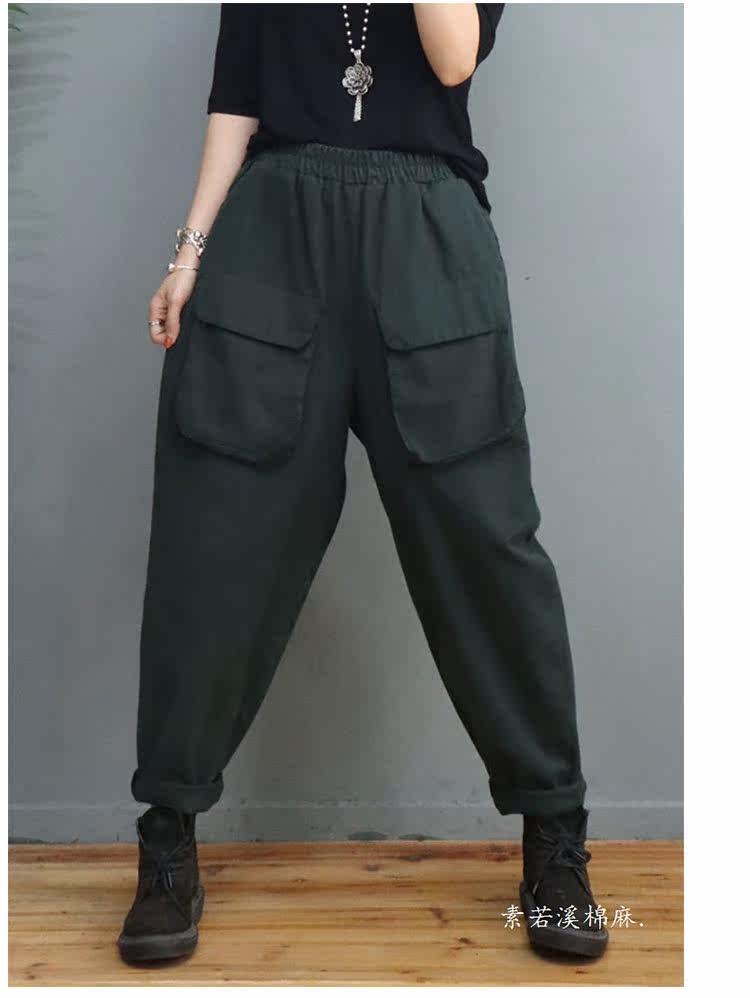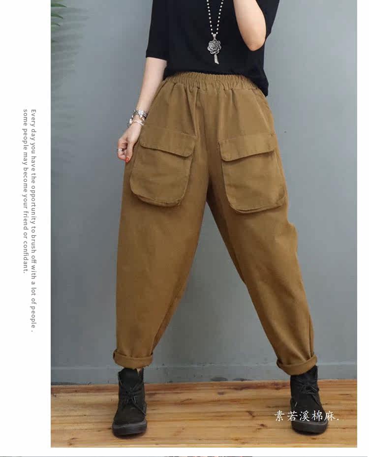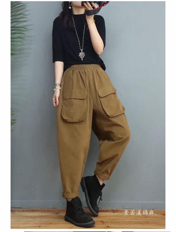 Clearance Special Price Fashion Three-Dimensional Big Pocket Harem Pants for Women Autumn Loose Solid Color Versatile Slim Casual Pants