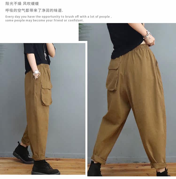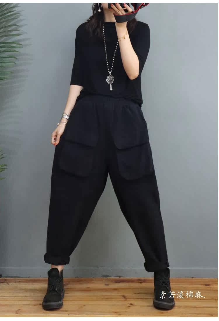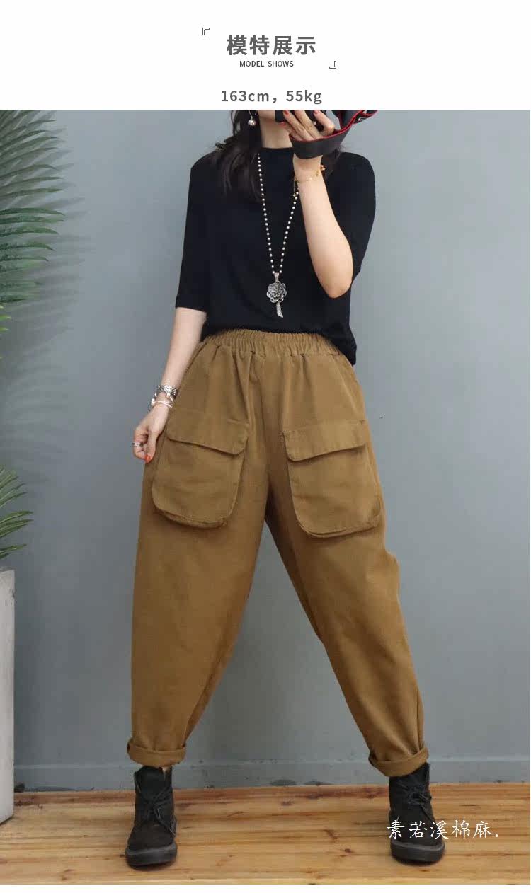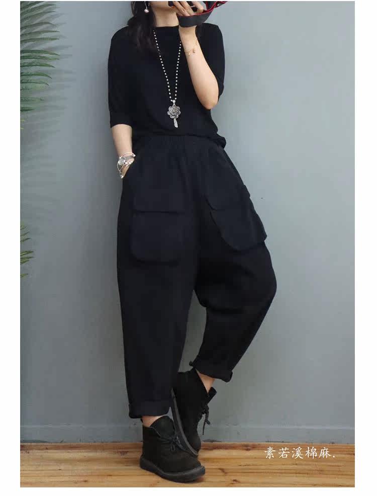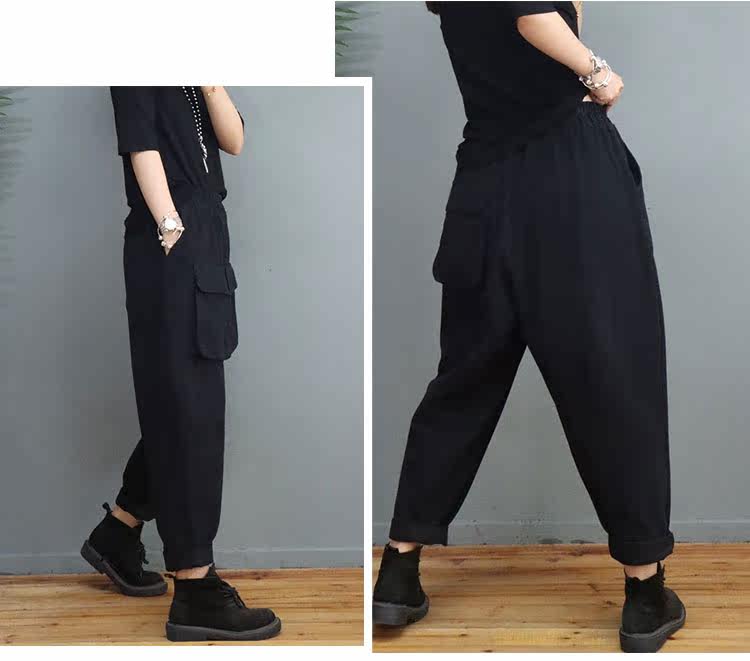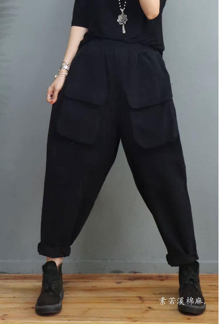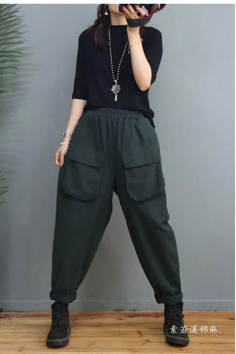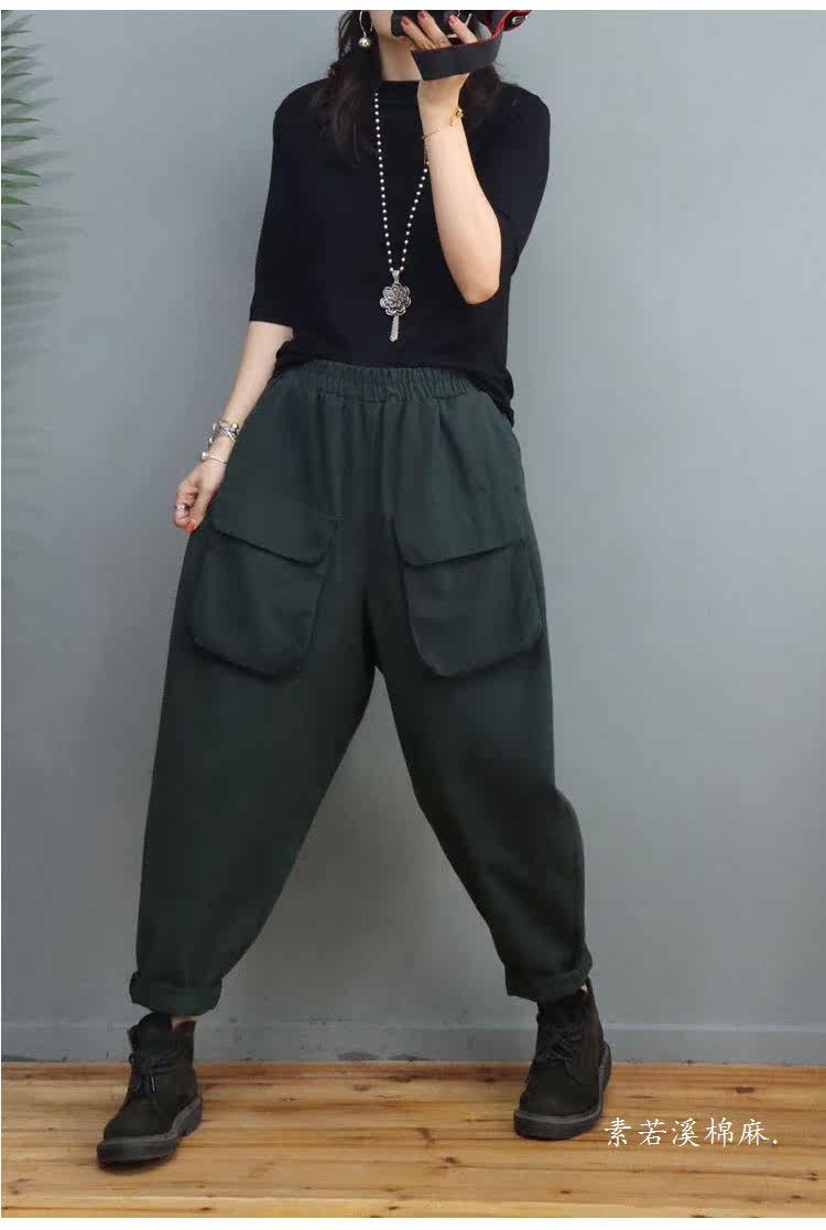 Clearance Special Price Fashion Three-Dimensional Big Pocket Harem Pants for Women Autumn Loose Solid Color Versatile Slim Casual Pants